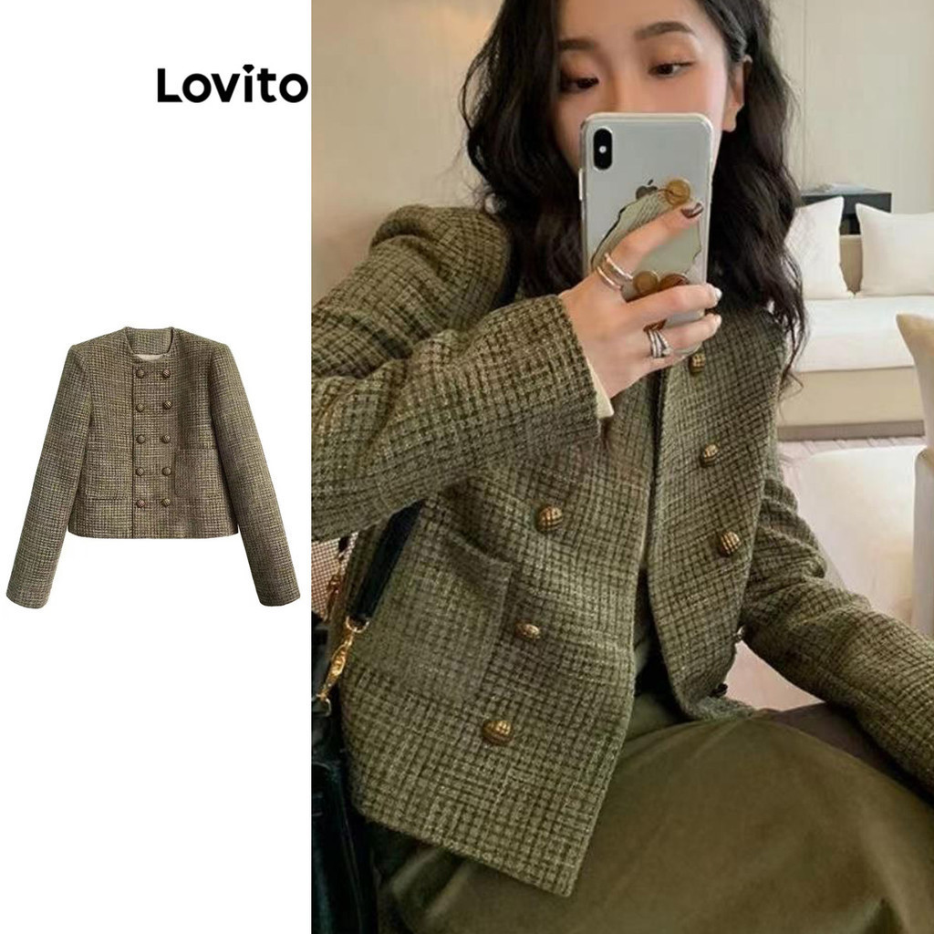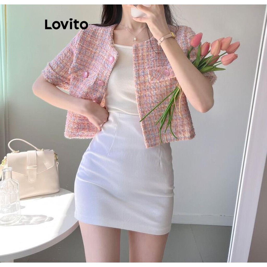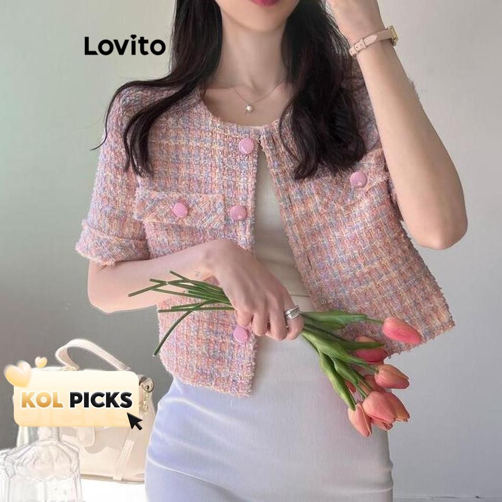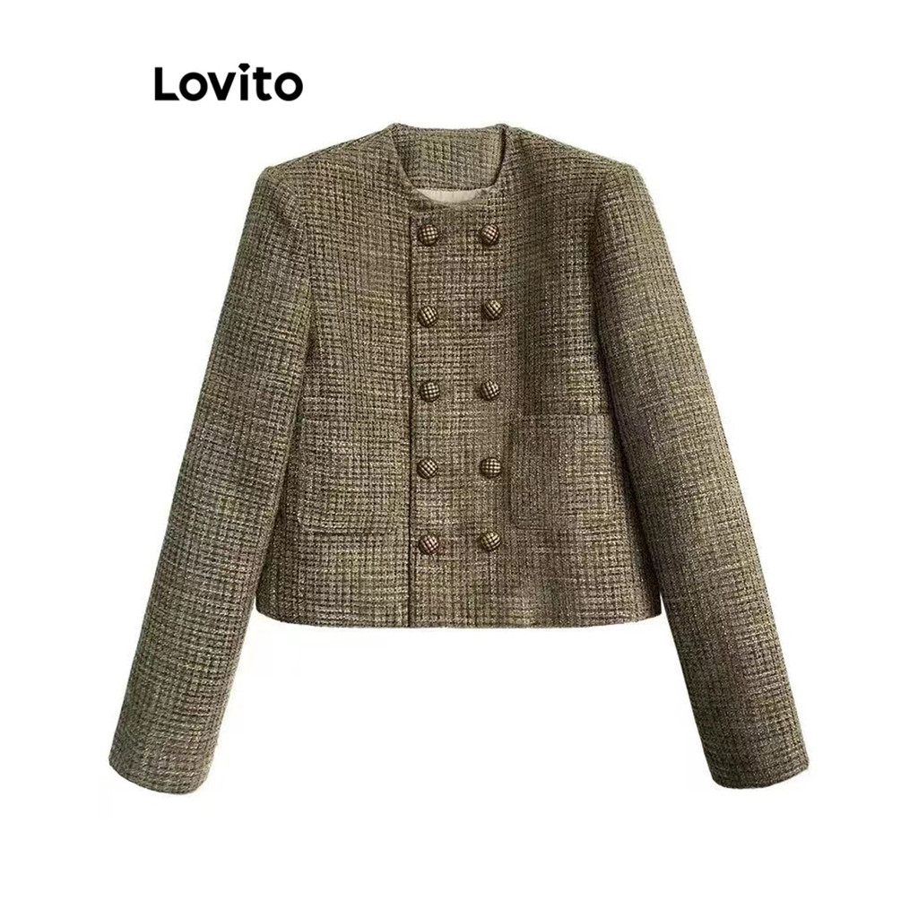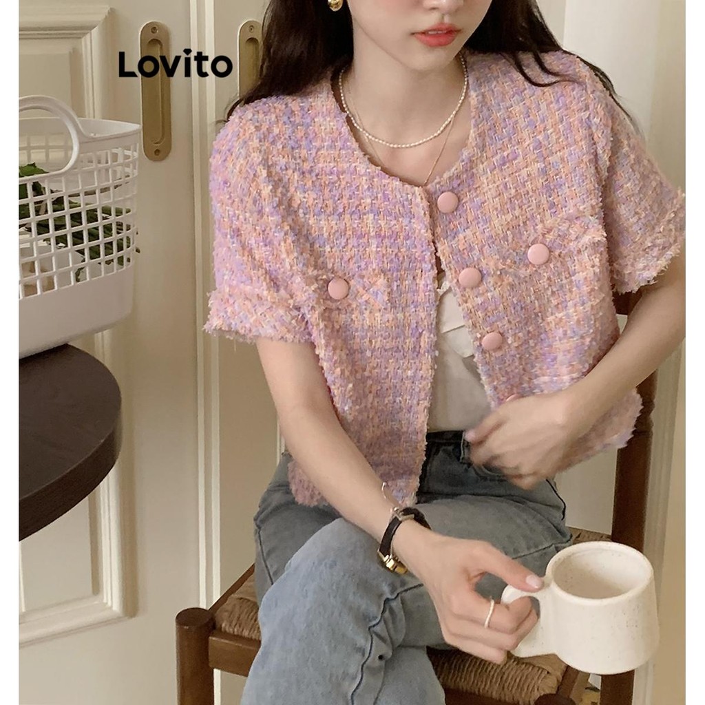 (Trendy) Lovito เสื้อเบลเซอร์ลําลองเสื้อเบลเซอร์ปุ่มธรรมดาสําหรับผู้หญิง LNM69297