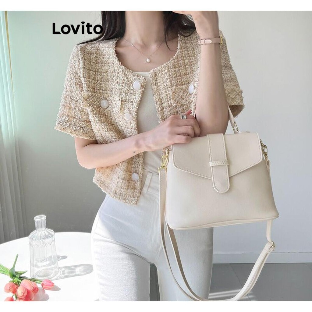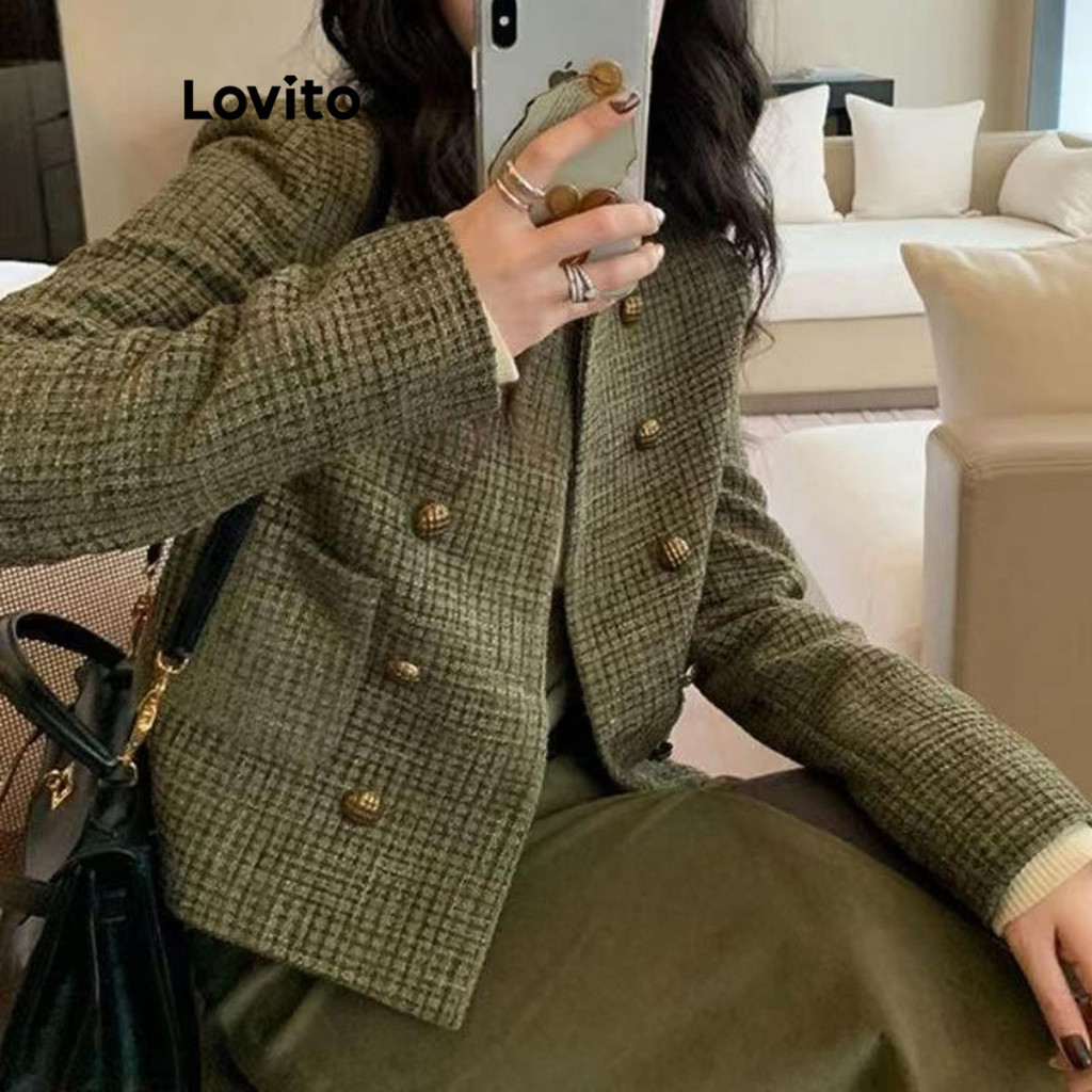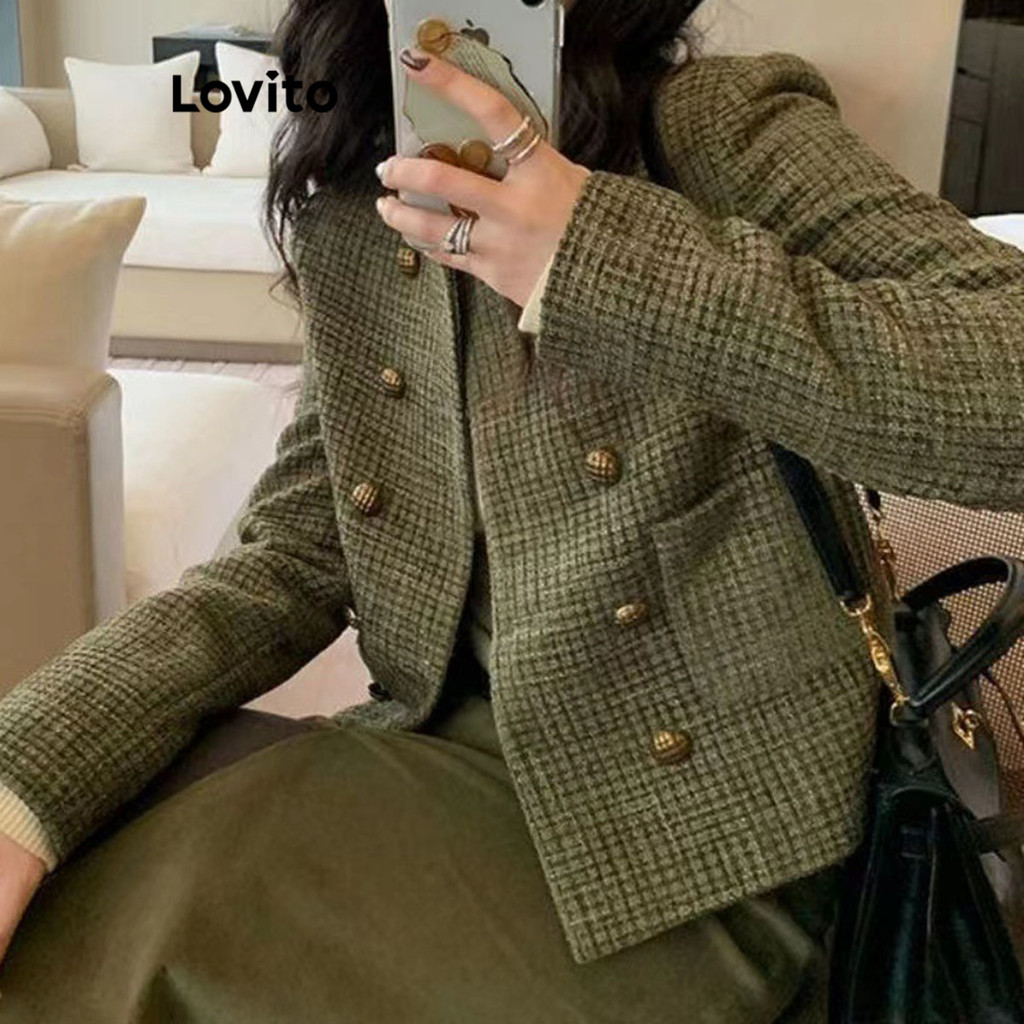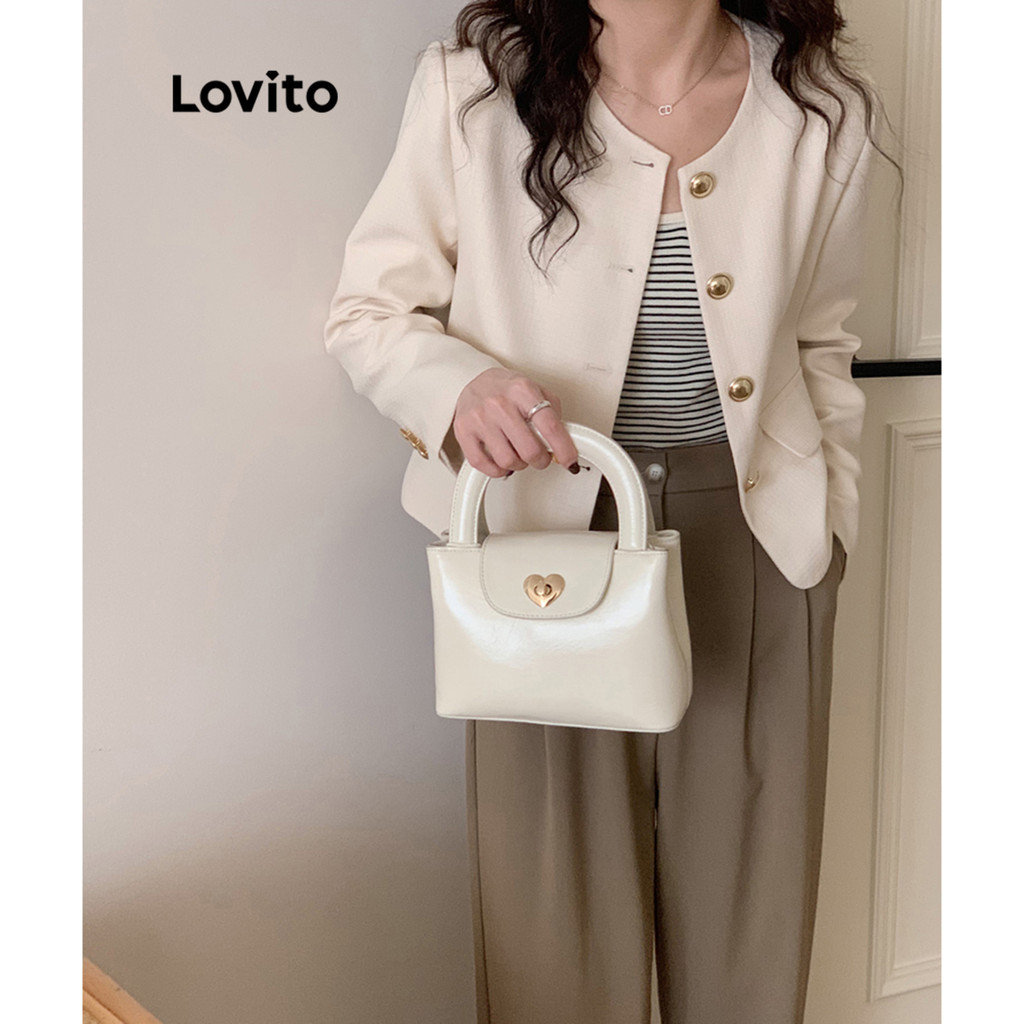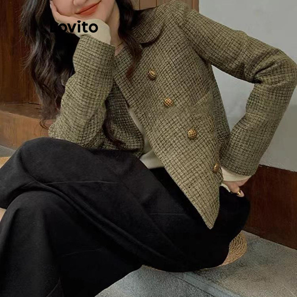 (Trendy) Lovito เสื้อเบลเซอร์ลําลองเสื้อเบลเซอร์ปุ่มธรรมดาสําหรับผู้หญิง LNM69297