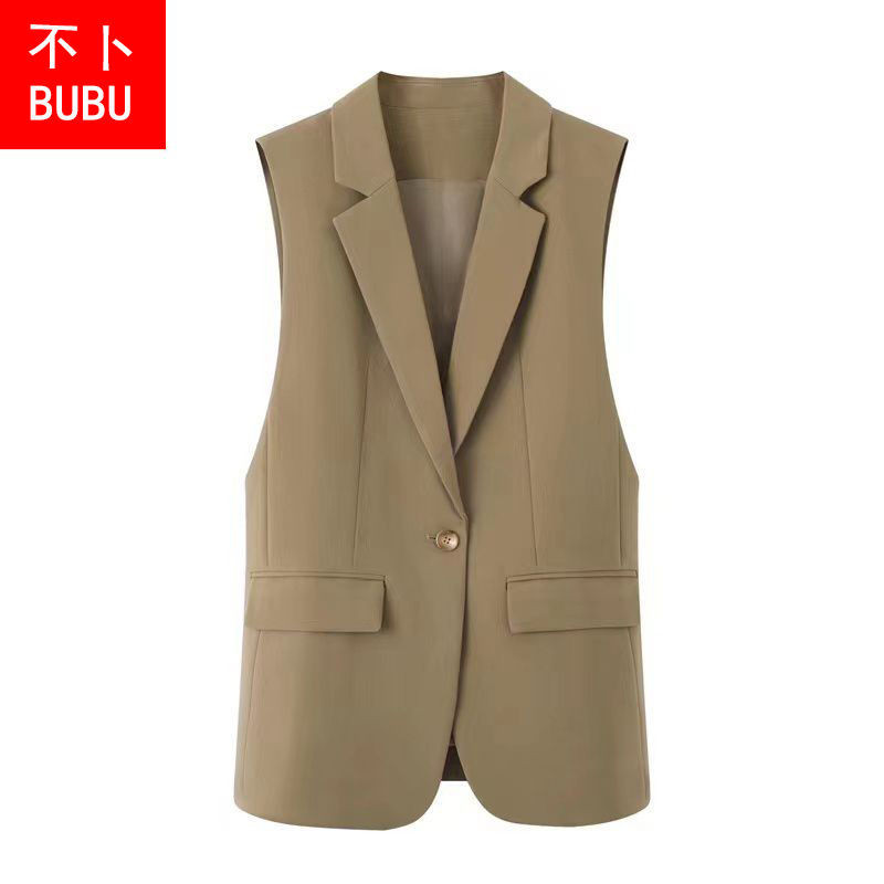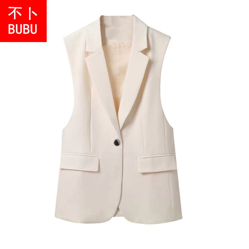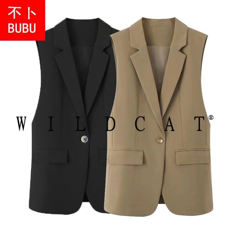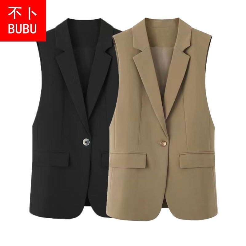 [ซับใน] เสื้อกั๊กแจ็คเก็ตผู้หญิงแขนกุดเสื้อกั๊กขนาดเล็กฤดูใบไม้ผลิฤดูใบไม้ร่วงสไตล์ใหม่เวอร์ชั่นเกาหลีกลับ กรีด สูทเสื้อกั