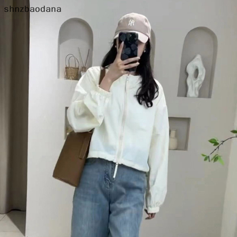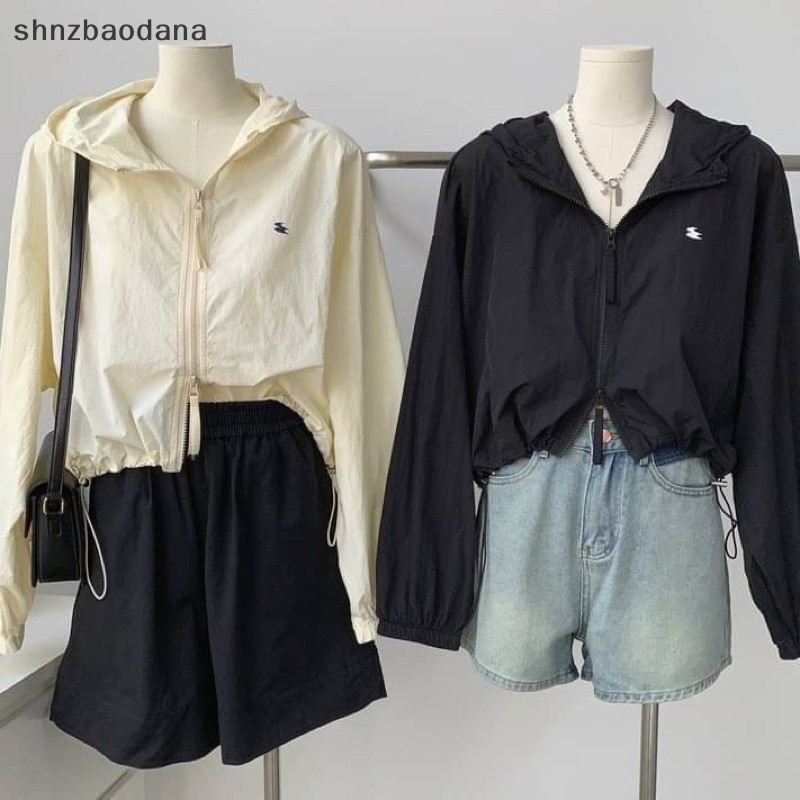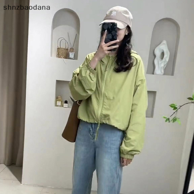 [ชุนซ่า] ฤดูร้อนแฟชั่นป้องกันแสงแดดเสื้อผ้าผู้หญิงคลุมด้วยผ้า เชือกรูด เสื้อแจ็คเก็ตสั้นลําลอง เอฟเอสเอสจี