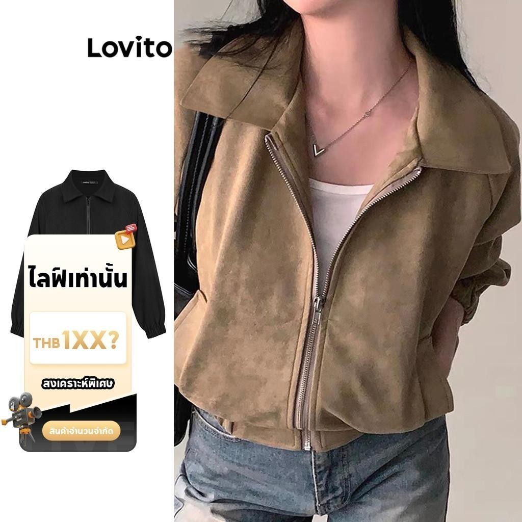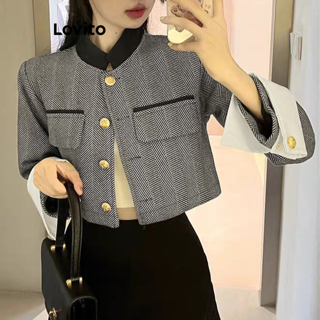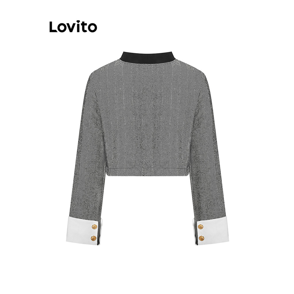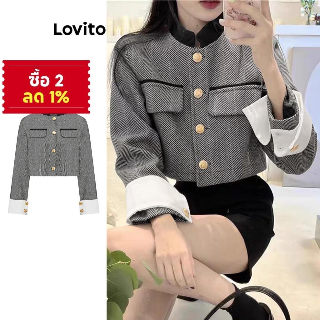 (Trendy) Lovito เสื้อแจ็คเก็ตลําลองเสื้อแจ็คเก็ตลายธรรมดาสําหรับผู้หญิง LNA73445