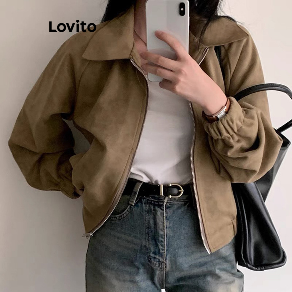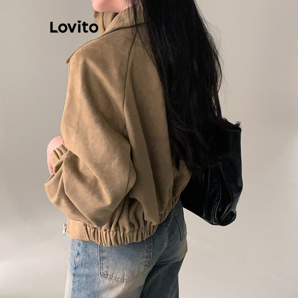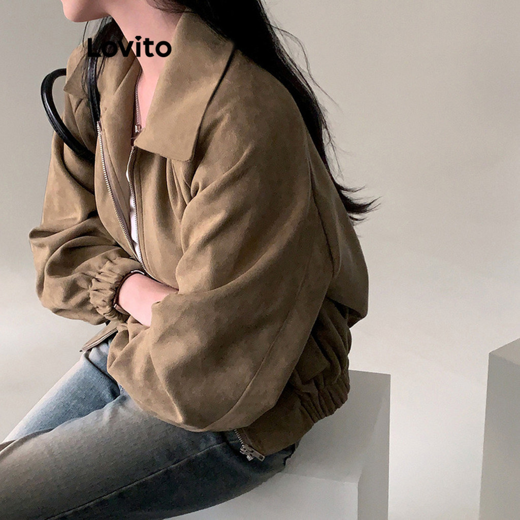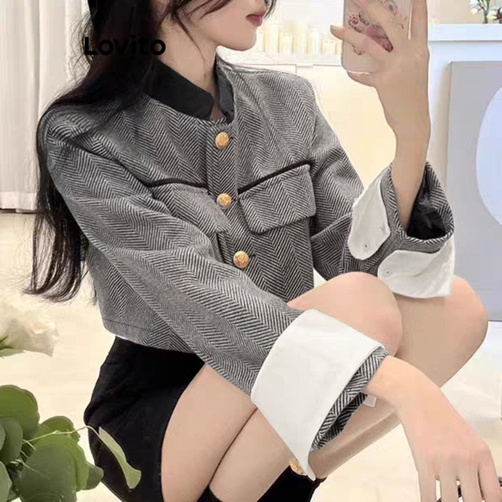 (Trendy) Lovito เสื้อแจ็คเก็ตลําลองเสื้อแจ็คเก็ตลายธรรมดาสําหรับผู้หญิง LNA73445