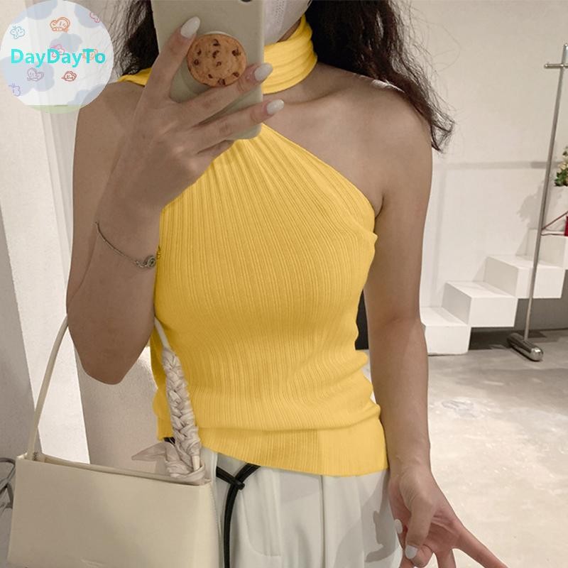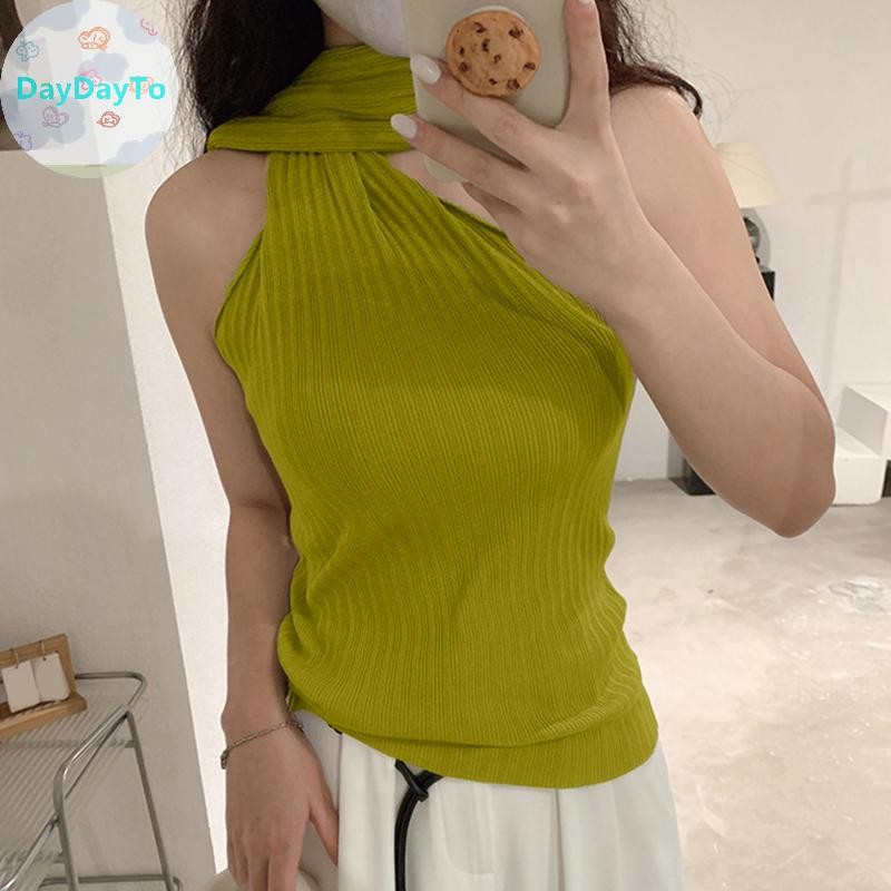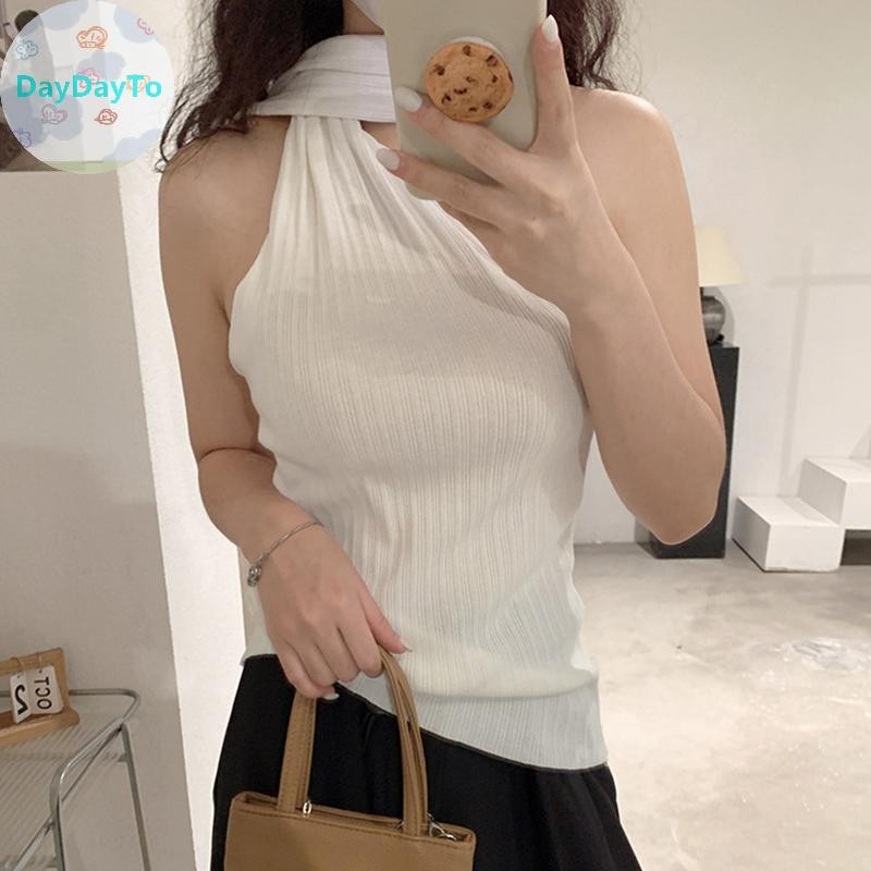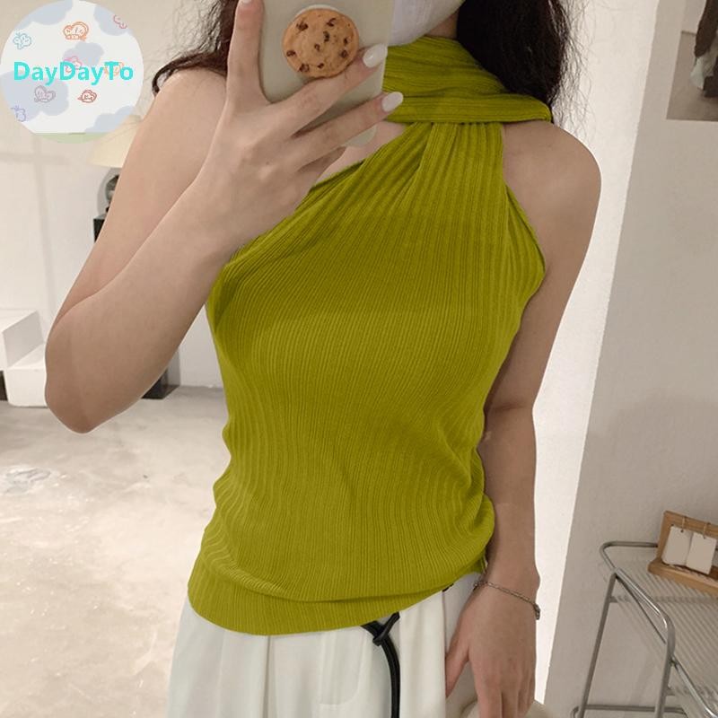.DayDayTo Pure Desire กั๊กถักไหล่ลาดหรูหรา แขนกุดสำหรับผู้หญิง