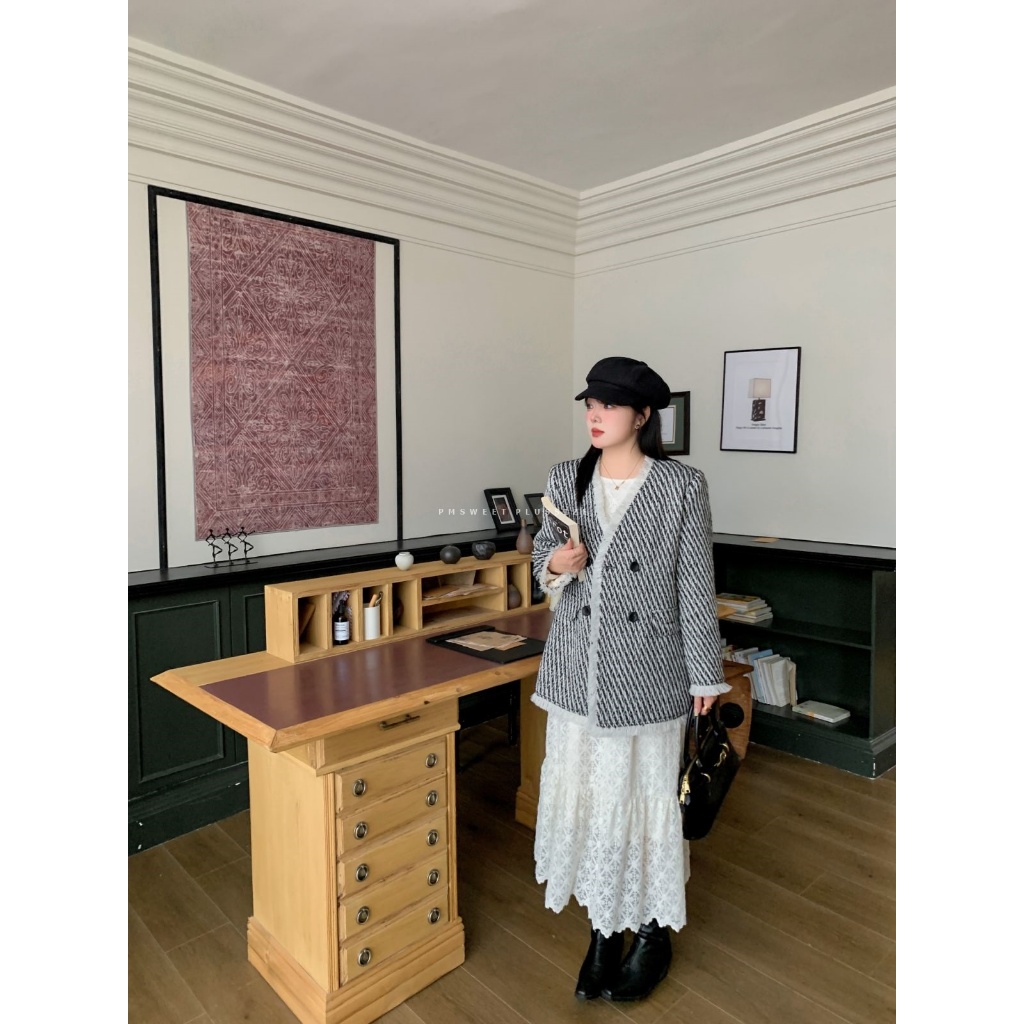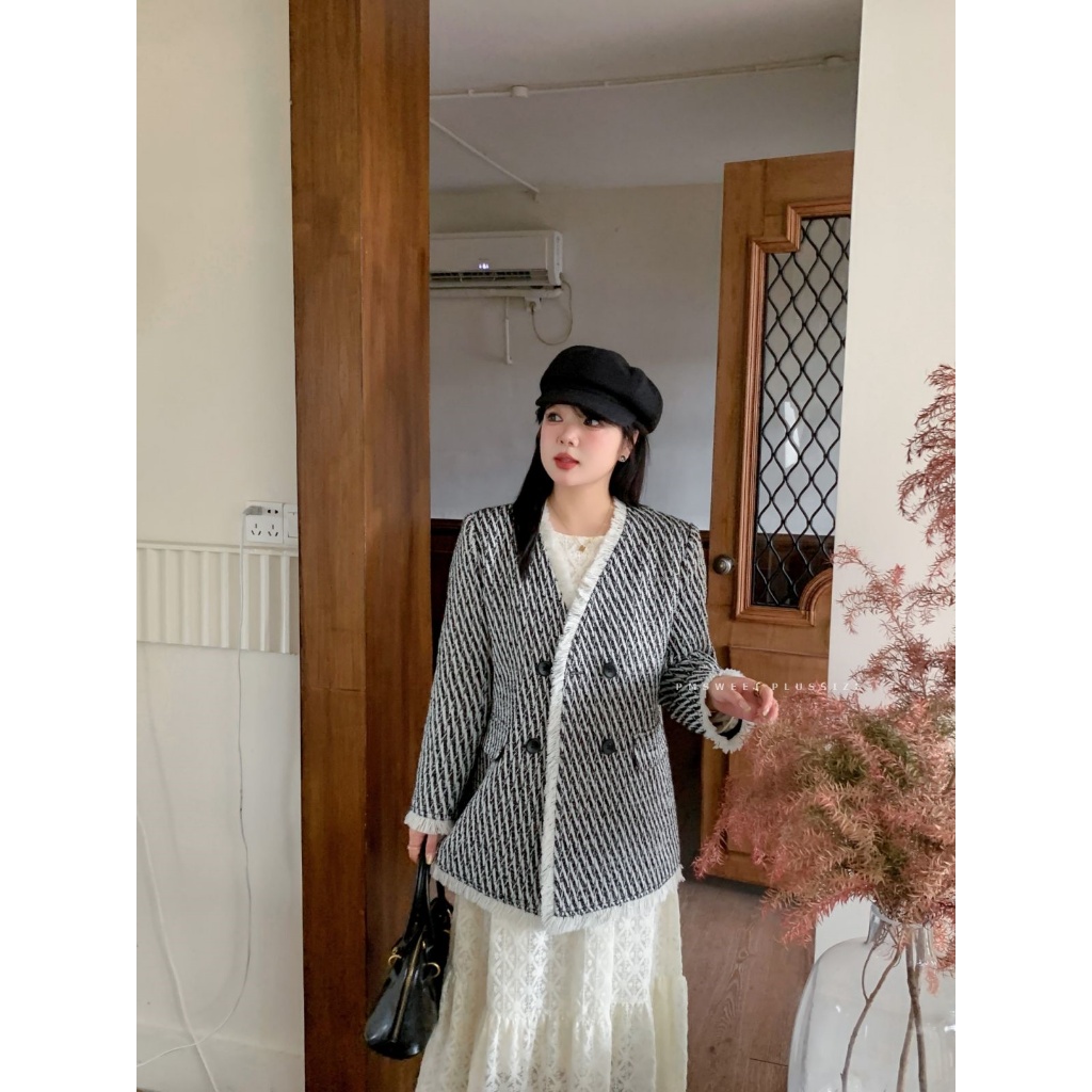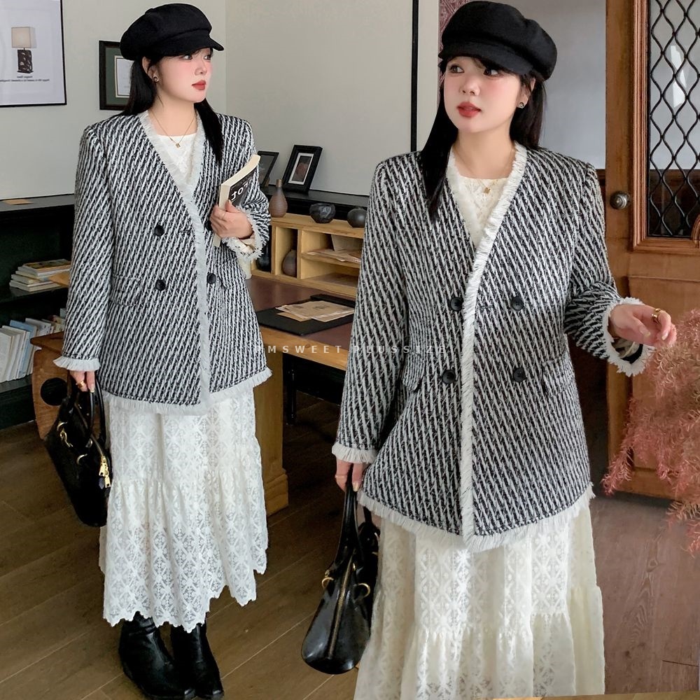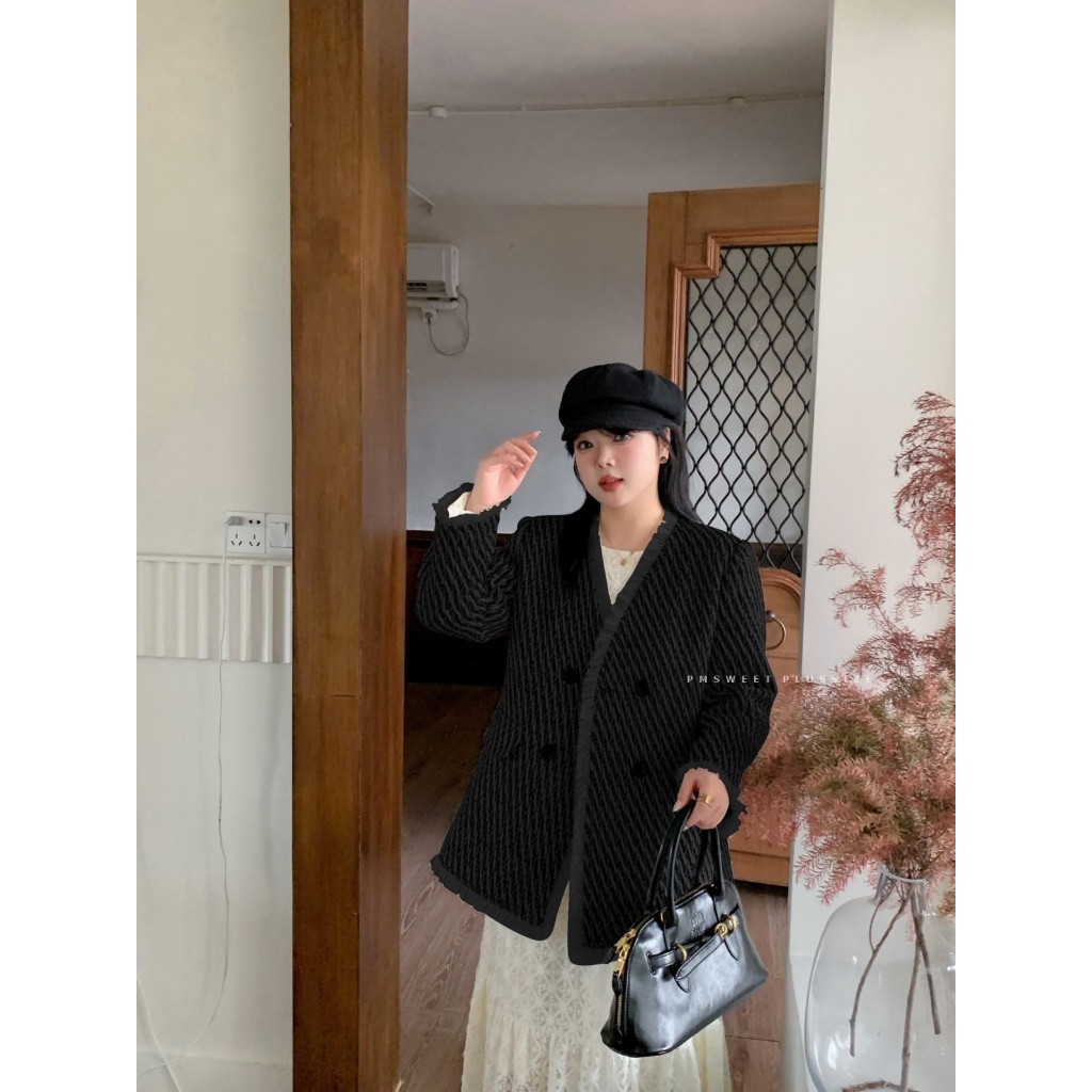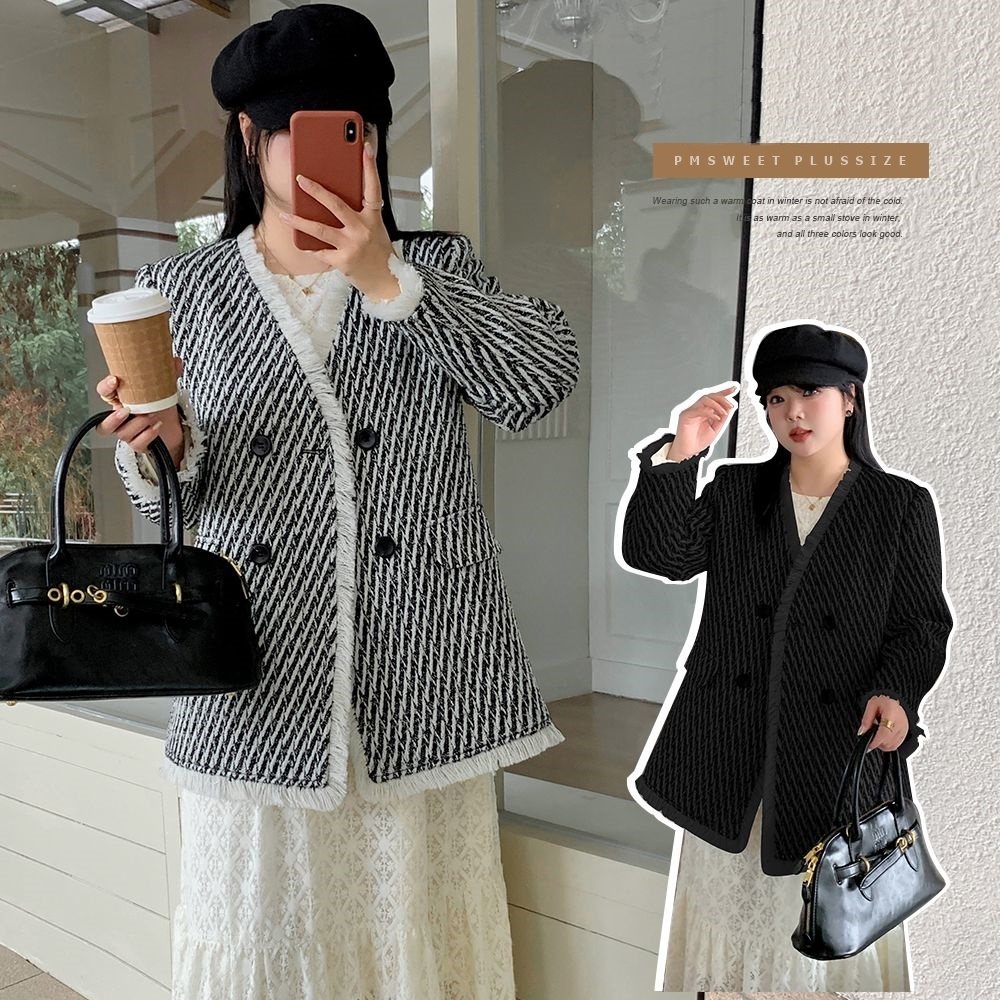 [ 🔥อกถึง 54″ ] : PMP2337 : พรีออเดอร์ เสื้อโค้ทหนาผ้าทวีด Tweed ทรงหลวม สำหรับผู้หญิงไซส์ใหญ่