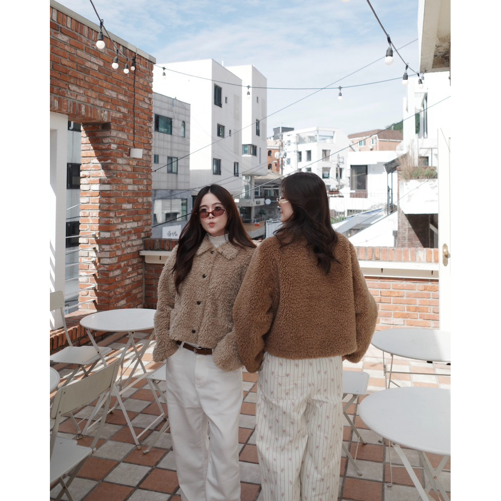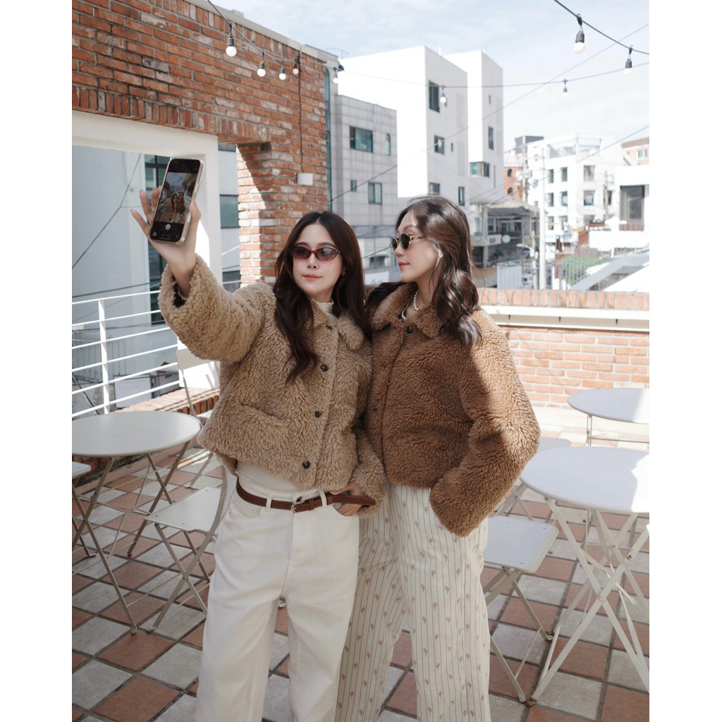 (LIVE STREAM SALE) เสื้อแจ็คเก็ตผู้หญิง มีซิป สีพื้น สไตล์ลำลอง LNE30129 (สีน้ำตาล)