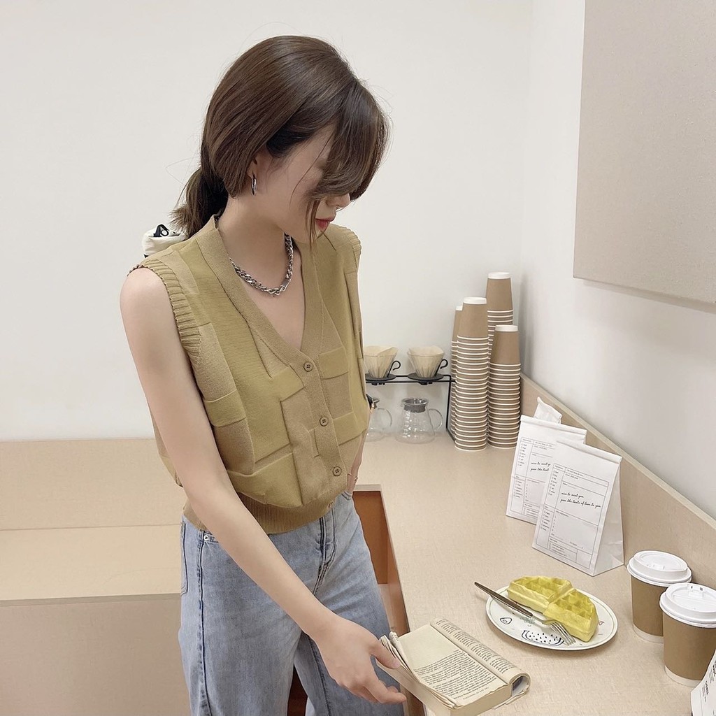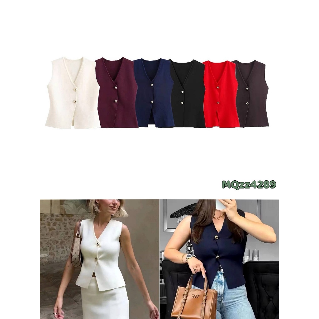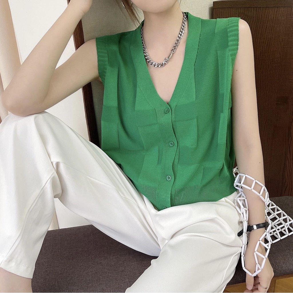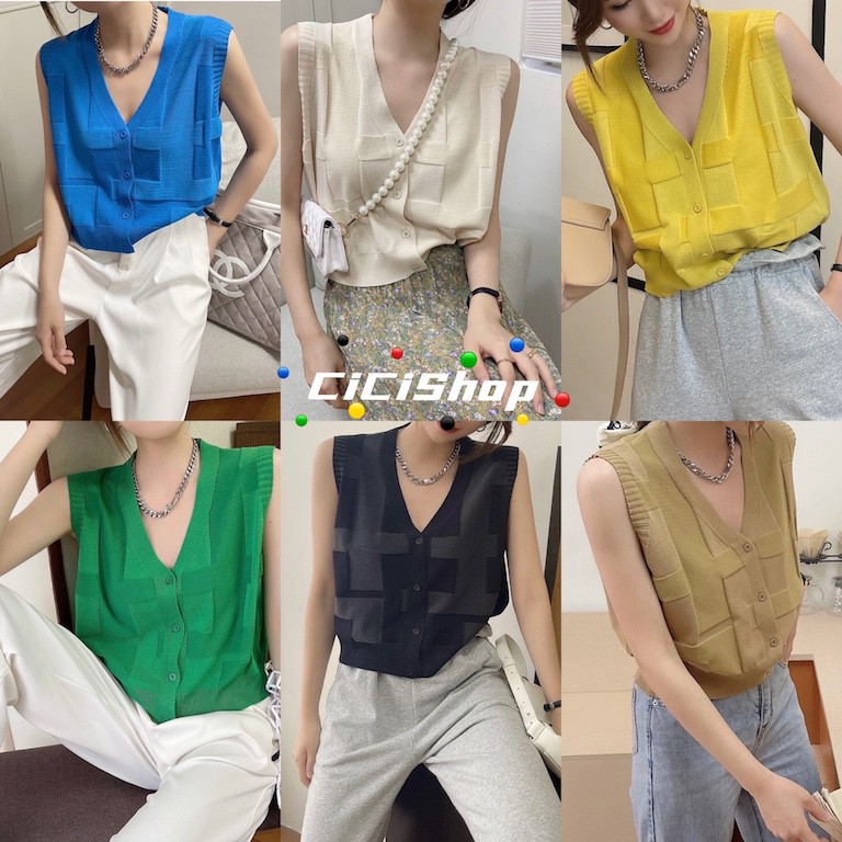 Cicishop(828)เสื้อไหมพรมแขนกุดกระดุมผ่ากลาง ผ้าknit ทรงสวยใส่เดี่ยวๆหรือใส่เป็นเสื้อกั๊กก็ได้