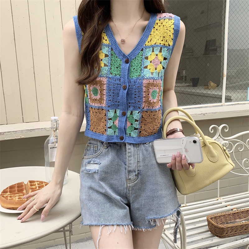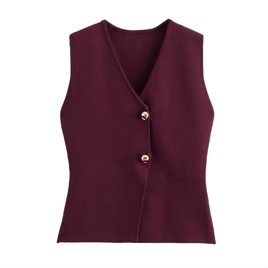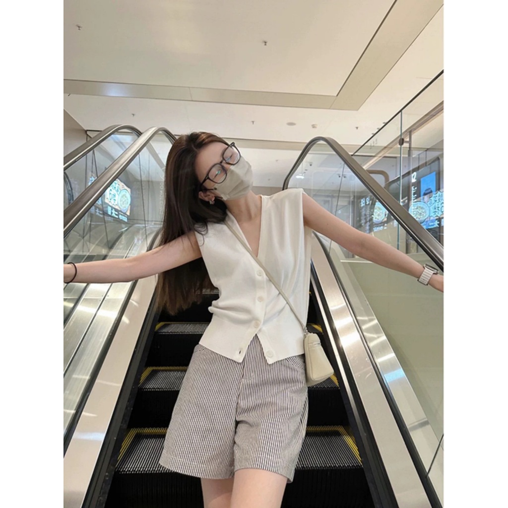 Cicishop(828)เสื้อไหมพรมแขนกุดกระดุมผ่ากลาง ผ้าknit ทรงสวยใส่เดี่ยวๆหรือใส่เป็นเสื้อกั๊กก็ได้