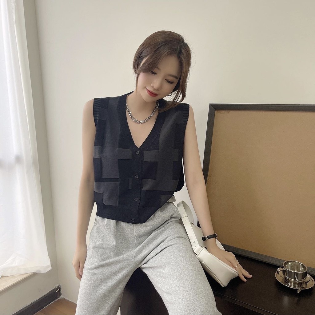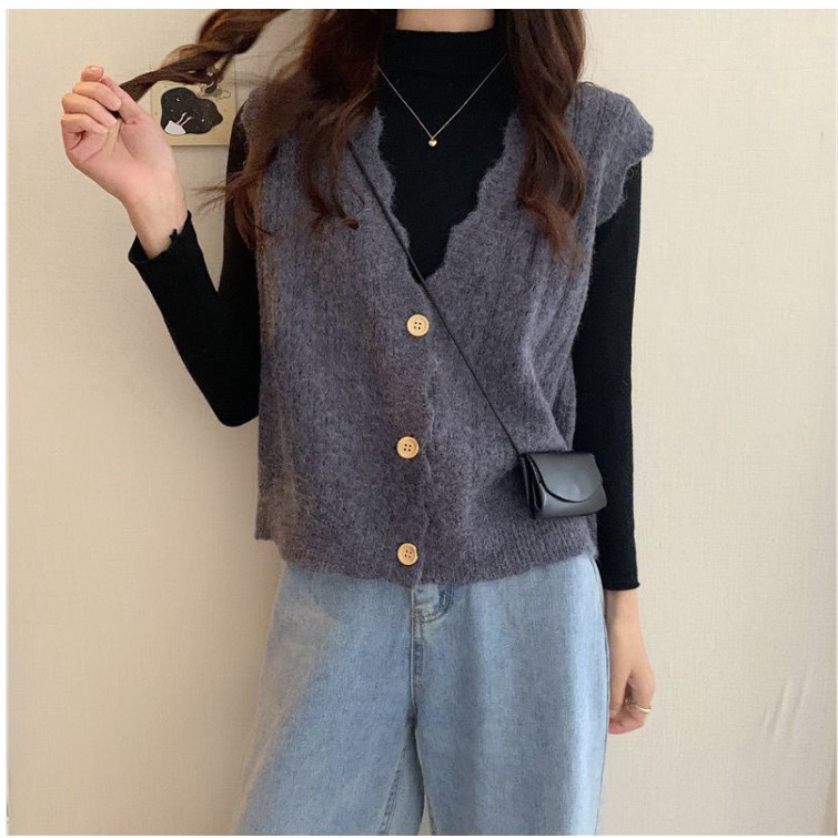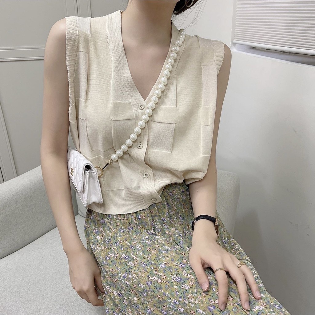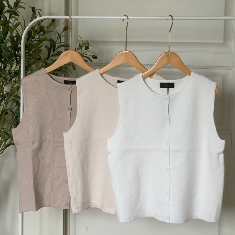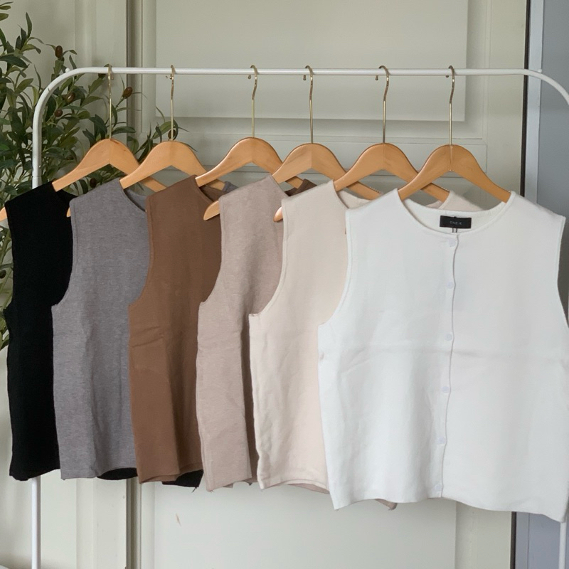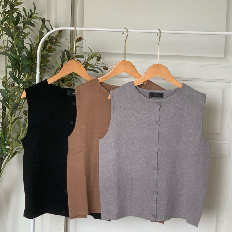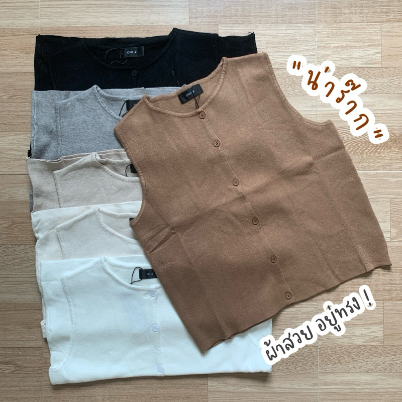 [ป้าย One K] เสื้อไหมพรมแขนกุดทรงเสื้อกั๊กกระดุมหน้าเนื้อผ้าดีสีเบสิคเข้าชุดได้ง่ายรีบจัดเลย