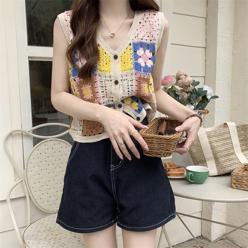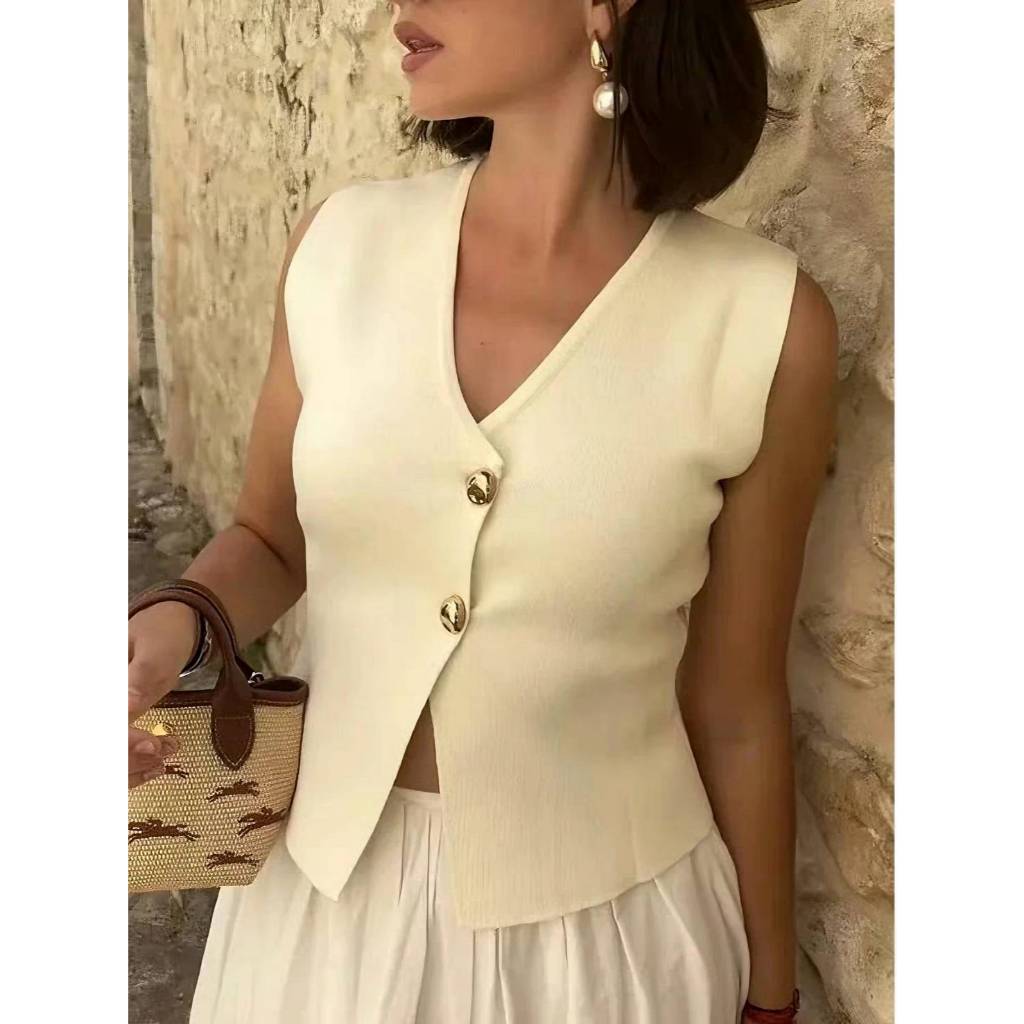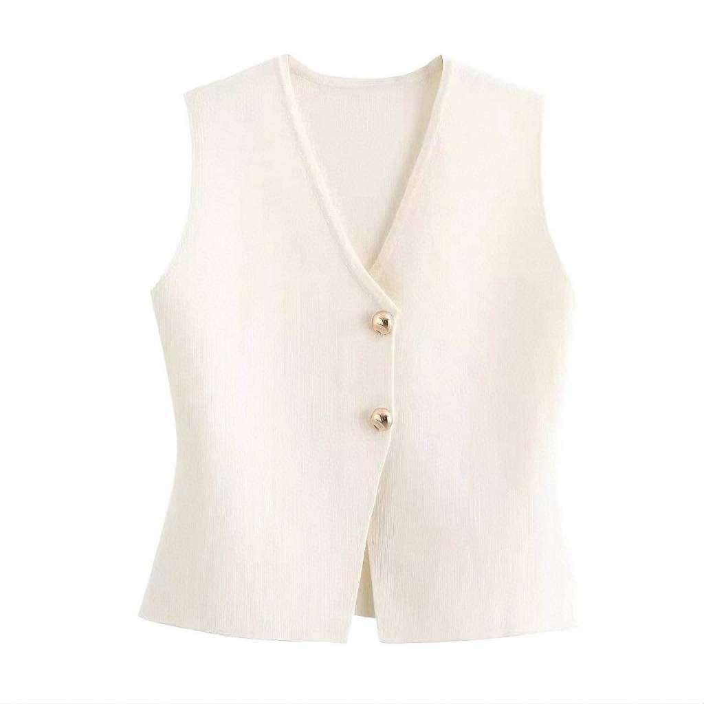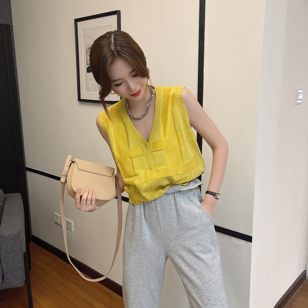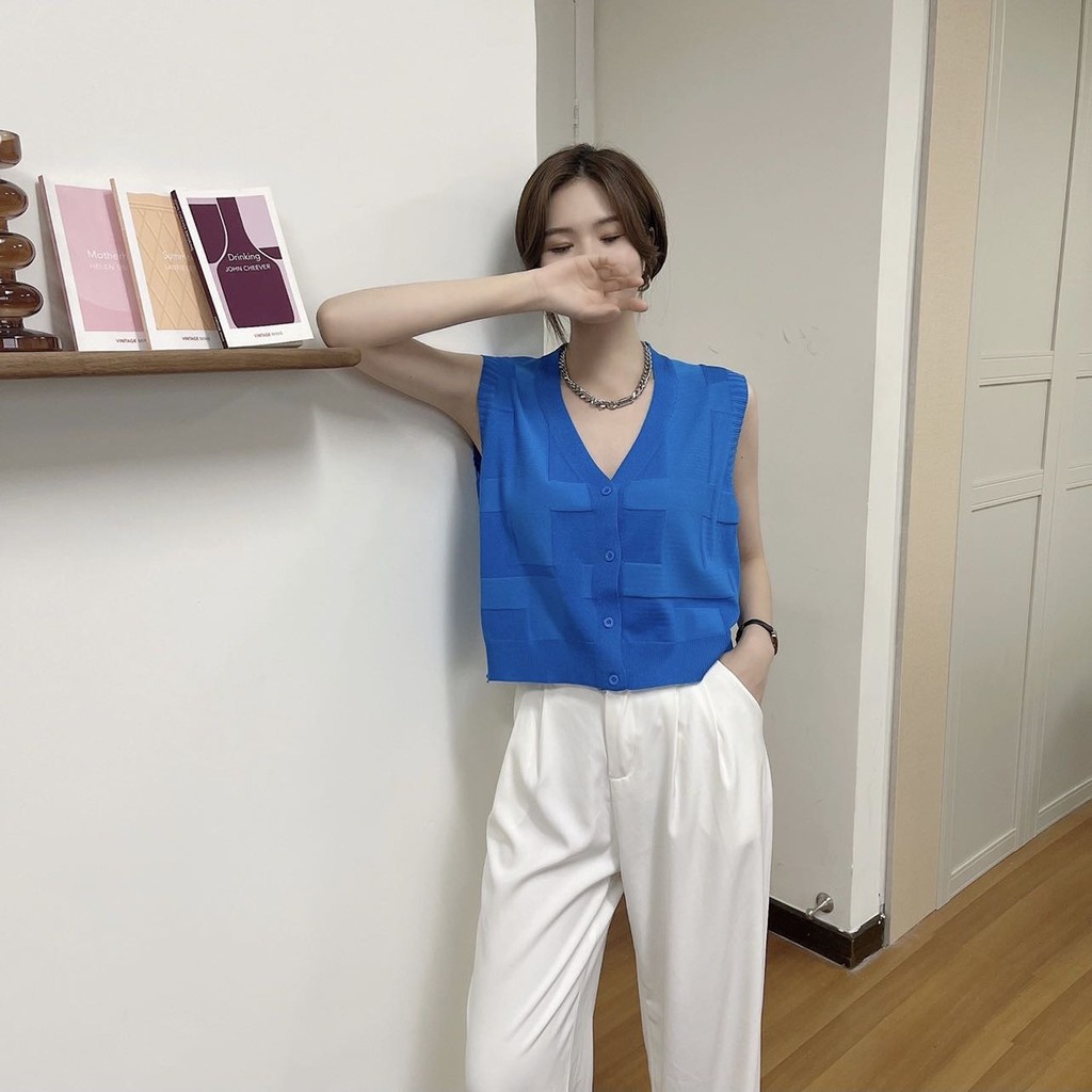 [ป้าย One K] เสื้อไหมพรมแขนกุดทรงเสื้อกั๊กกระดุมหน้าเนื้อผ้าดีสีเบสิคเข้าชุดได้ง่ายรีบจัดเลย