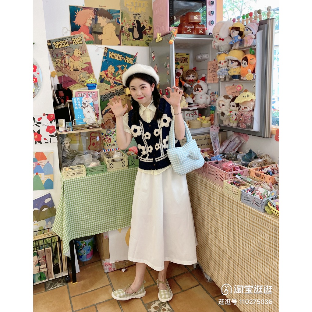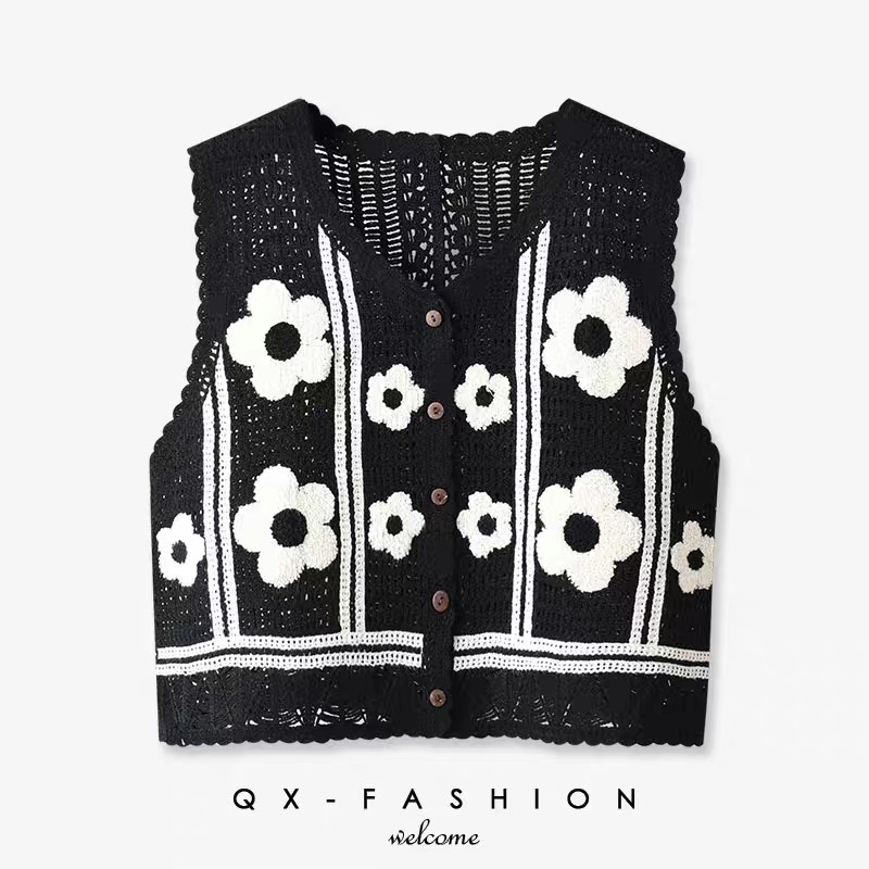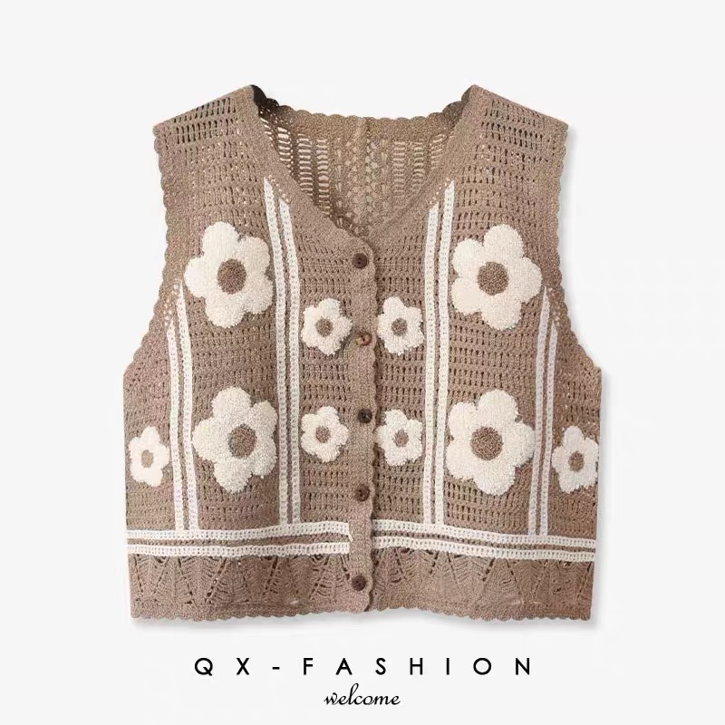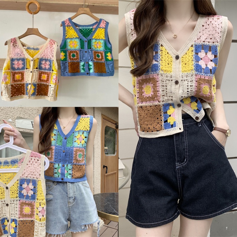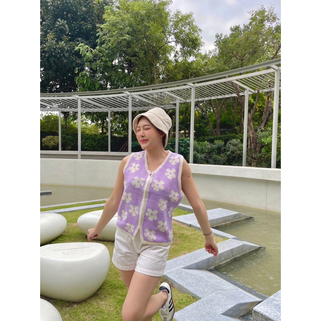 Cicishop(SALE Z8051)เสื้อกั๊กไหมพรมลายดอกไม้ ดีเทลซิปหน้า สไตล์เกาหลี สุดCute