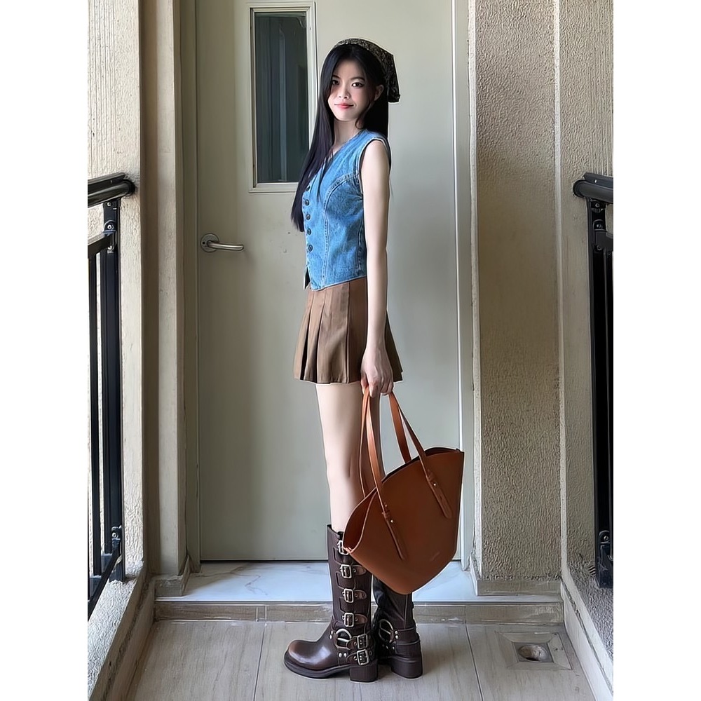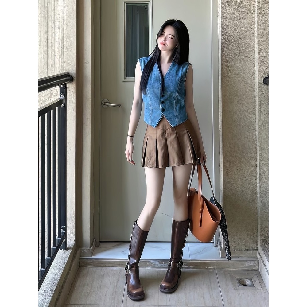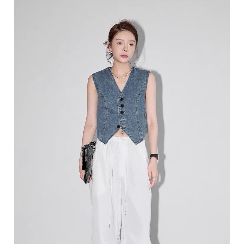 Cicishop(610)Jeanie vest เสื้อกั๊กครอปยีนส์ ใส่แมตช์สวยจึ้งสไตล์เกาหลี
