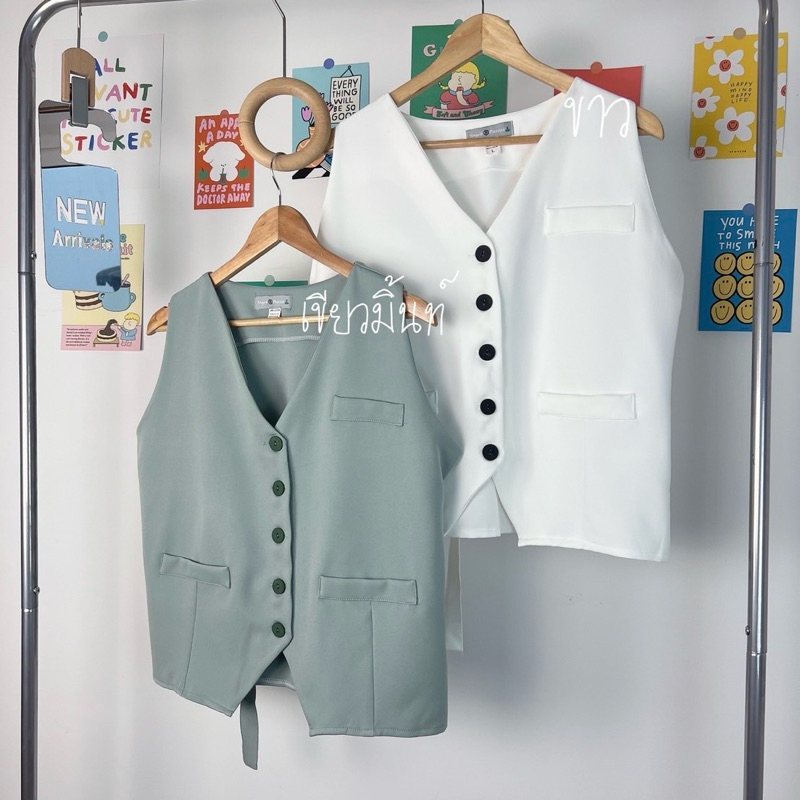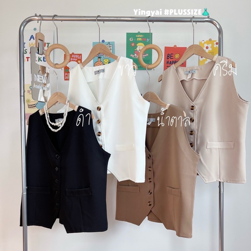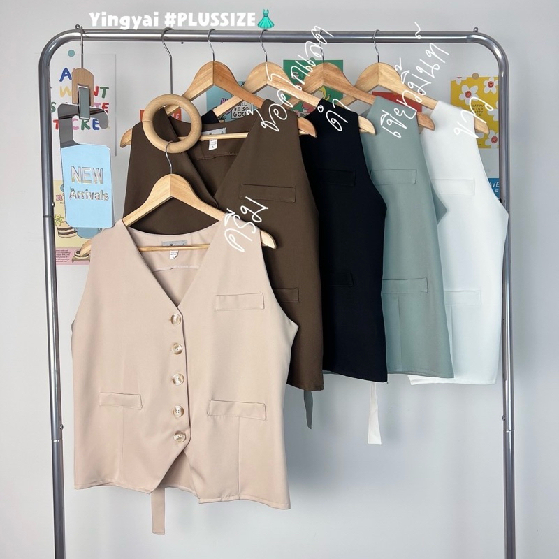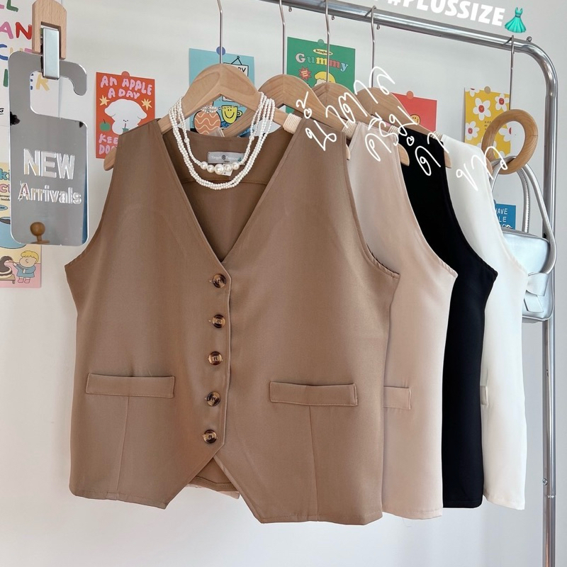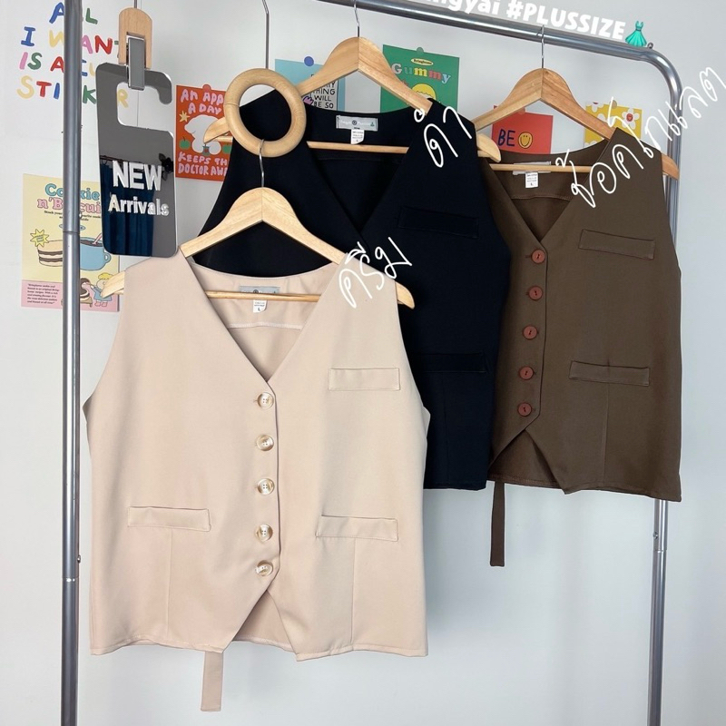Korea basic vest เสื้ิอกั๊กทรงเรียบหรูสีพื้น เสื้อกั๊กสาวอวบ อก40-50นิ้ว (มีไซซ์) plussize