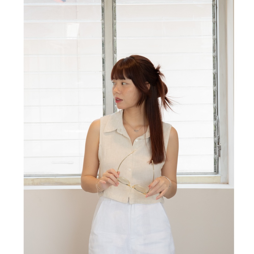 avo linen maki vest tops รุ่นนี้คือผ้าดีมากกก ผ้านุ่มไม่บาดผิวแน่นอน เป็นเสื้อคอปกแขนกุด ผ้าลินินผสมน้า