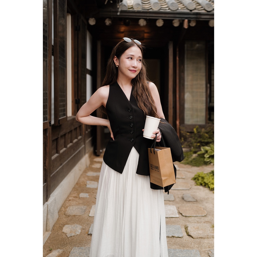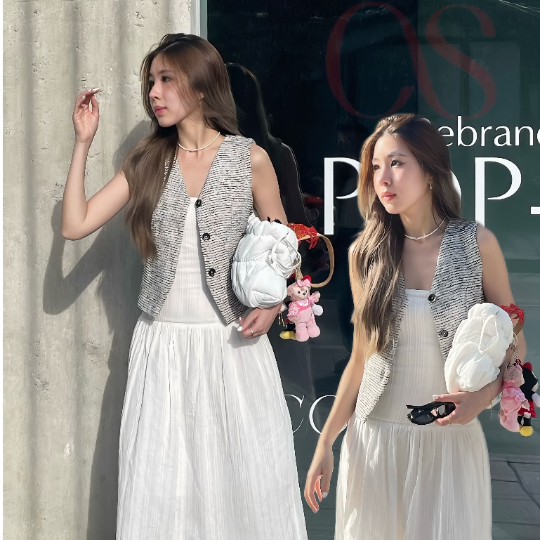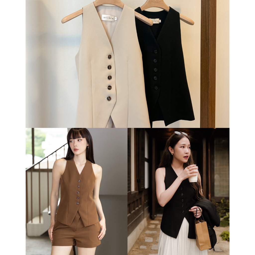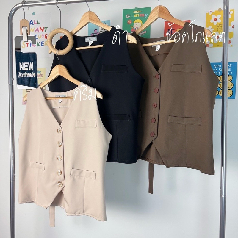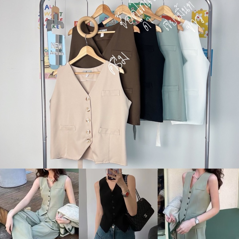 CelebrityStyle CRM34-Top-เสื้อกั๊กผ้าทวิตมีTexture ผ้าสวยผ้าดีดูแพงมากงานใส่ซับในทั้งตัวผ้านุ่มสบาย