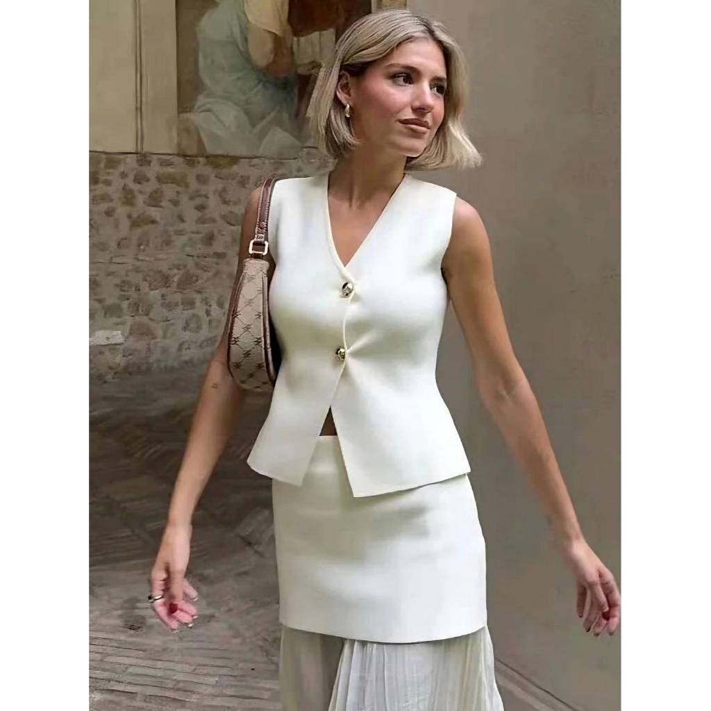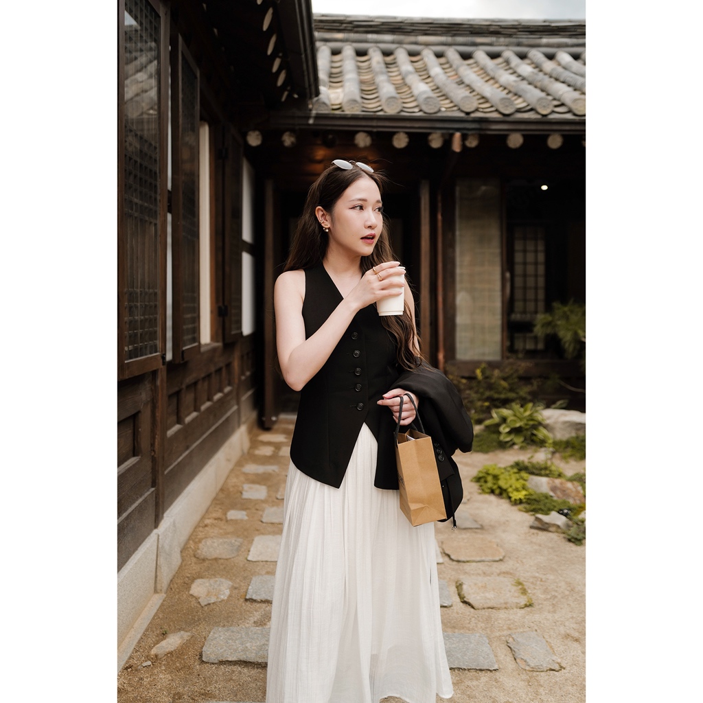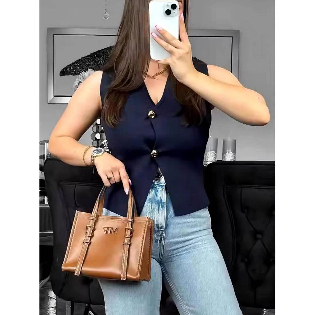 CelebrityStyle CRM34-Top-เสื้อกั๊กผ้าทวิตมีTexture ผ้าสวยผ้าดีดูแพงมากงานใส่ซับในทั้งตัวผ้านุ่มสบาย