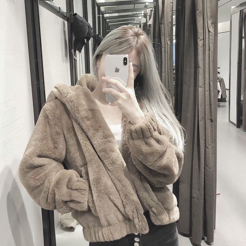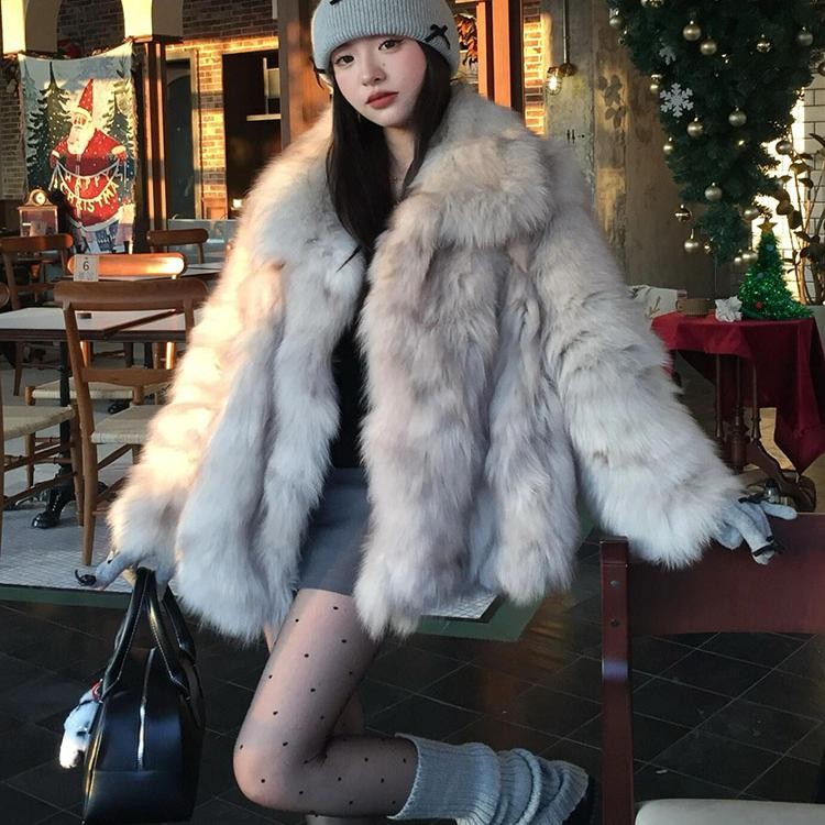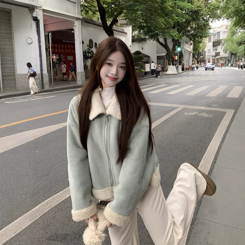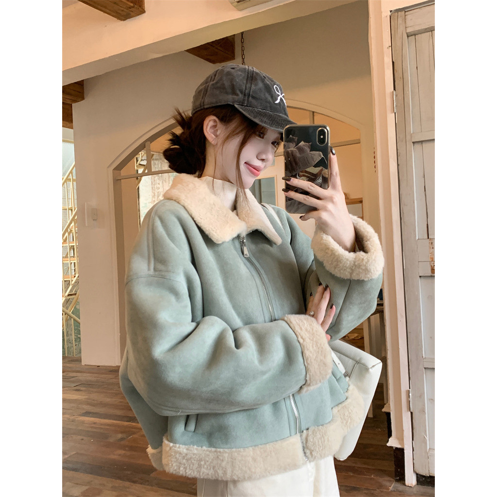เกาหลีความรู้สึกขั้นสูงสีฟ้าอ่อนปกสั้นเสื้อเนื้อแกะหญิงฤดูหนาวขนแจ็คเก็ตแบบบูรณาการฤดูหนาว
