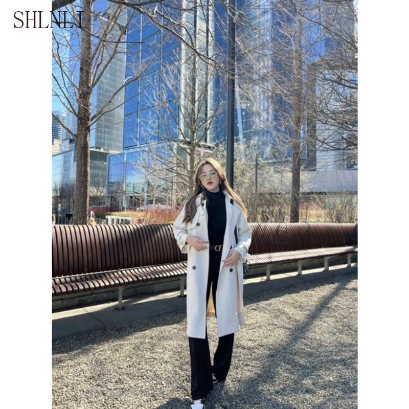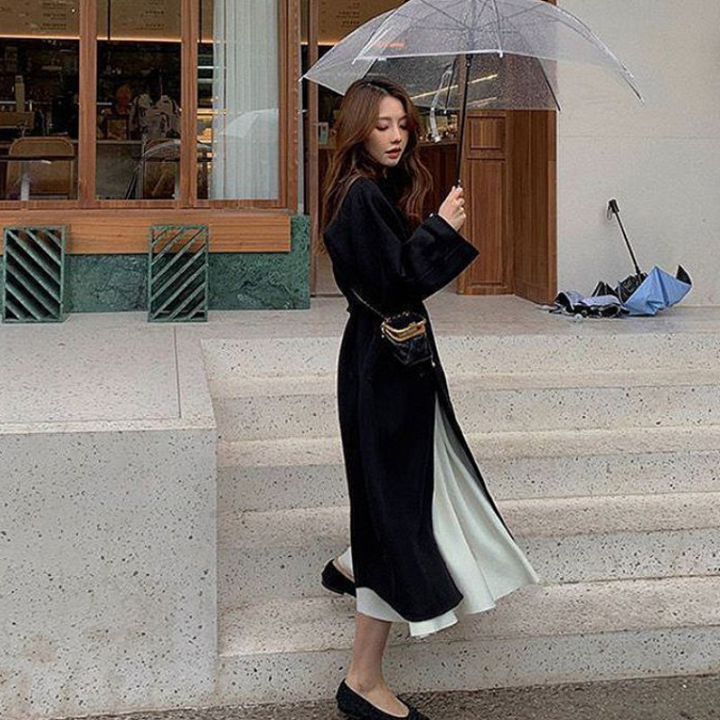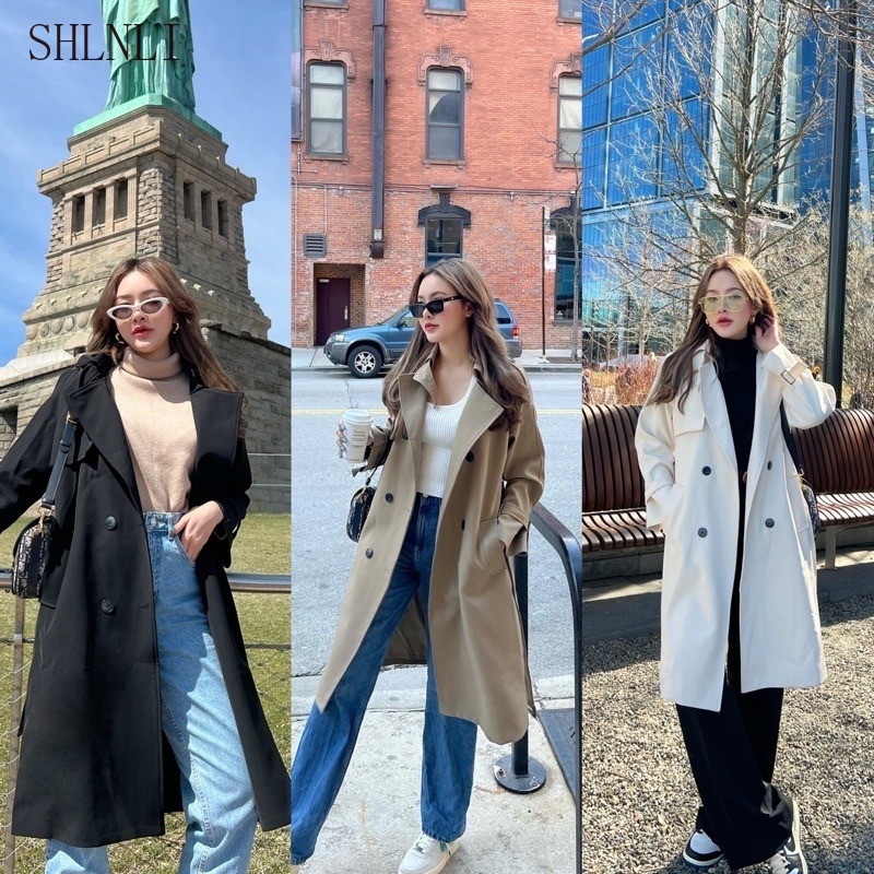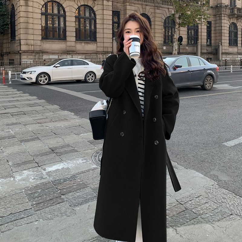 เสื้อผู้หญิงสไตล์เกาหลีสำหรับฤดูใบไม้ร่วงและฤดูหนาว สีทึบ แบบหลวมและกระชับ สไตล์แจ็คเก็ตยาวเรียบง่าย