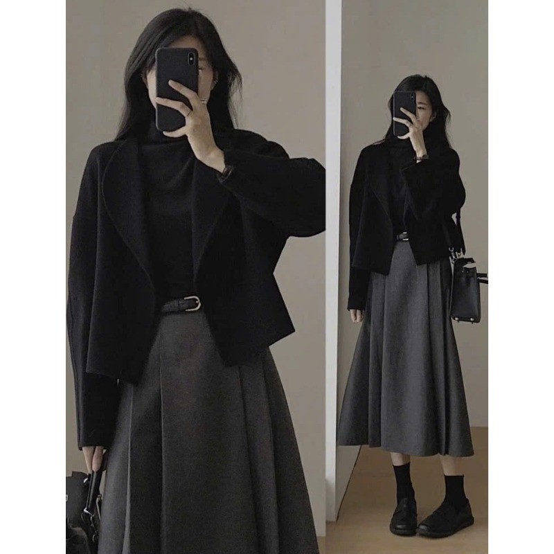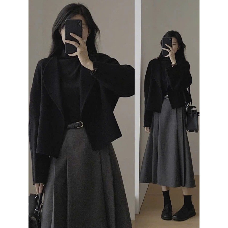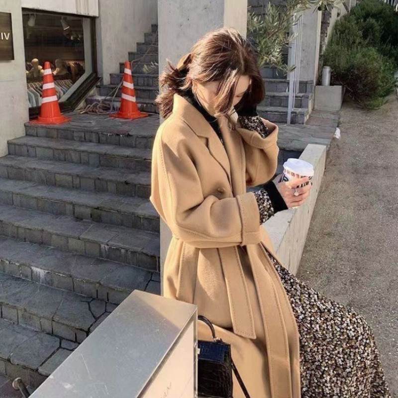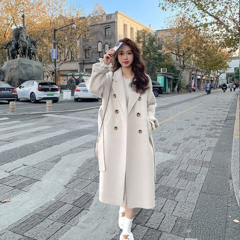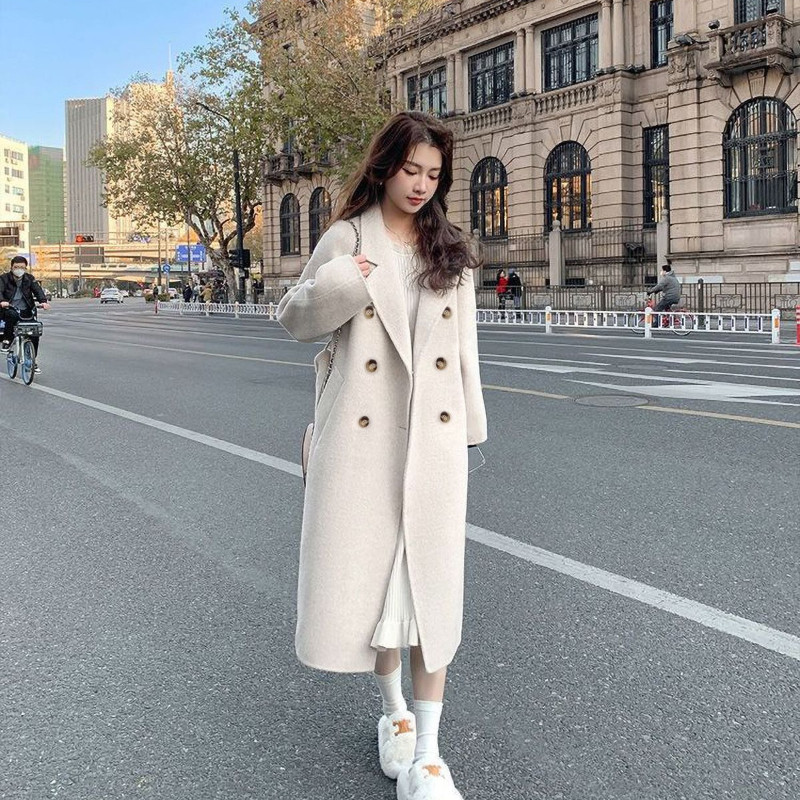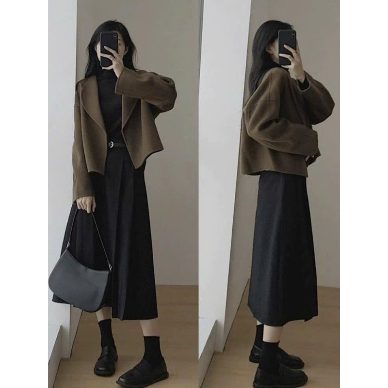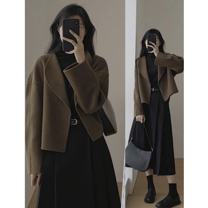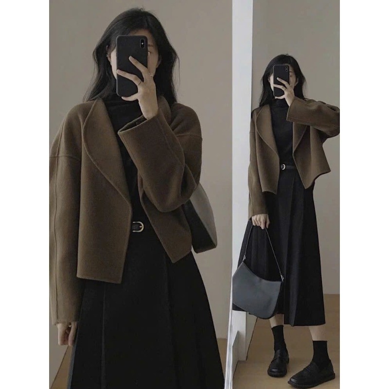 เสื้อขนสัตว์แบบสองหน้า สไตล์ฝรั่งเศส สำหรับฤดูใบไม้ร่วงและหนาว เหมาะสำหรับนักเรียนและแฟชั่น
