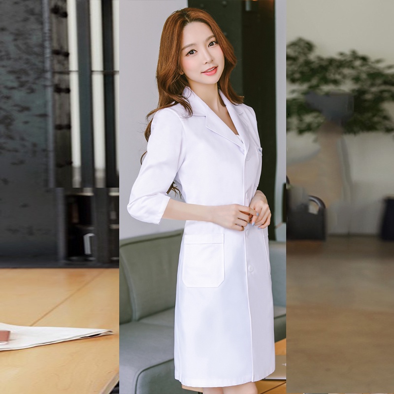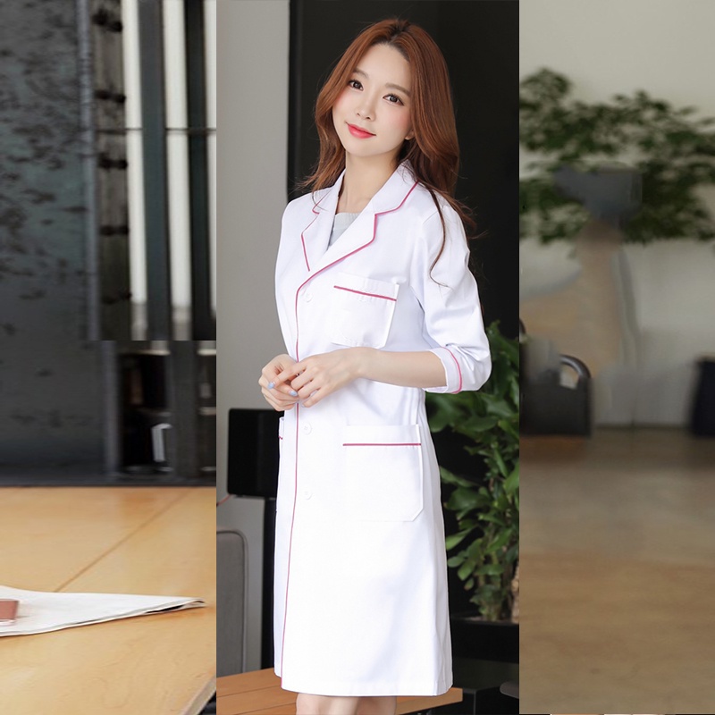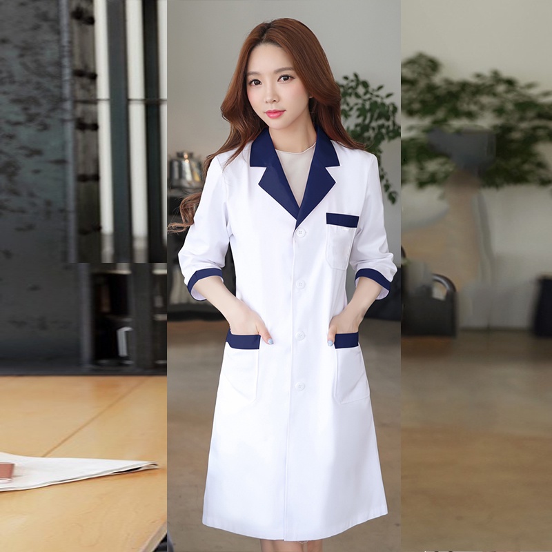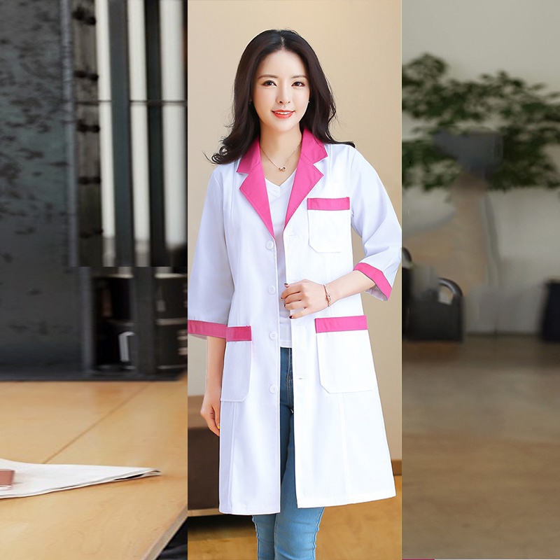 ฟรีเย็บปักถักร้อยlab Gown Lab Coatสําหรับผู้หญิง,Hospital Medical Doctorเสื้อผ้าผ่าตัดชุดWorkwear,กลางแขนหลายกระเป๋า-**-