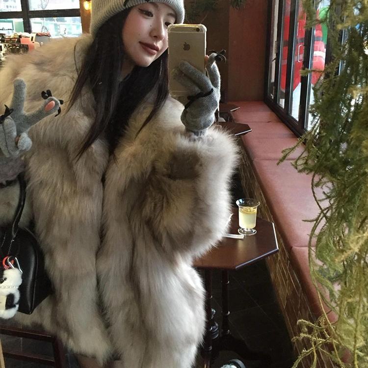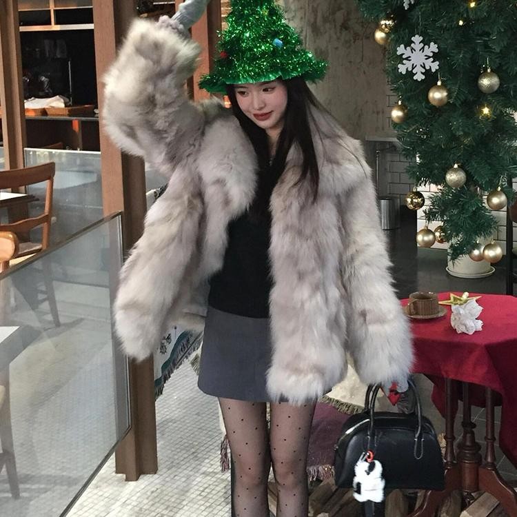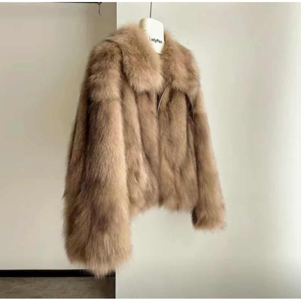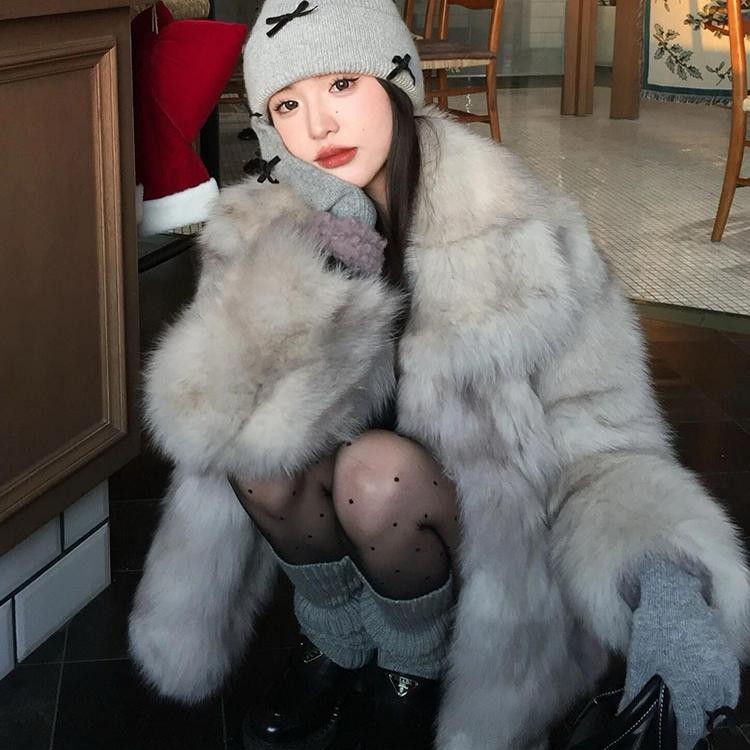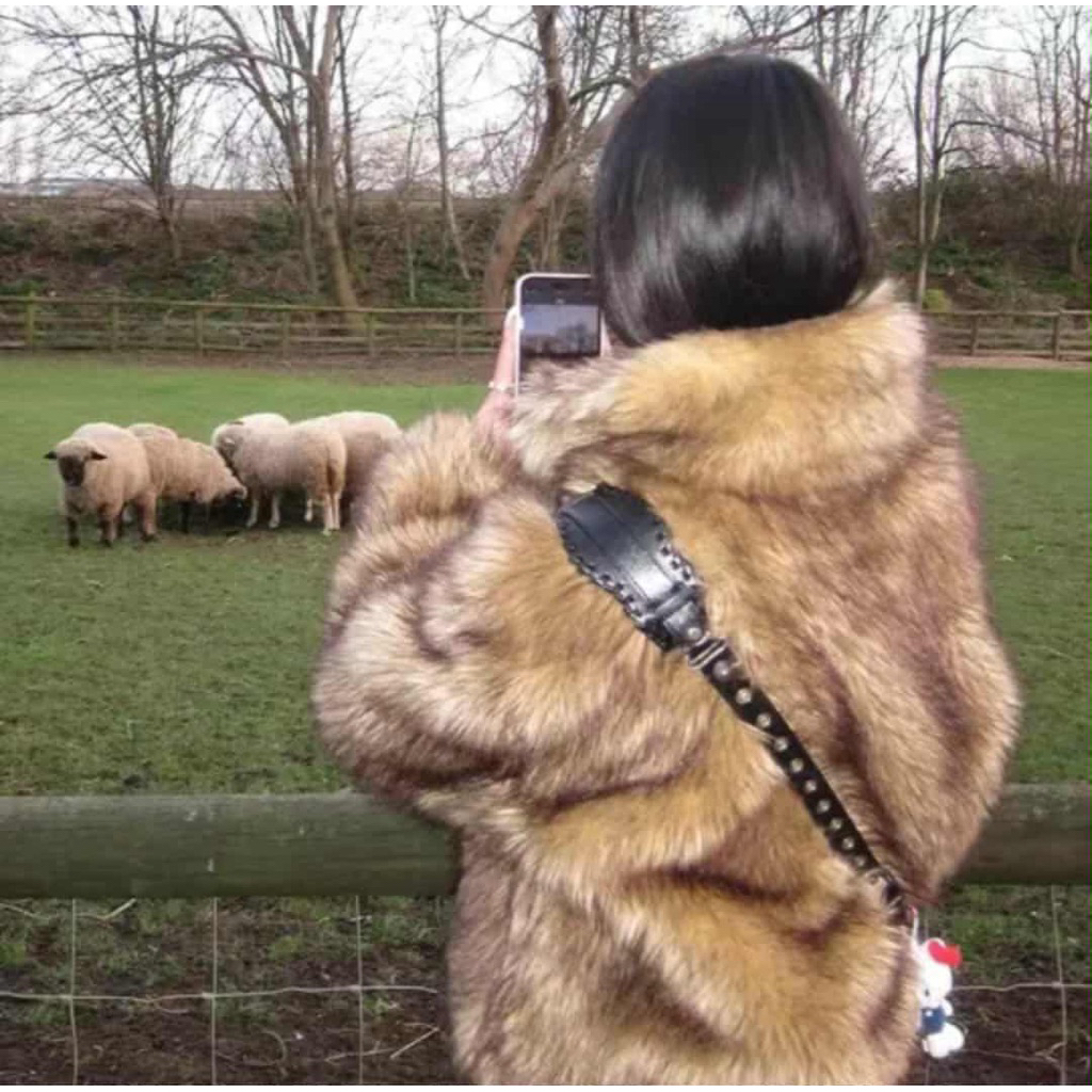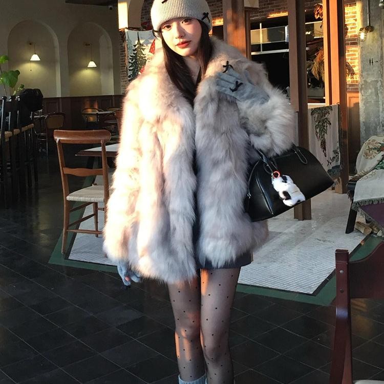 เสื้อขนสัตว์ผู้หญิง สีไล่ระดับโทนฟ็อกซ์ ความยาวกลาง หนา พิมพ์ลายพิเศษด้านบน