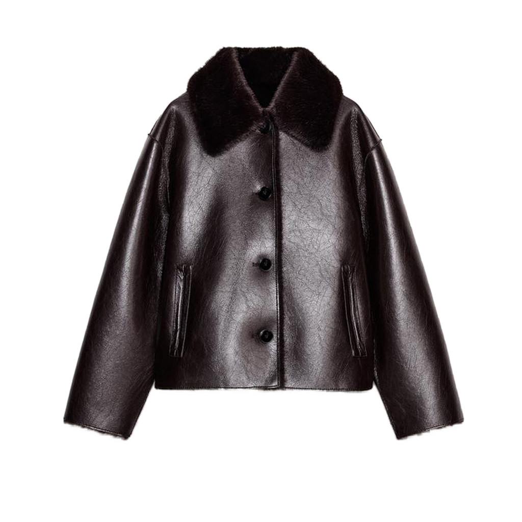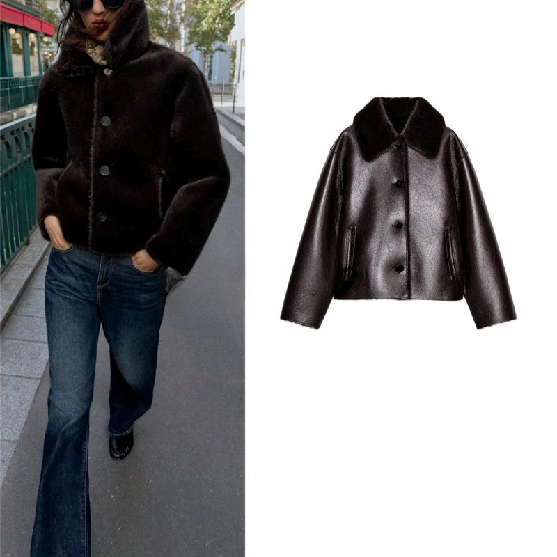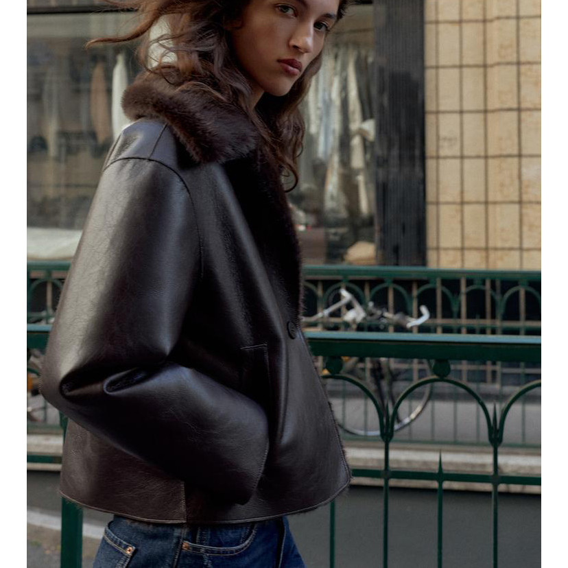 เสื้อหนังสำหรับผู้หญิงสองด้าน ออกแบบใหม่สำหรับฤดูหนาว รหัส 8073327