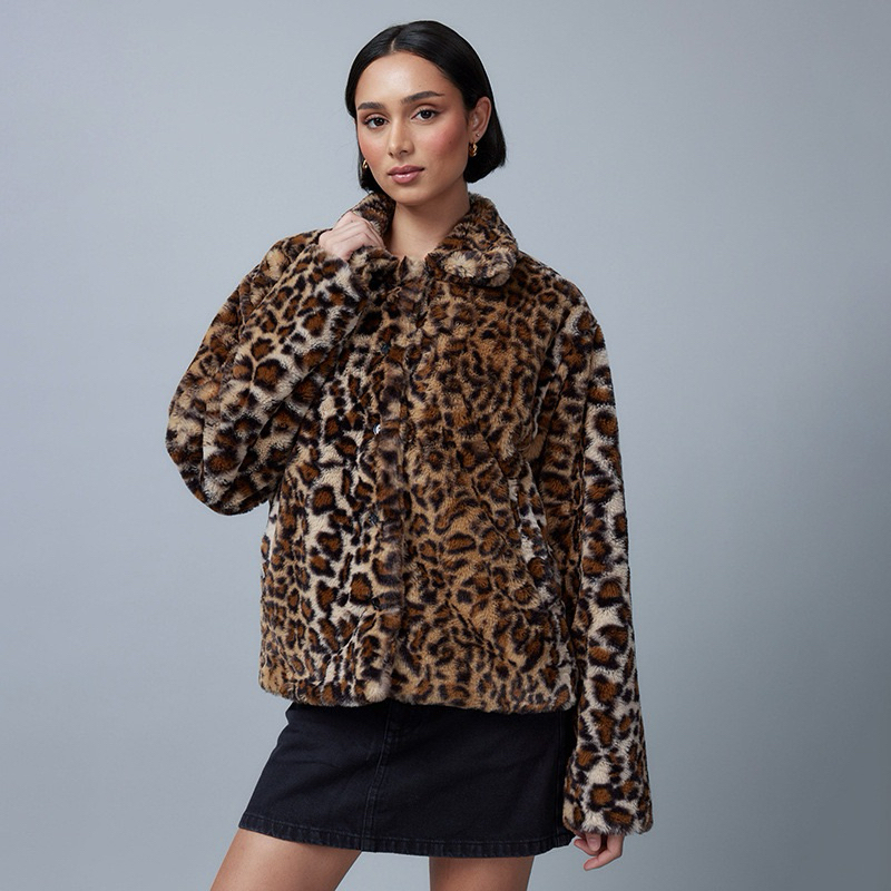 ส่งไทย🇹🇭/ส่งด่วน🛵| เสื้อกันหนาว oversize ขนเฟอร์ลายเสือ ทรงกระดุมหน้านะคะ