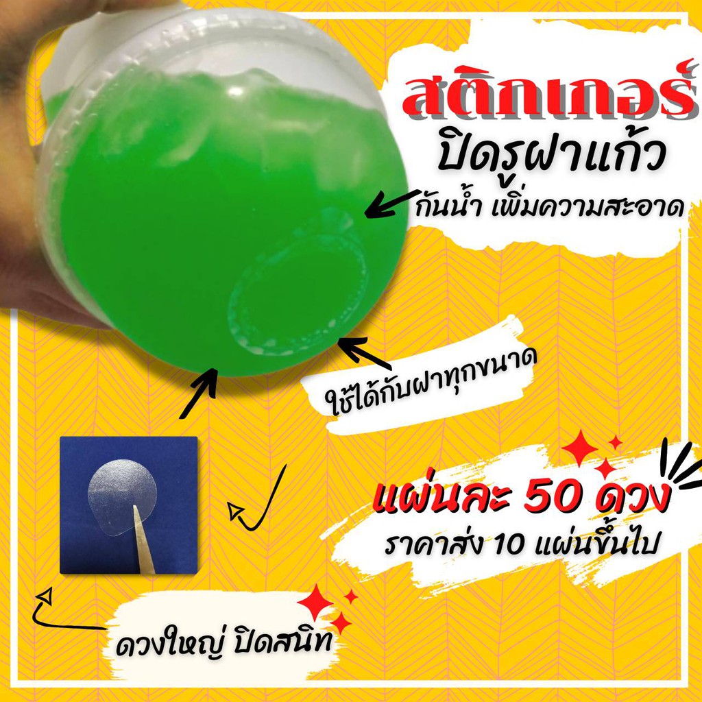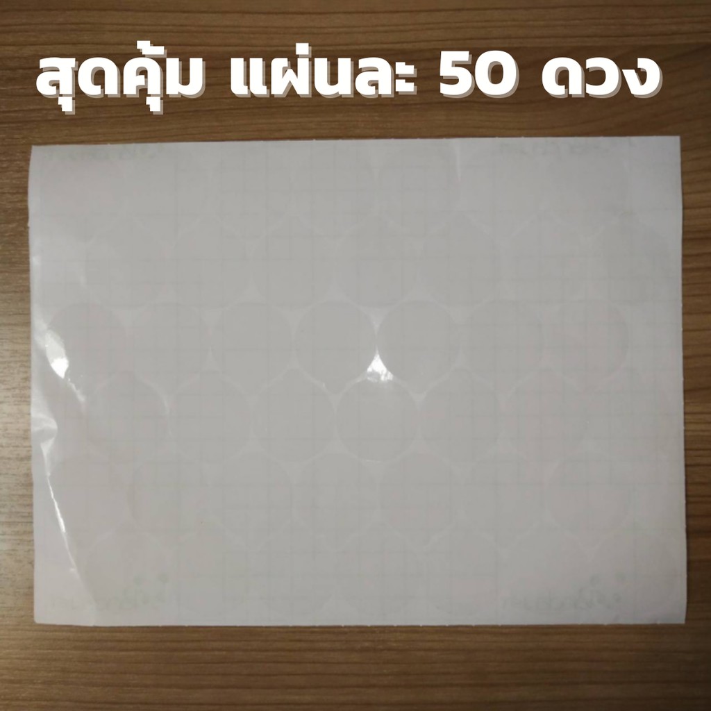 มีราคาส่ง สติ๊กเกอร์ปิดจุกกันน้ำหก ปิดรูฝาแก้ว แผ่นละ 50 ดวง แบบใส กันน้ำหก วงใหญ่ 3.5ซม สติกเกอร์วงกลม สติ๊กเกอร์