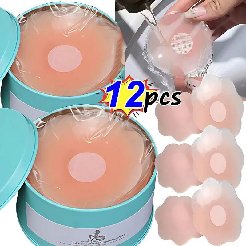 ผ้าคลุมจุกนมแบบมีกาวในตัว 6 คู่ – ผ้าคลุมซิลิโคนแบบมองไม่เห็น ไม่มีสายหนัง และไร้รอยต่อสําหรับผู้หญิง