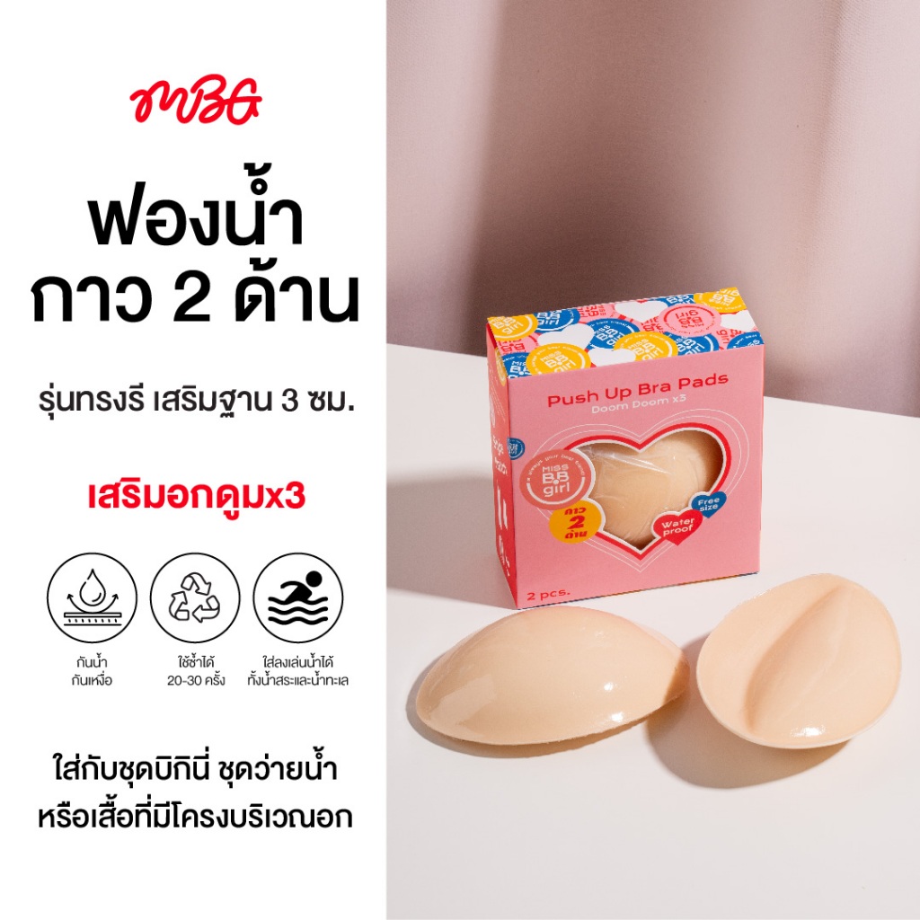 ฟองน้ำทรงวงรี กาว 2 ด้าน อกฟู x3 กันน้ำ กันเหงื่อ เสริมฐาน 2.5 ซม. อกดูมเนียน ไม่มีโป๊ะ Freesize | missBBgirl