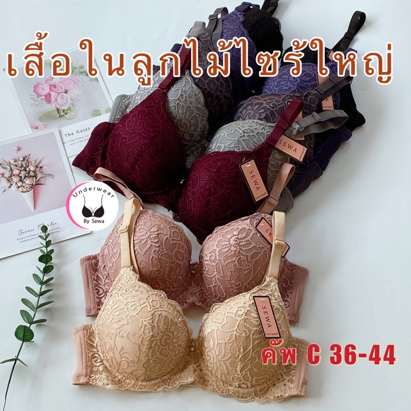 (สินค้าขายดี)เสื้อในลูกไม้ ไซร้ใหญ่ ฟองบาง มีโครง หลังเรียบ 1905