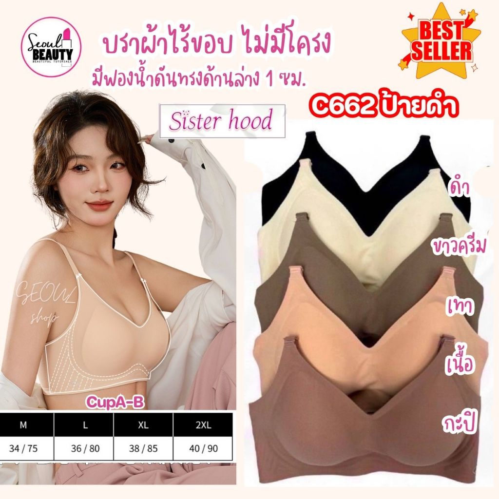 (CupAB)(งานป้ายดำ พรีเมี่ยม) เสื้อใน ผ้าไร้ขอบ ไร้โครง ผ้านิ่ม ลื่น ใส่สบาย ตะขอหลัง 662 / ไซส์ M-2XL SisterHood