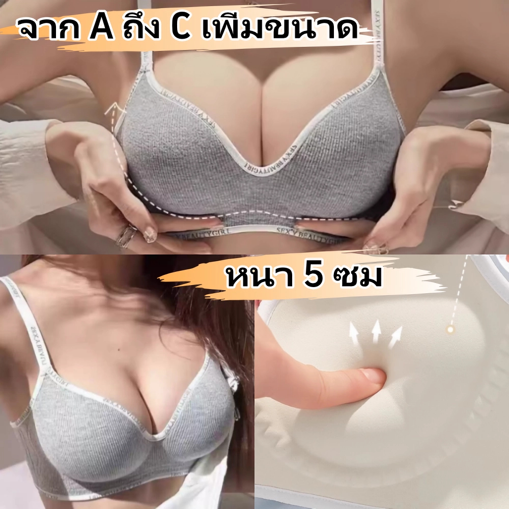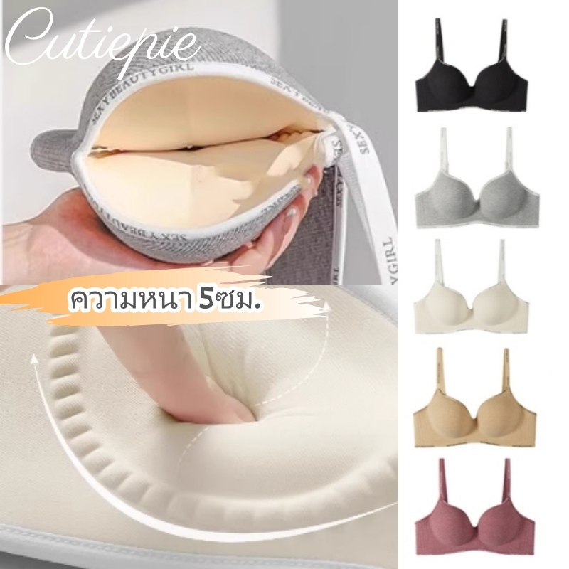 Cutiepie🍥บราไร้รอยต่อ ไร้โครงสำหรับผู้หญิง ฟองน้ำหนา 5 ซม. ช่วยให้หน้าอกเล็กดูเต็มอิ่ม ยกกระชับรูปทรง ป้องกันการหย่อนคล้อย ใส่สบายระบายอากาศดี