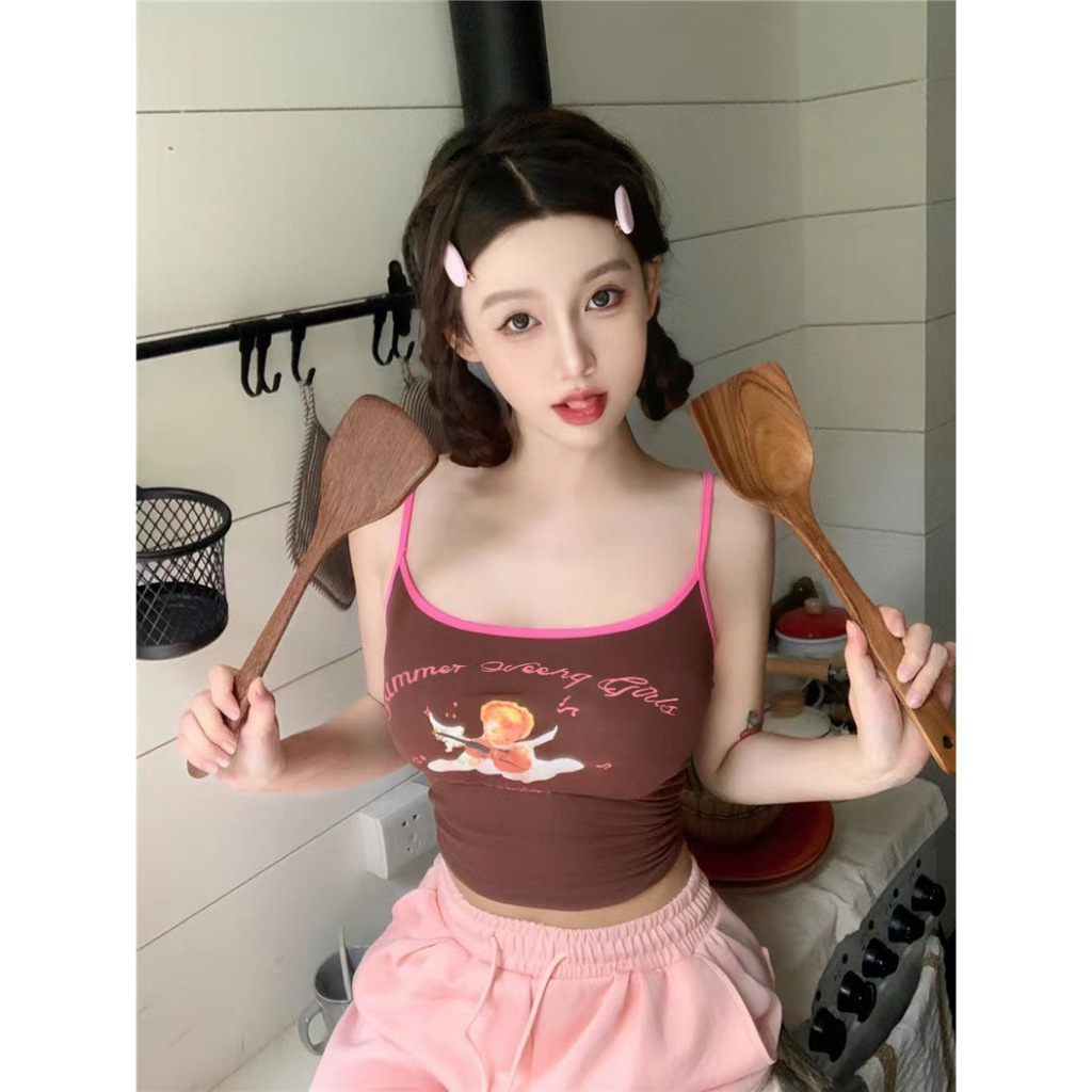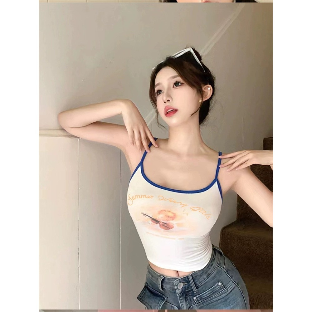 Cicishop(Y2217)บราสาบเดี่ยวผ้าเรยอน มีฟองน้ำในตัว จั๊มข้าง ดีเทลสกรีนลายน่ารัก สาวๆห้ามพลาด