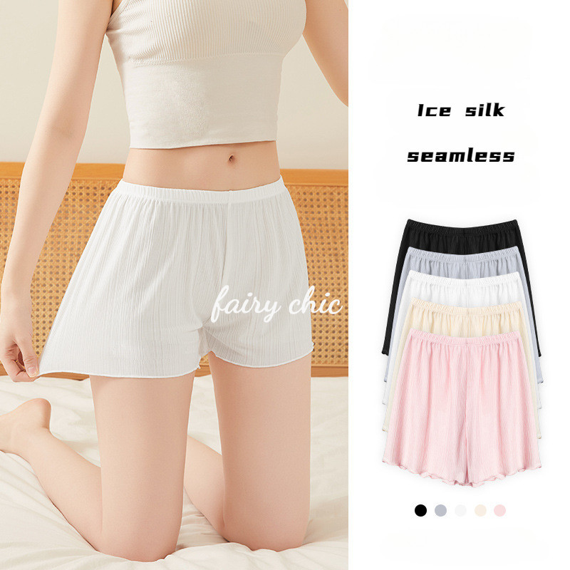 กางเกงนิรภัยของผู ้ หญิงเลกกิ ้ งสั ้ นกางเกงไร ้ รอยต ่ อระบายอากาศบางขอบหยักเลกกิ ้ งบ ้ านป ้ องกันการสัมผัส