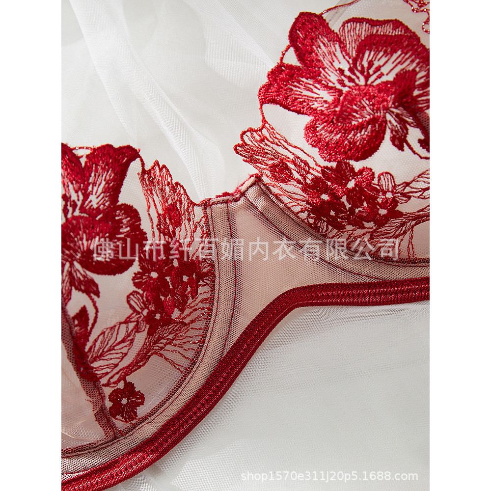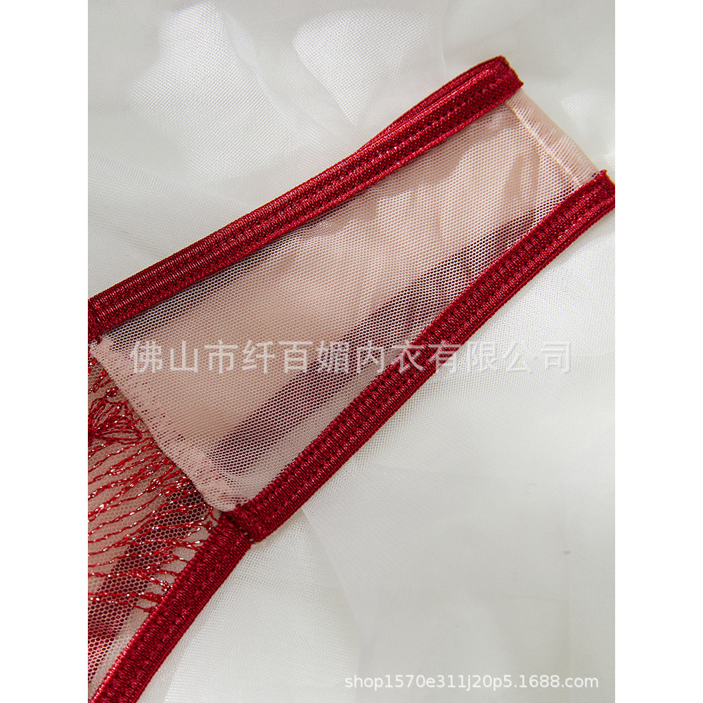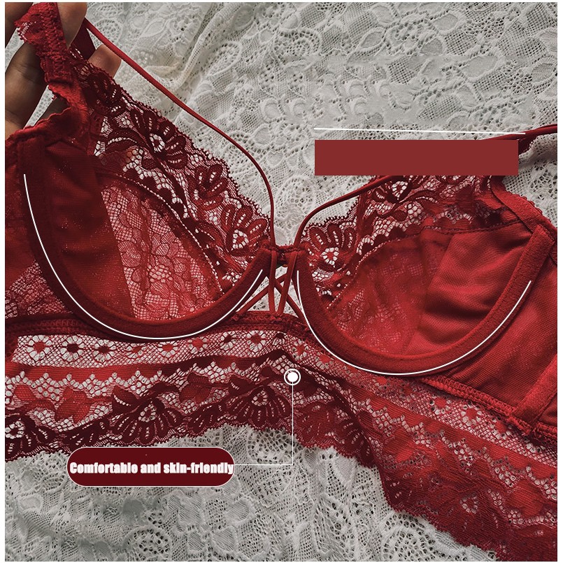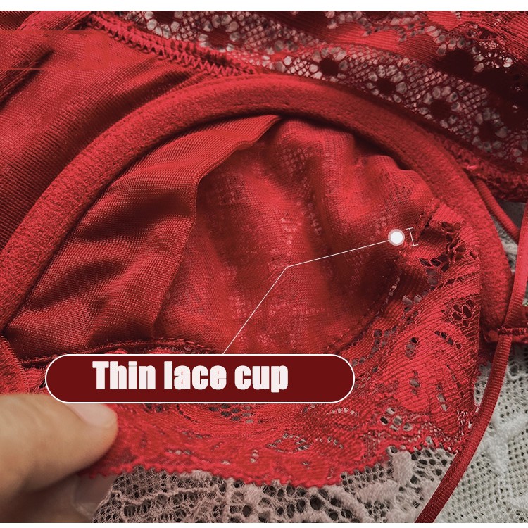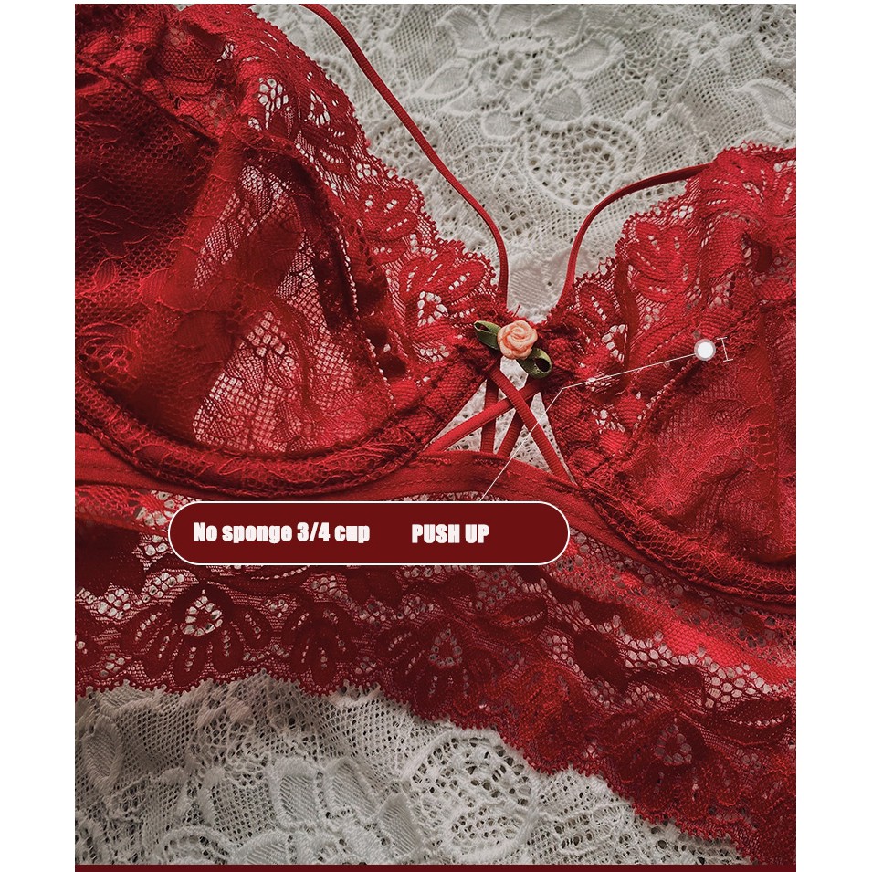 บิกินี่เซ็กซี่ชุดชั้นในลูกไม้เซ็กซี่ชุด Pure Desire Temptation Bra เย็บปักถักร้อยสีแดงหญิง