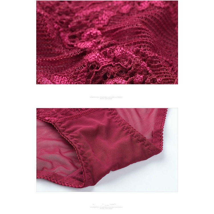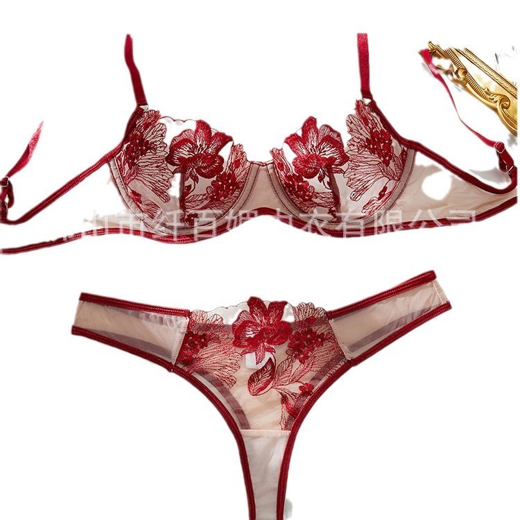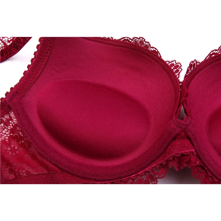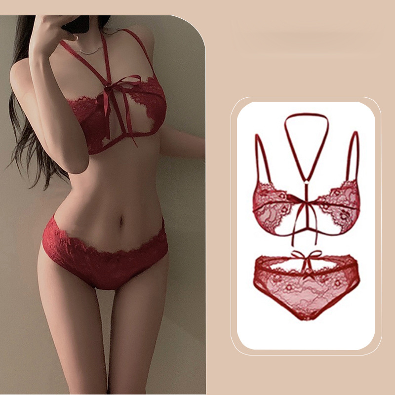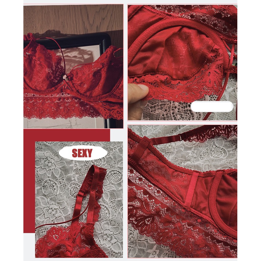 บิกินี่เซ็กซี่ชุดชั้นในลูกไม้เซ็กซี่ชุด Pure Desire Temptation Bra เย็บปักถักร้อยสีแดงหญิง