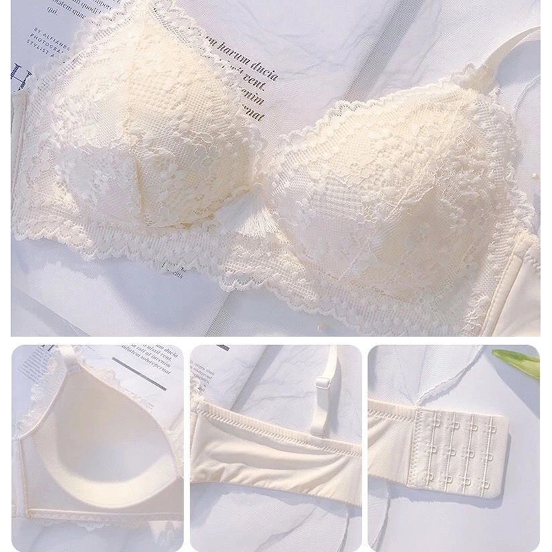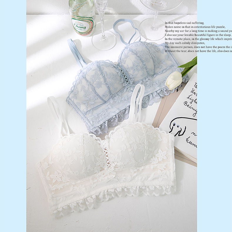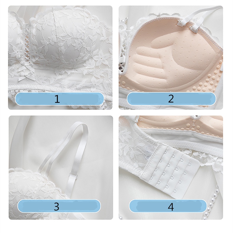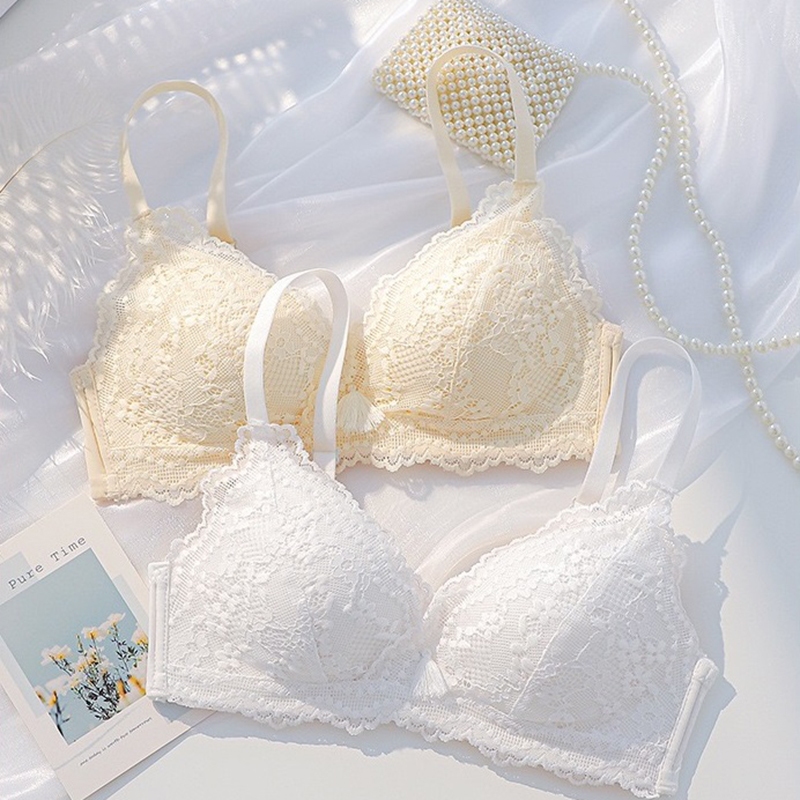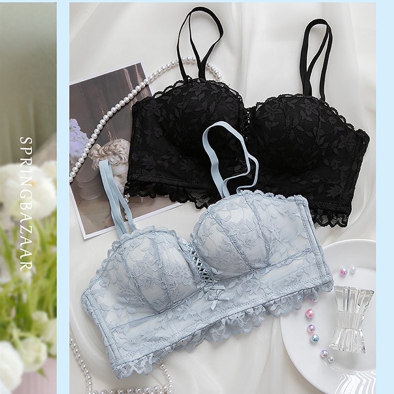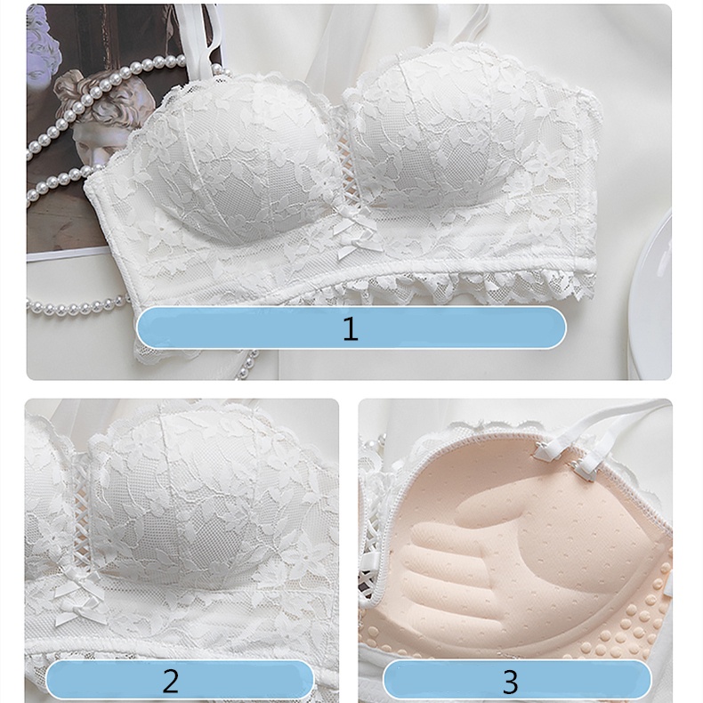 ชุดชั้นใน บราดันทรง ลูกไม้ เซ็กซี่ ประดับโบว์ + กางเกงชั้นใน นุ่ม เด็กสาว วัยรุ่น ดันทรง ชุดชั้นใน ป้องกันการหย่อนคล้อย แหวนเหล็ก ชุดชั้นในสตรี