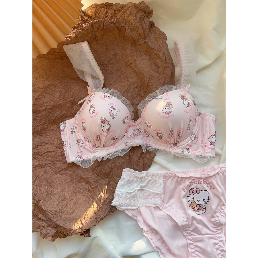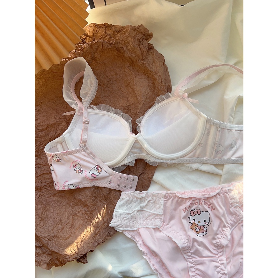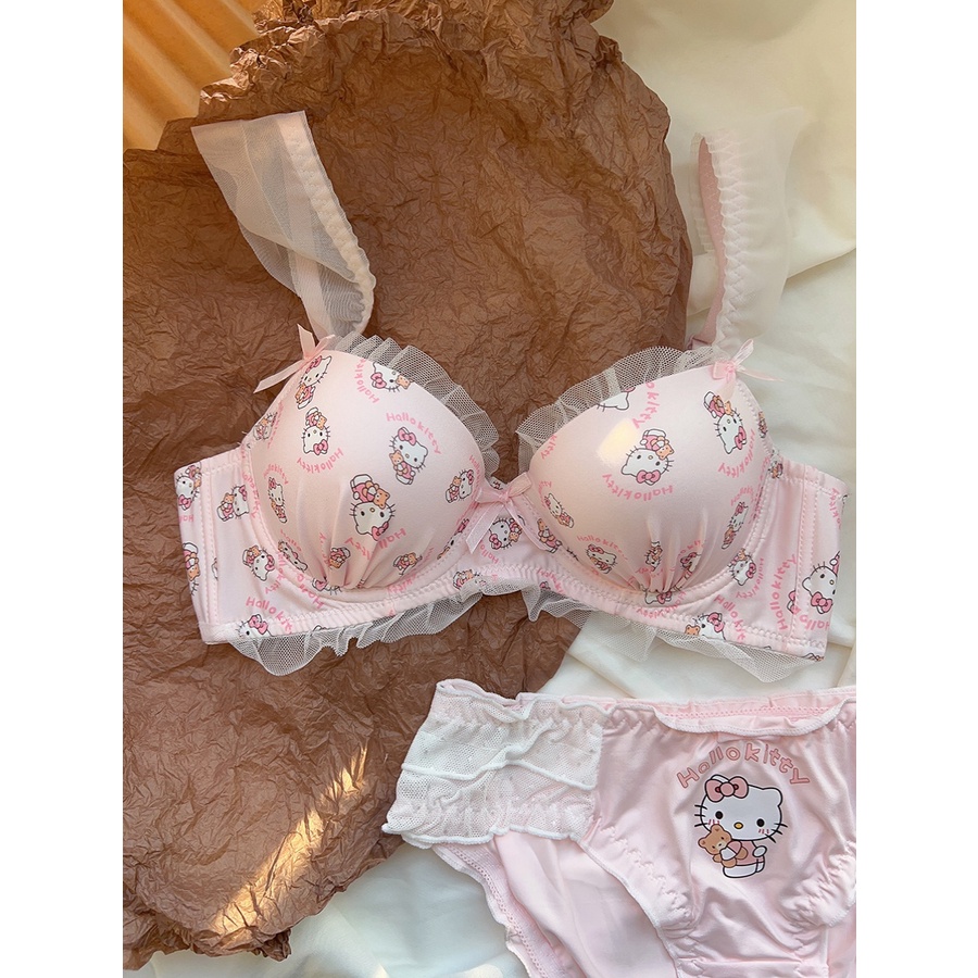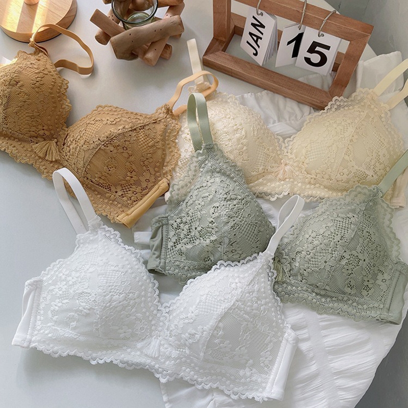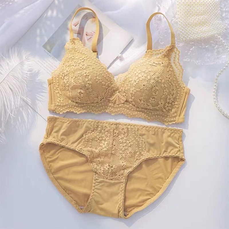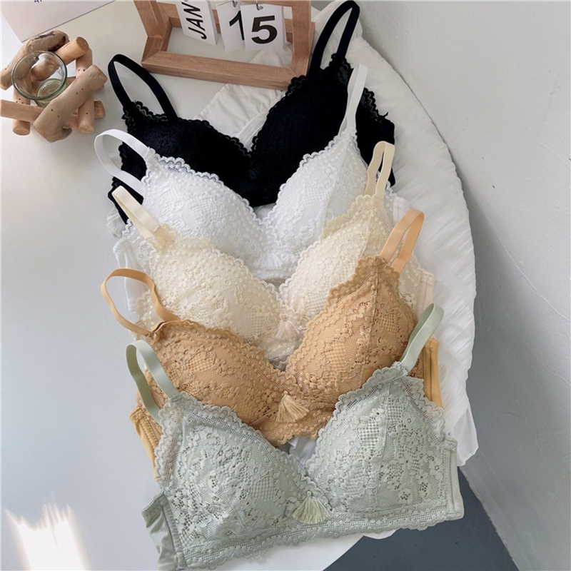 ชุดชั้นใน บราดันทรง ลูกไม้ เซ็กซี่ ประดับโบว์ + กางเกงชั้นใน นุ่ม เด็กสาว วัยรุ่น ดันทรง ชุดชั้นใน ป้องกันการหย่อนคล้อย แหวนเหล็ก ชุดชั้นในสตรี
