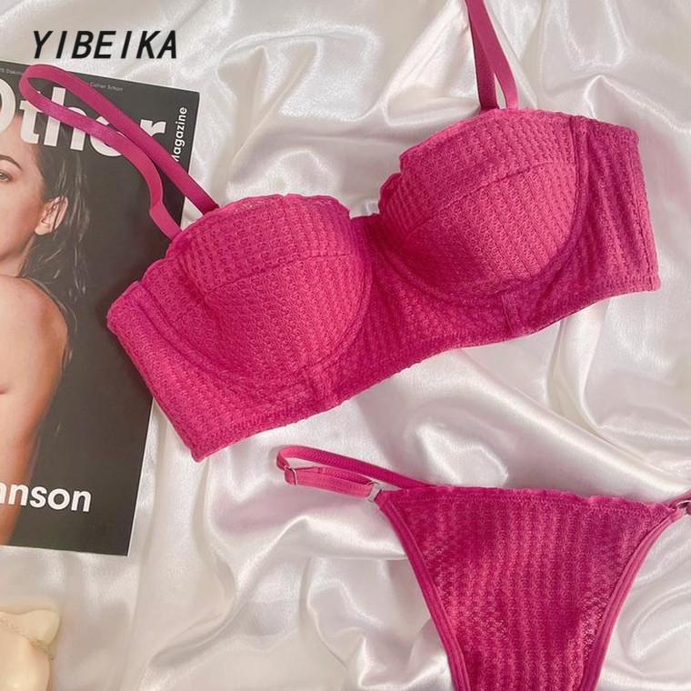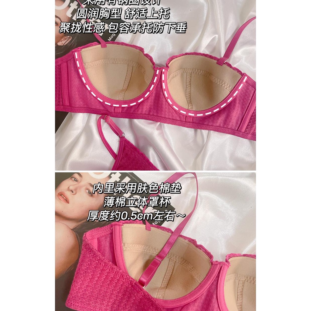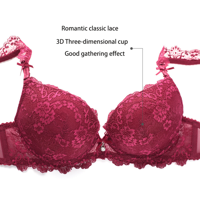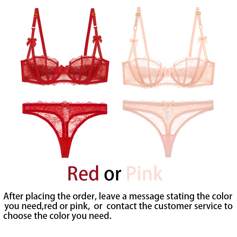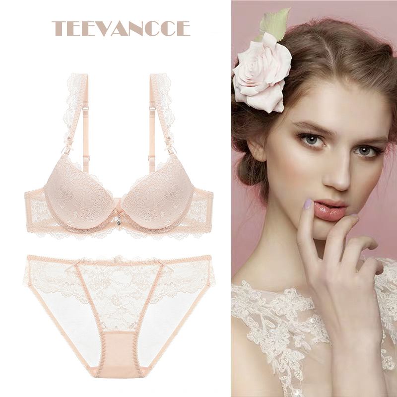 TEEVANCCE No sponge push-up bra set sexy lace ultra-thin gathered 3/4 cup new underwear red blue pink black