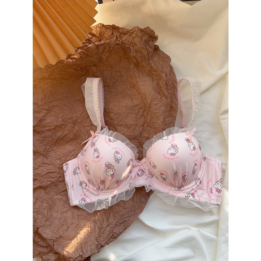 ชุดชั้นในไร้สาย ประดับโบว์ ขนาดเล็ก สีชมพู สไตล์ญี่ปุ่น สําหรับเด็กผู้หญิง