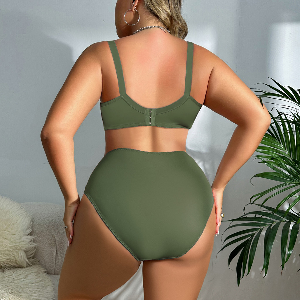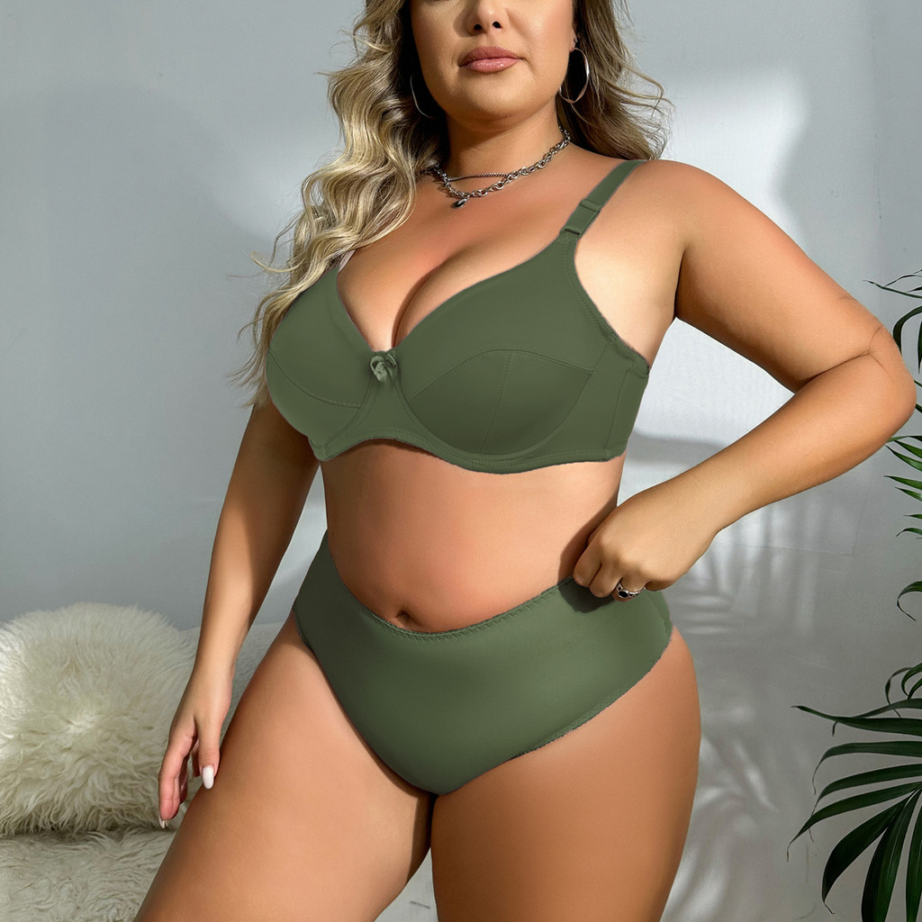 Parifairy Plus ขนาด Bra และกางเกงผู้หญิงขนาดใหญ่ Underwire Bra ชุดธรรมดา Unlined บางชุดชั้นในชุด 36-52 CDEF -398#Set