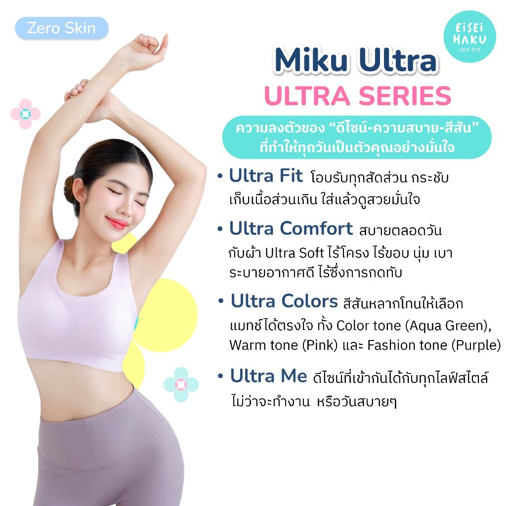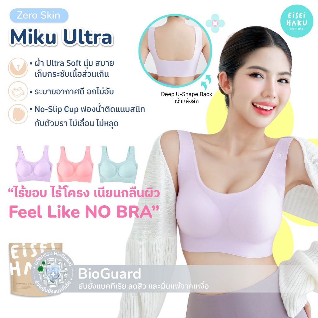 Set (สีเขียว Aqua Green) Miku Ultra Bra + Miku Ultra Panty ชุดชั้นในหญิง บราไร้โครง กางเกงในไร้ขอบ เนื้อผ้า Ultra Soft