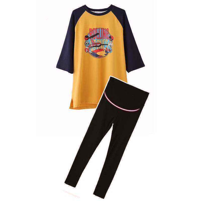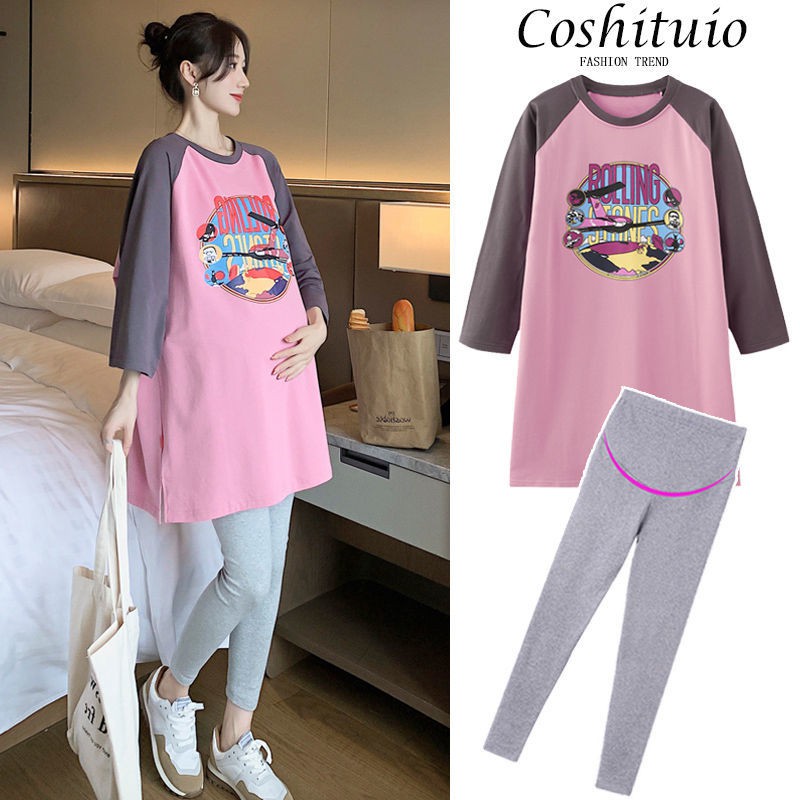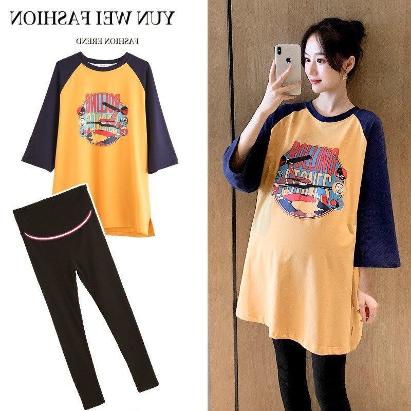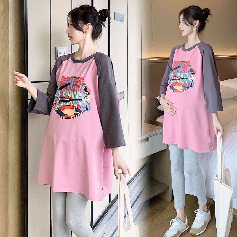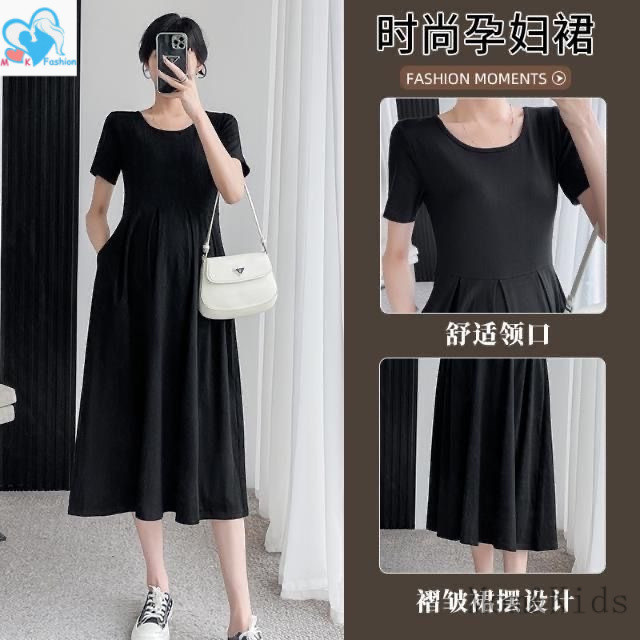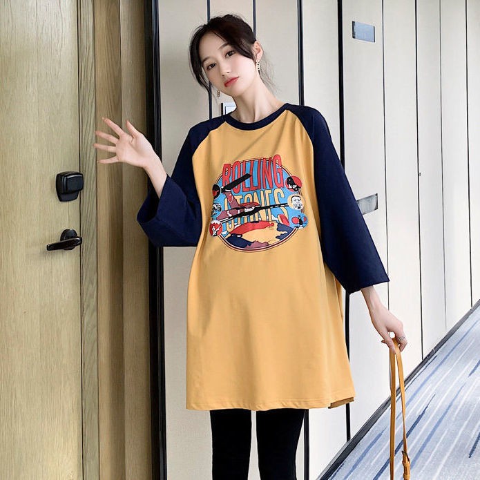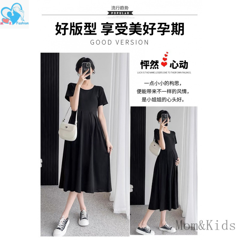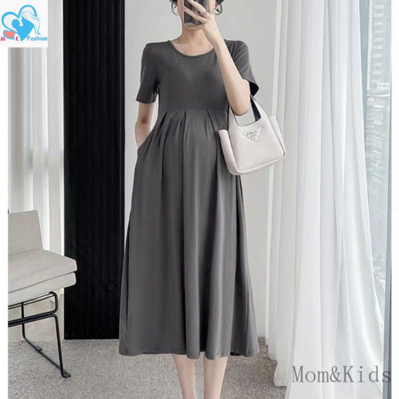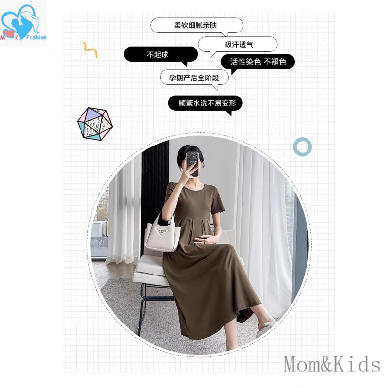 แม่ & เด็กชุดคลุมท้องแขนสั้นหลวมชุดตั้งครรภ์แฟชั่นสบายๆเกาหลีรุ่นชุดคลุมท้องชุดคลุมท้อง