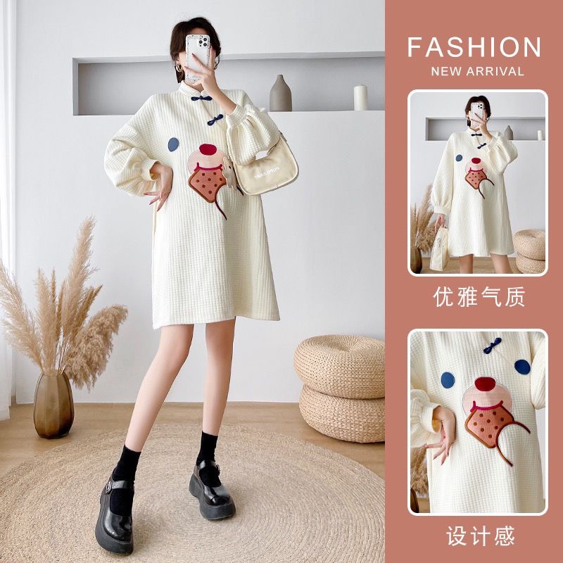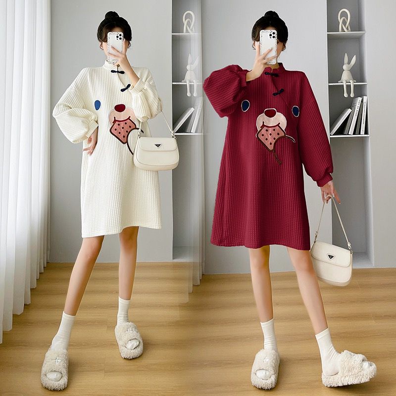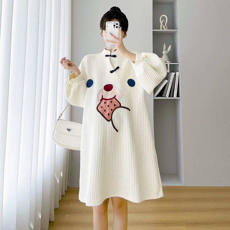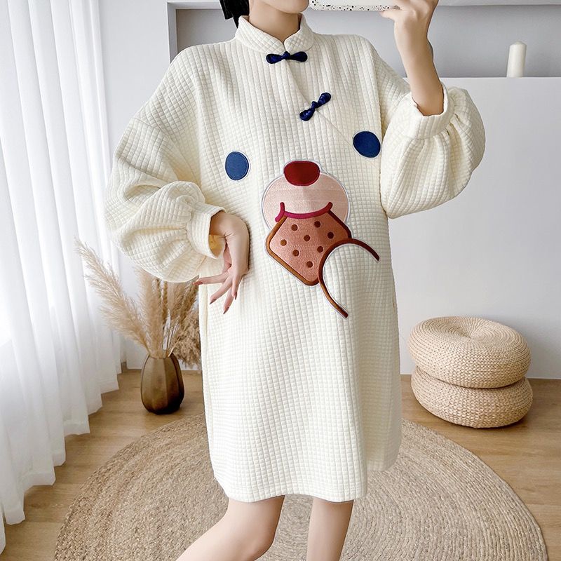 พร้อมส่ง✨ สไตล์เกาหลีแฟชั่นน่ารักการ์ตูนพิมพ์สบายหลวมชุดคลุมท้อง cheongsam รุ่นการ์ตูนชุดกระโปรง