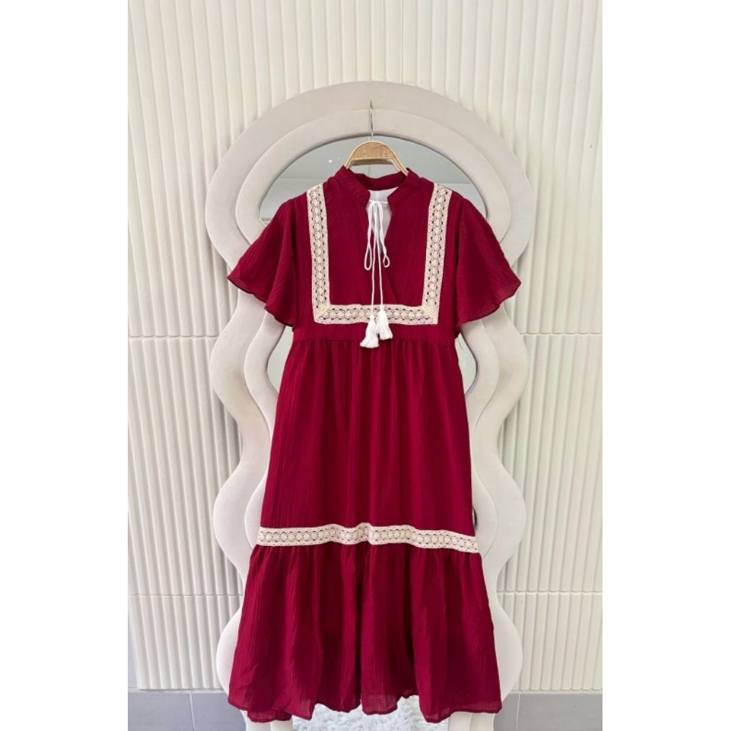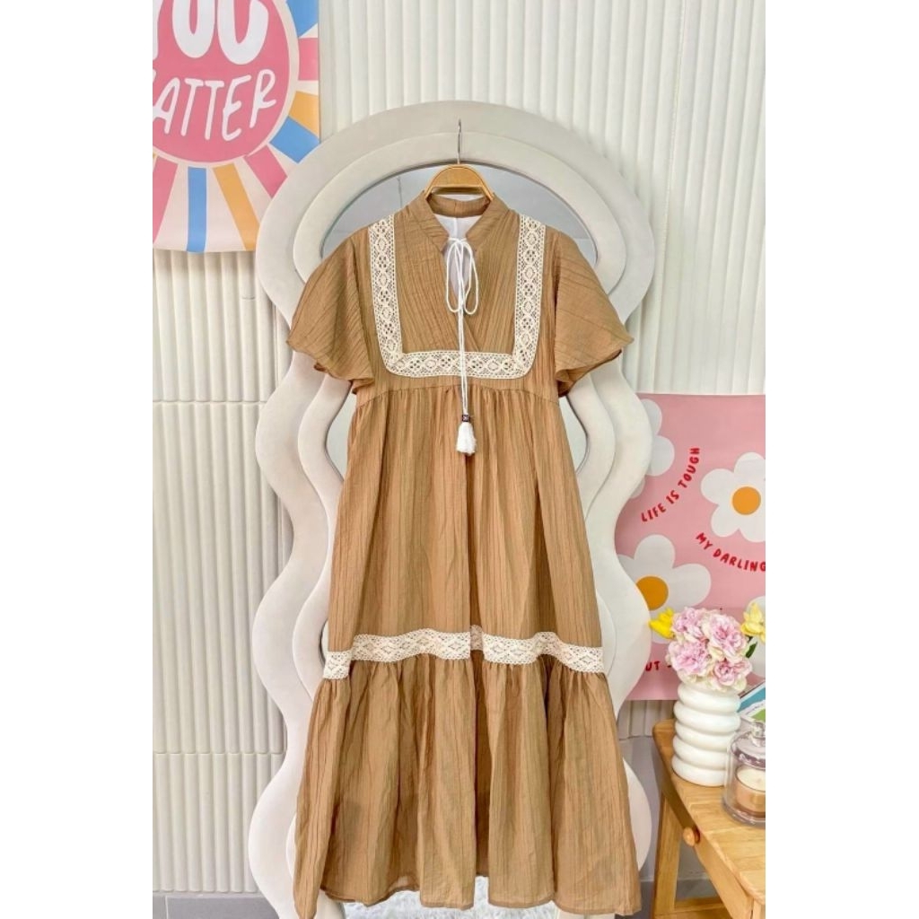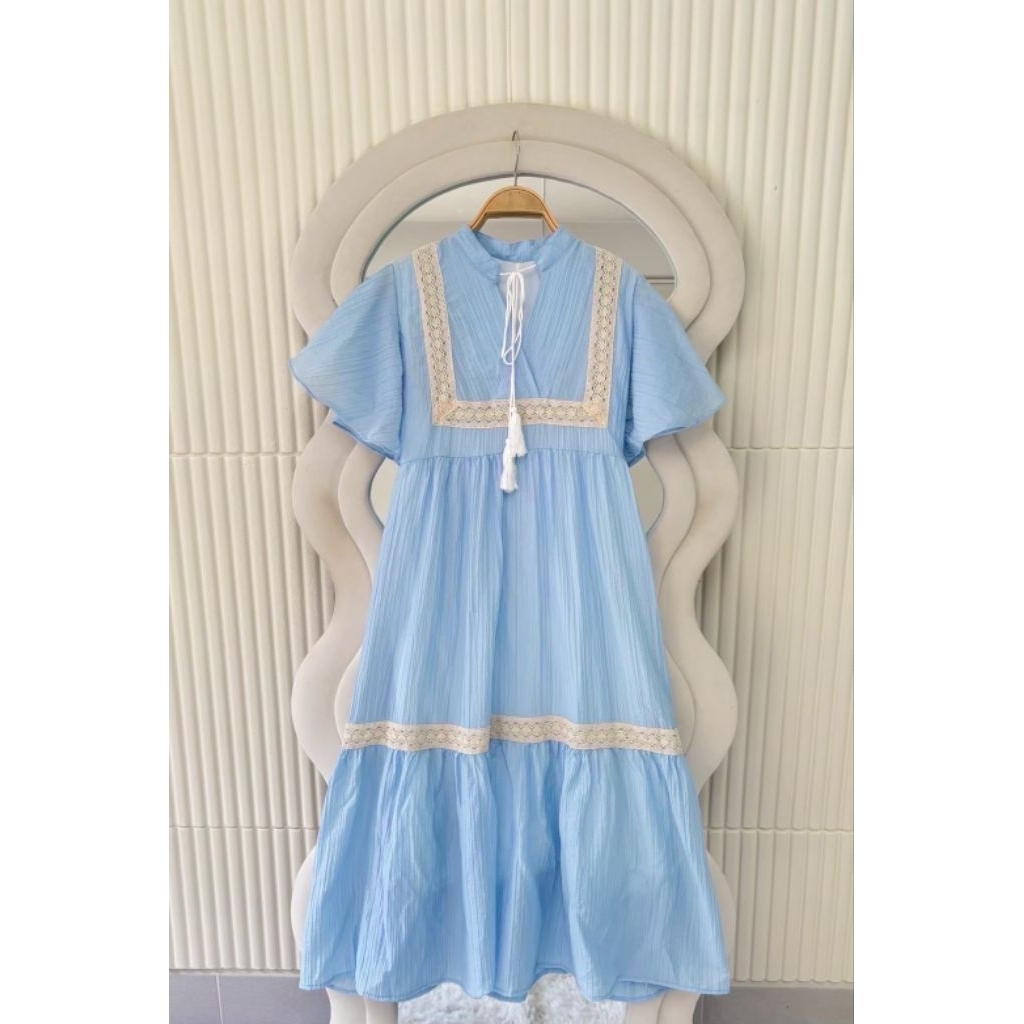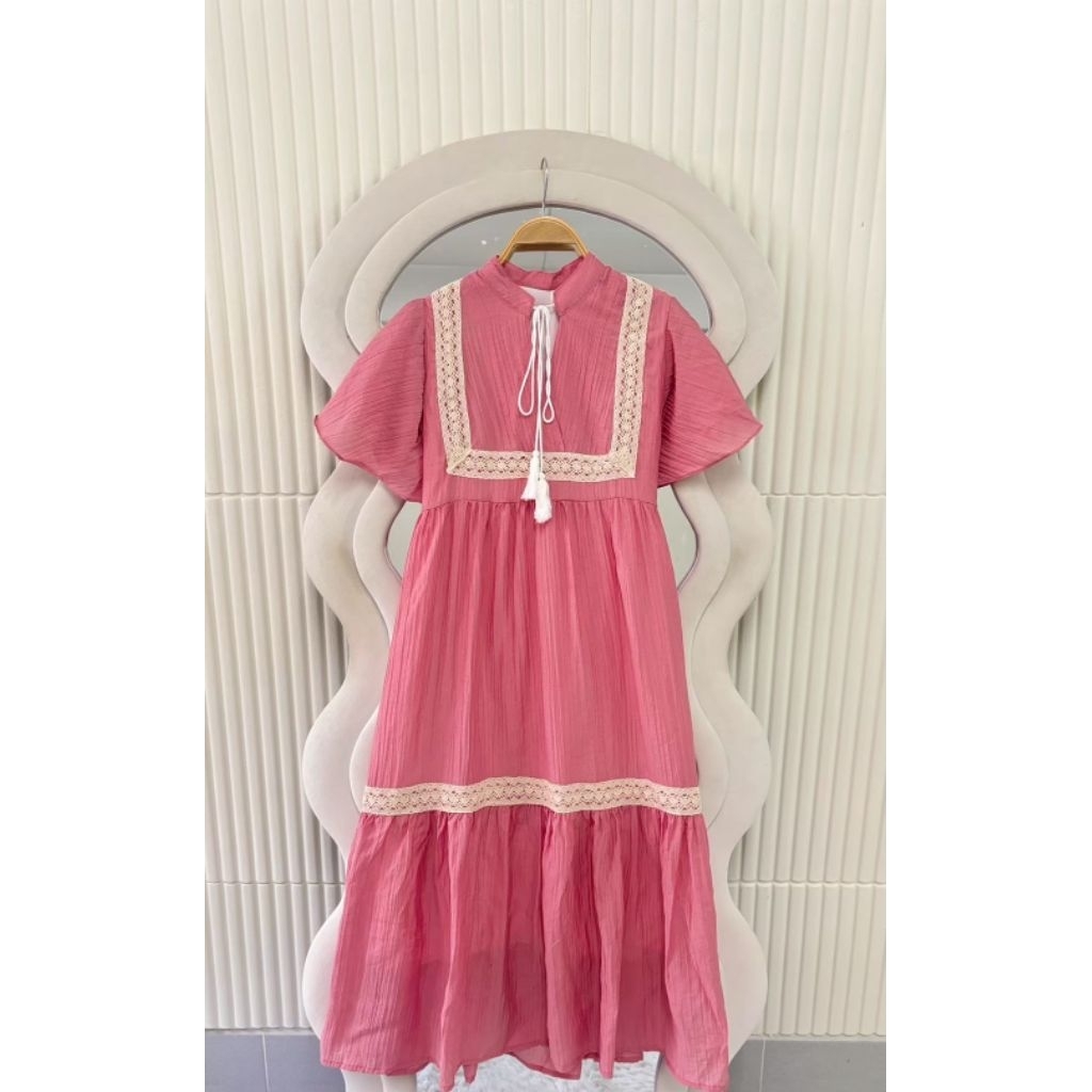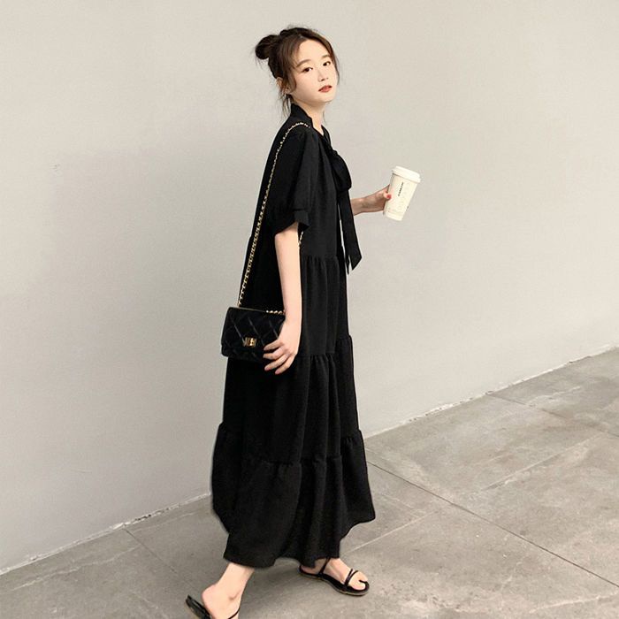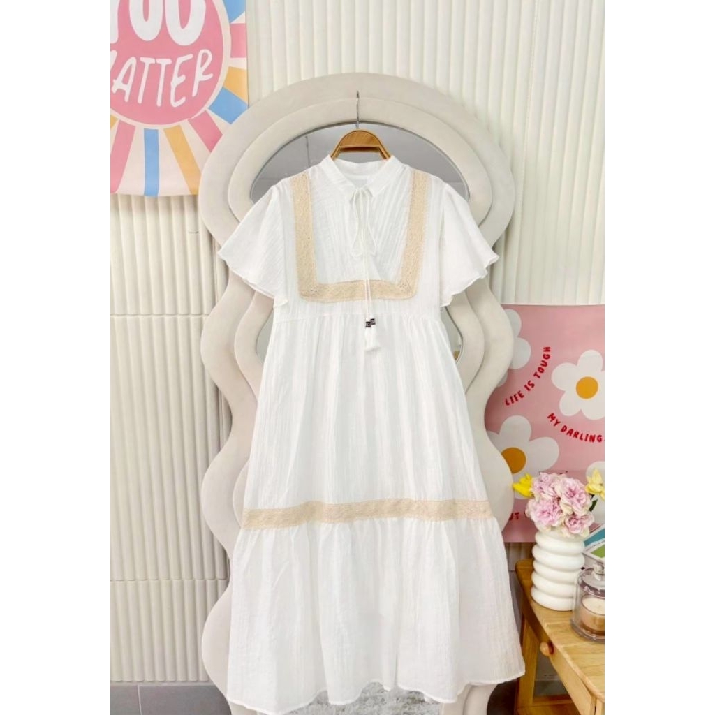 ชุดเดรสทรงสวยสีพื้นคนท้องใส่ได้34-44 ผ้าสลาฟอัดพลีทมีซับในผ้าดีใส่สบายยาว45นิ้ว