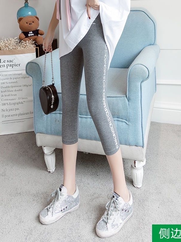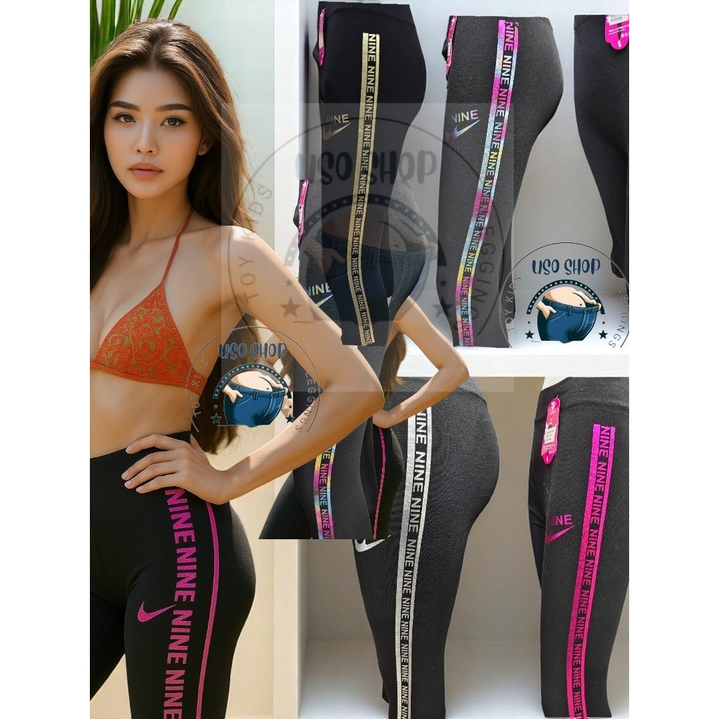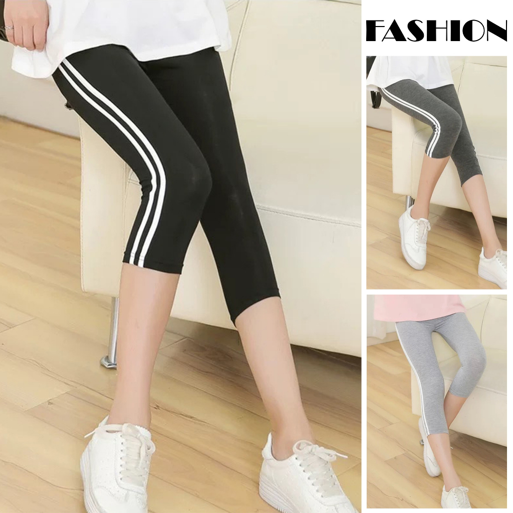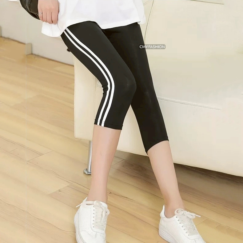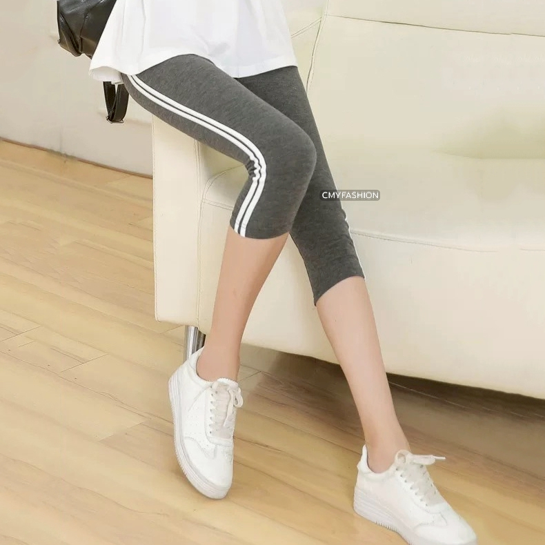 กางเกงเลกกิ้ง 7ส่วน กางเกงเลกกิ้งขายาว ดีเทลแต่งแถบขา 2เส้น ผ้าคอตตอนผสมสเปนเด็กซ์ ใส่ออกกำลังกายได้ p8739#