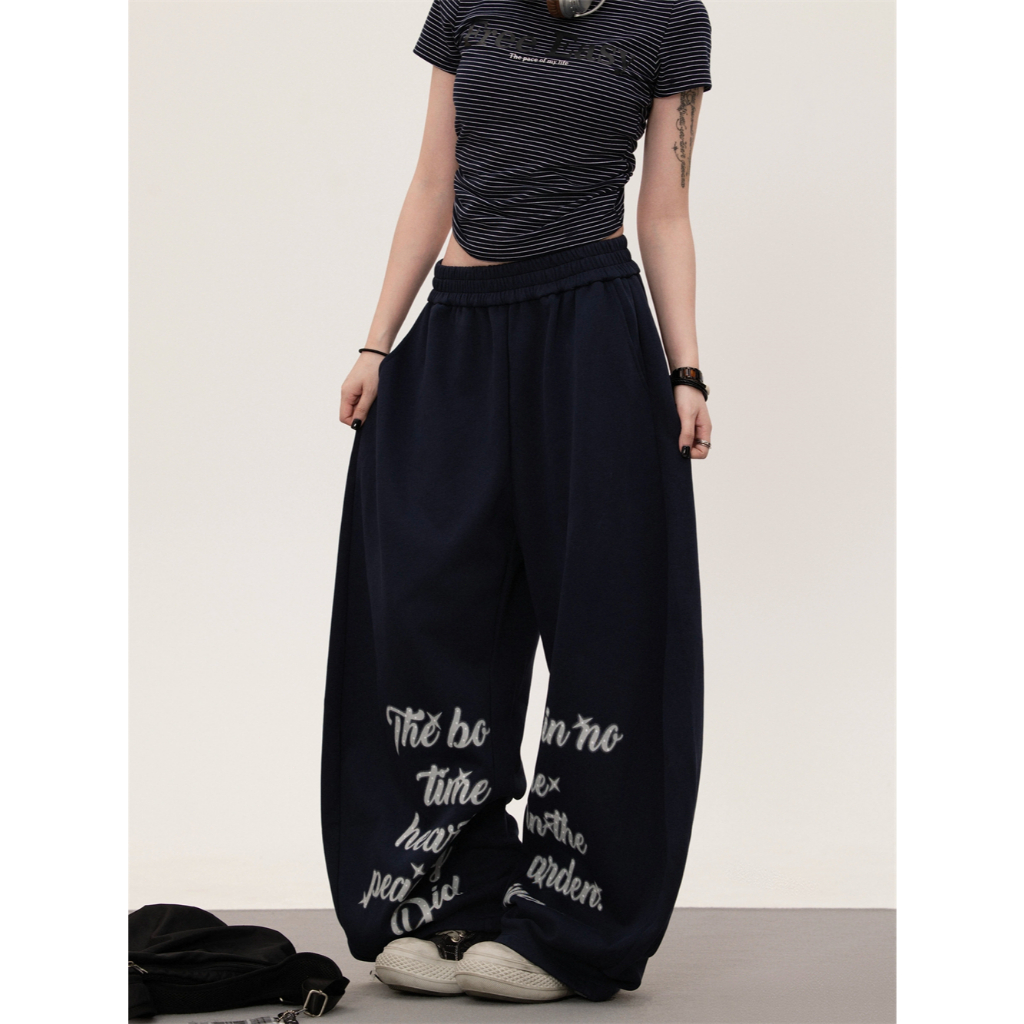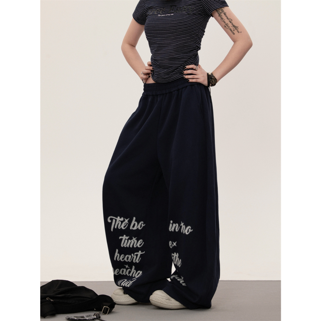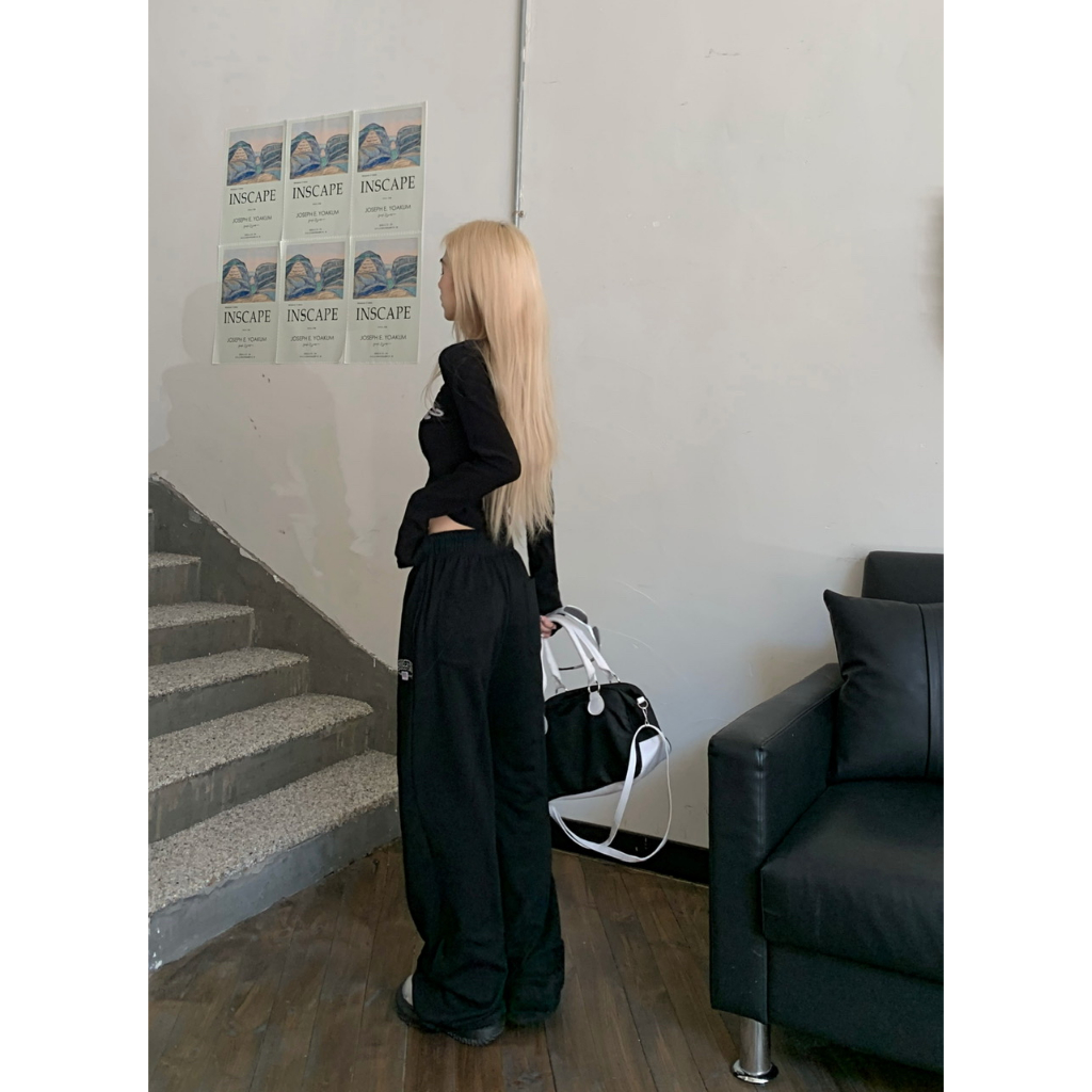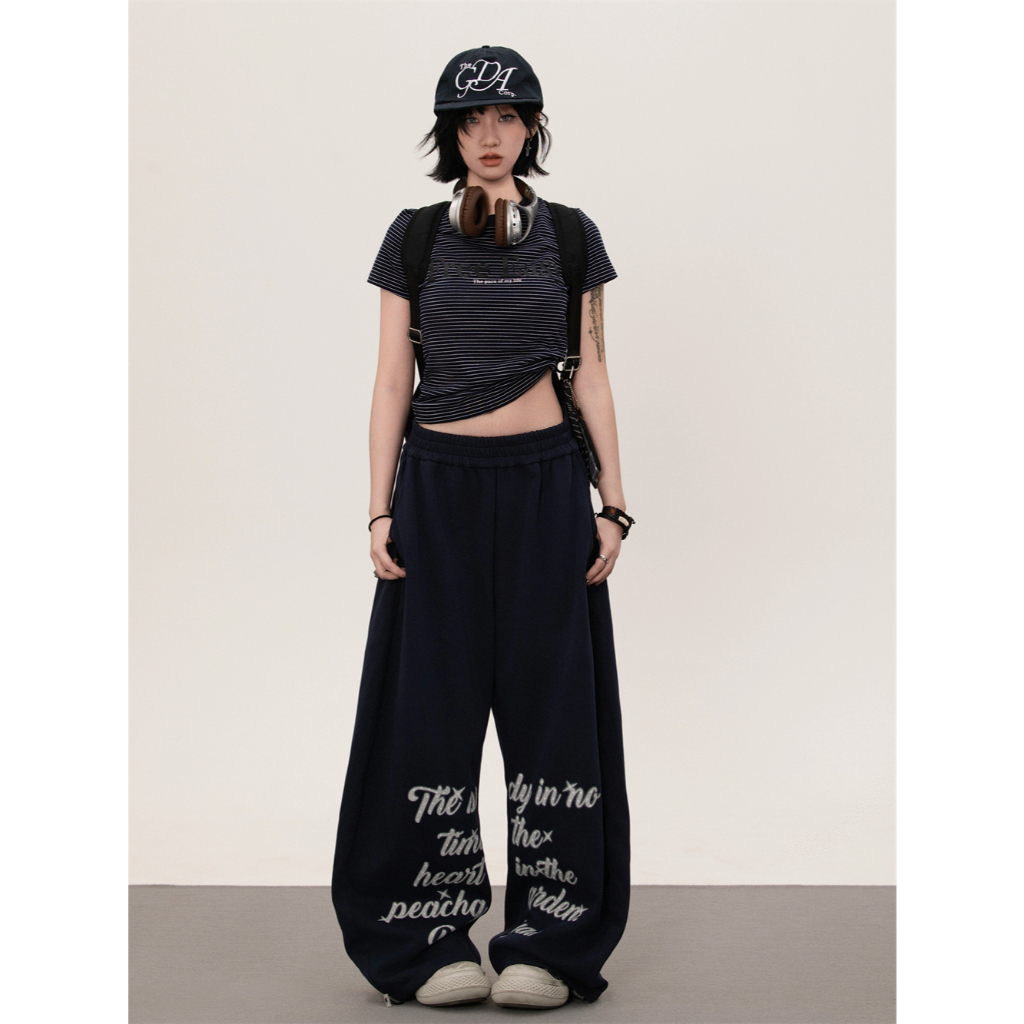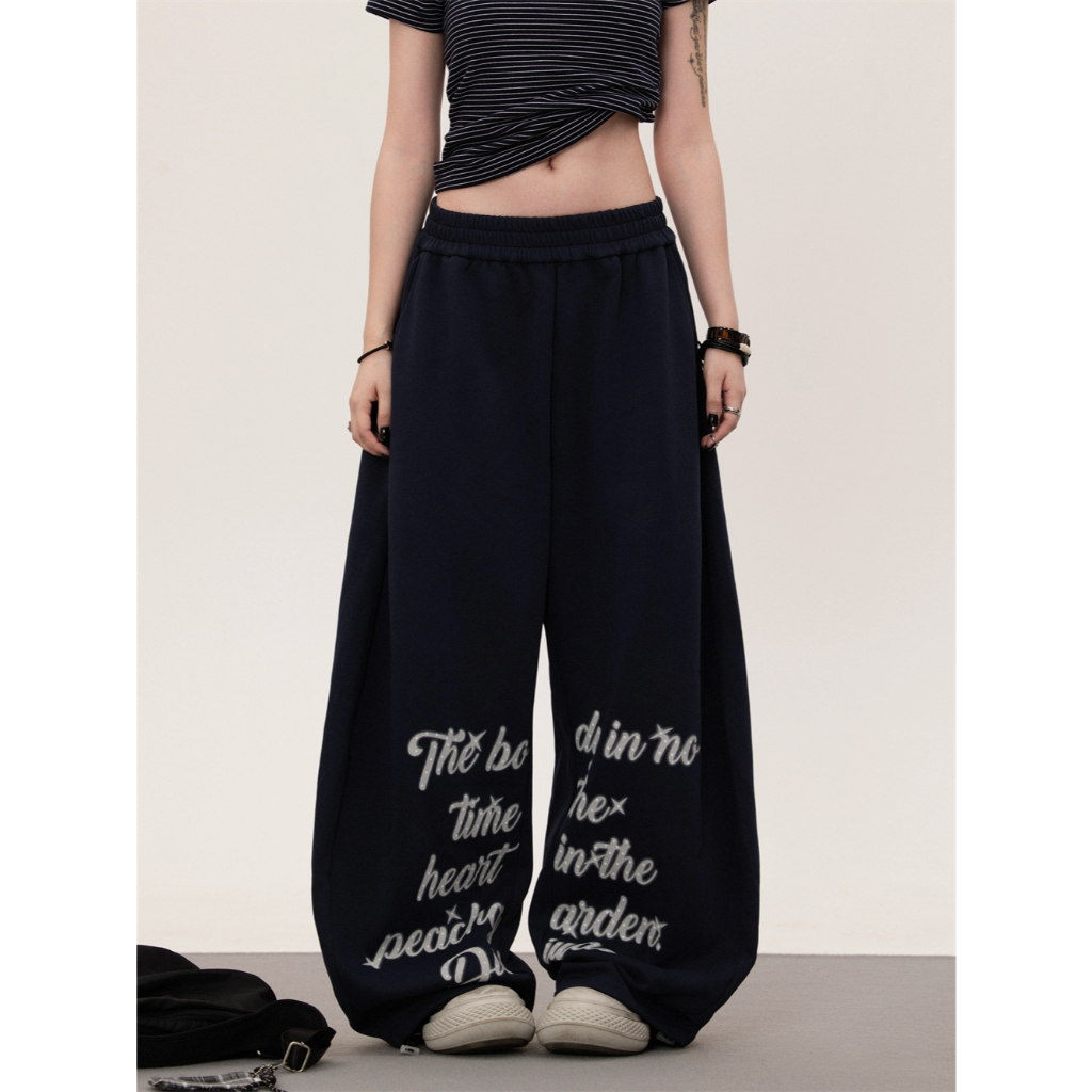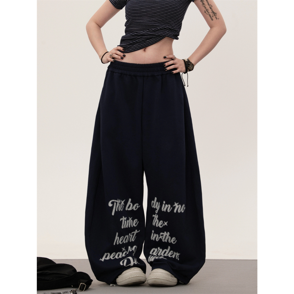 [Jazz dance letter print sports wide-leg pants]กางเกงกีฬาขากว้างพิมพ์ลายตัวอักษรสไตล์นักเต้นแจ๊สสไตล์เกาหลี