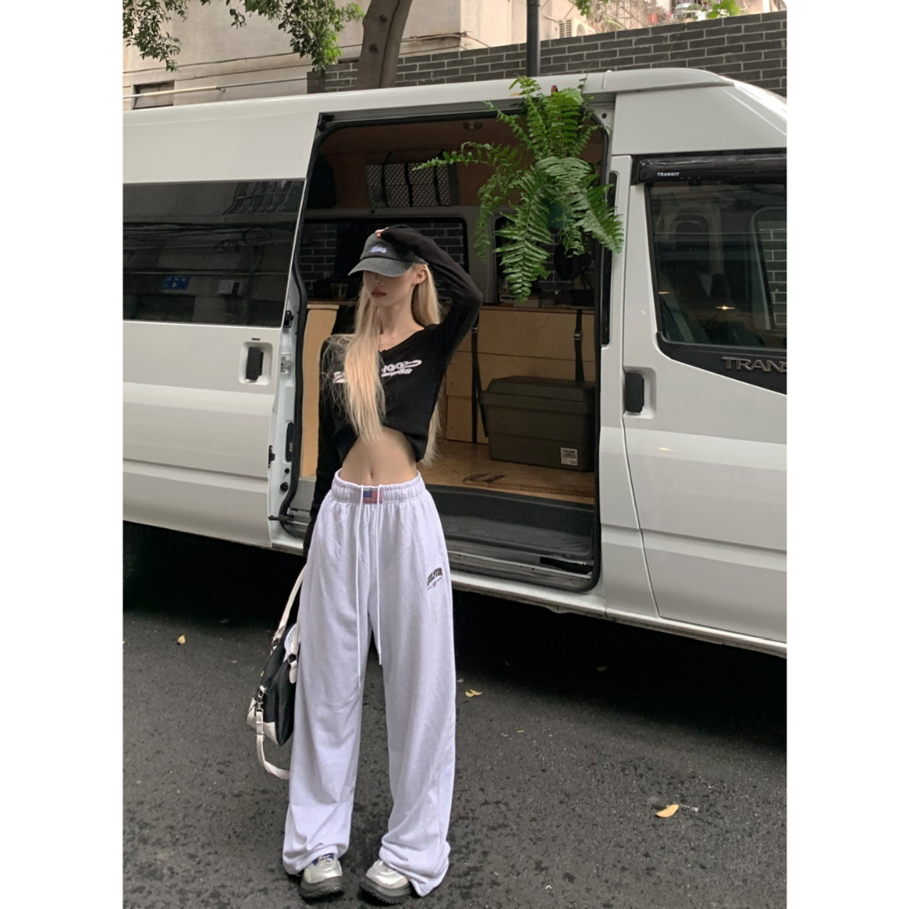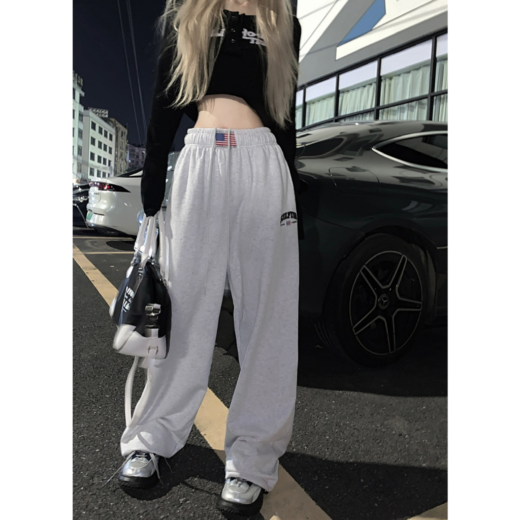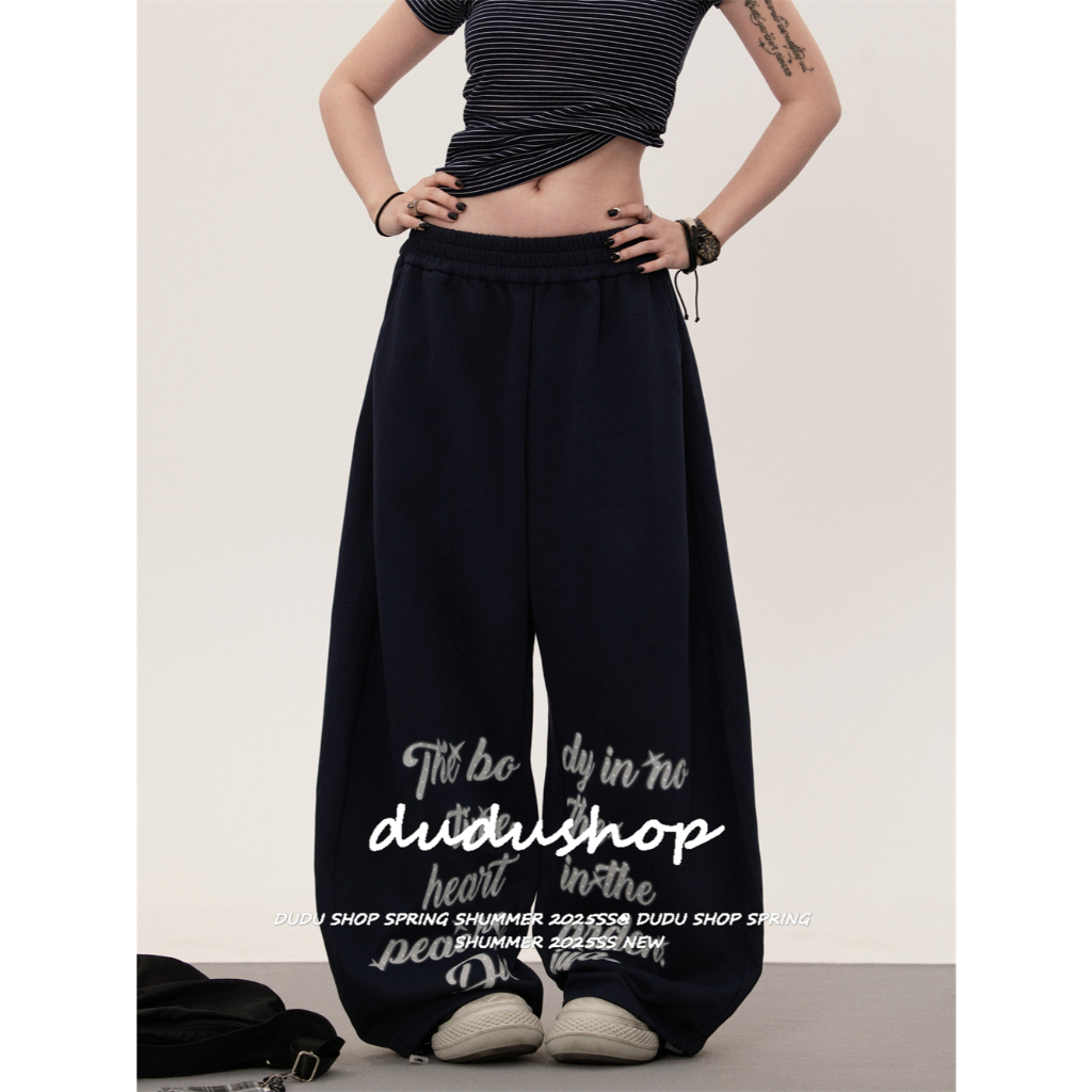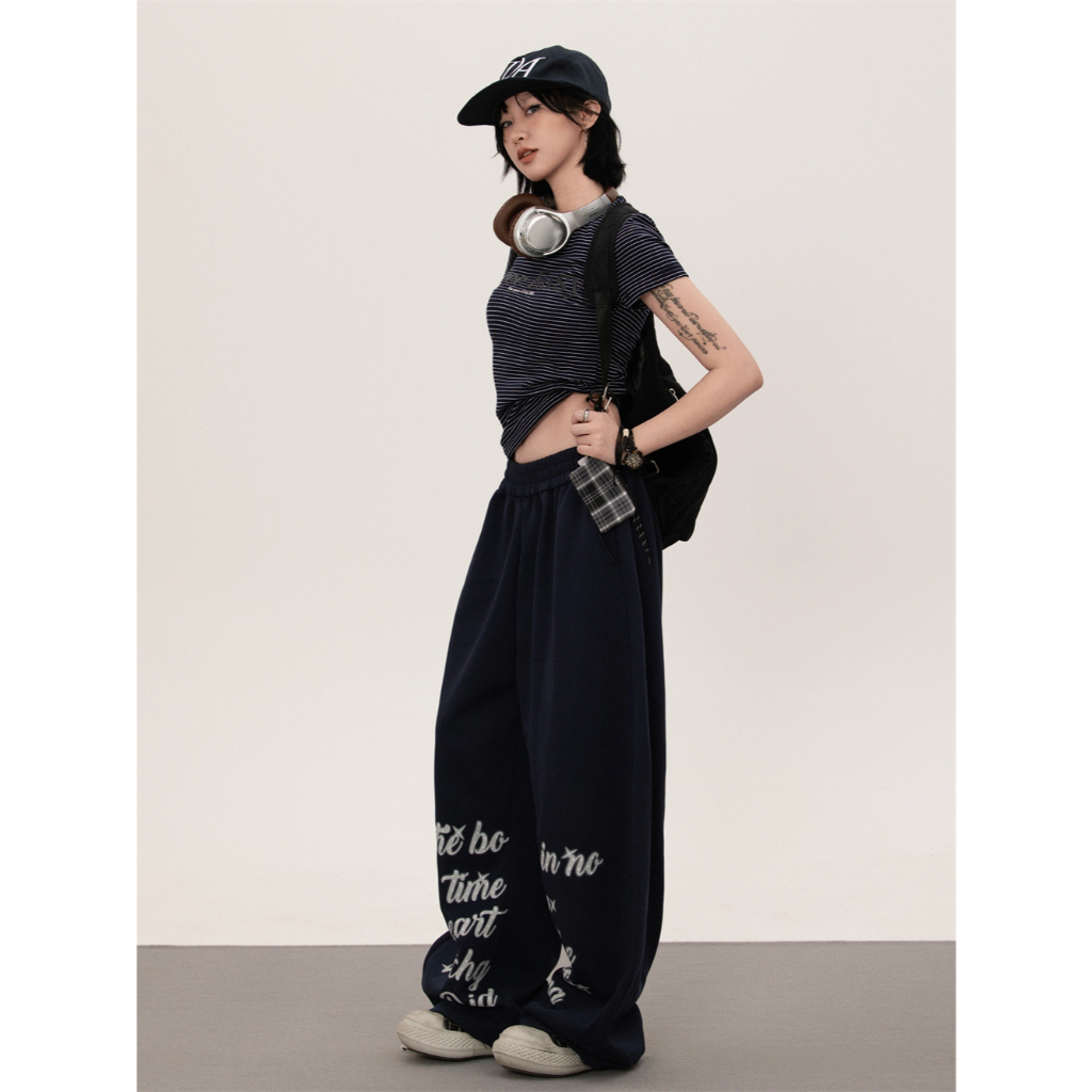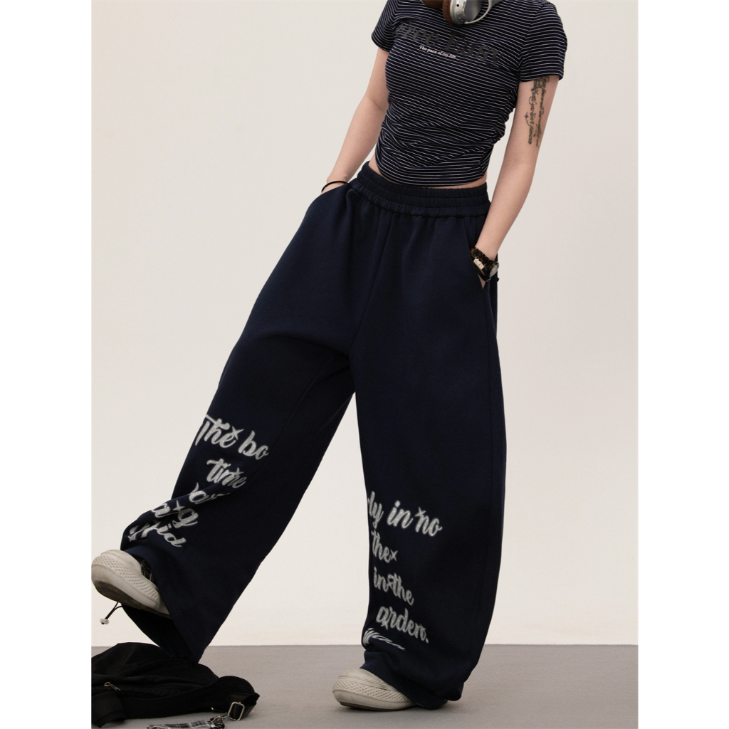 [Jazz dance letter print sports wide-leg pants]กางเกงกีฬาขากว้างพิมพ์ลายตัวอักษรสไตล์นักเต้นแจ๊สสไตล์เกาหลี