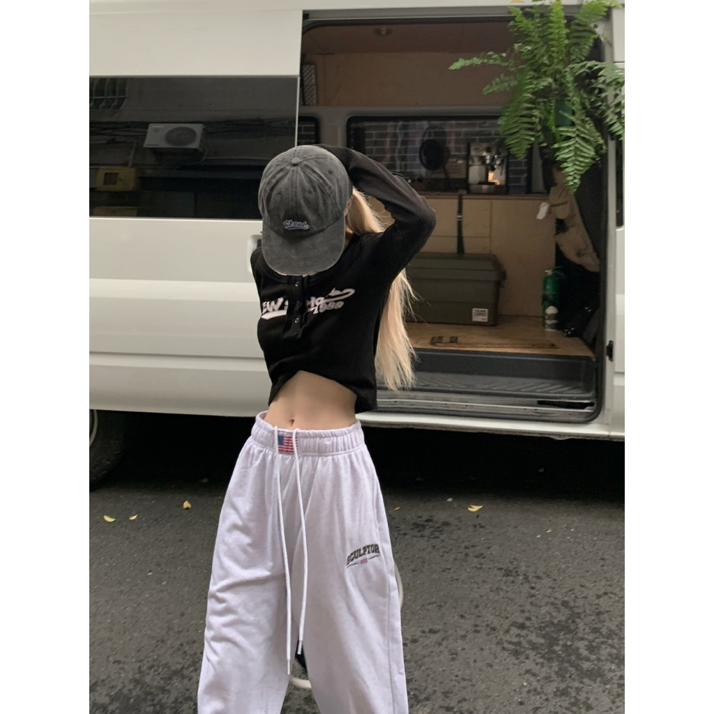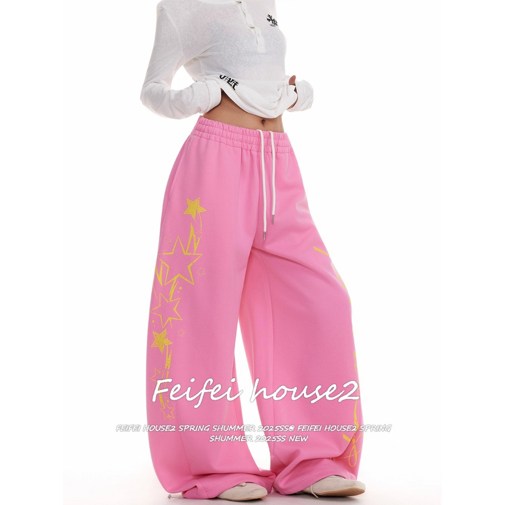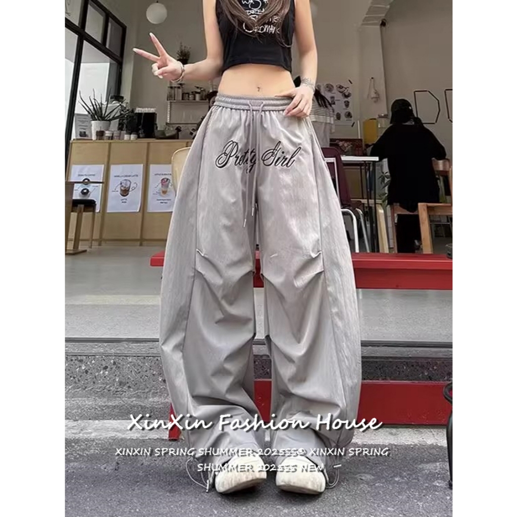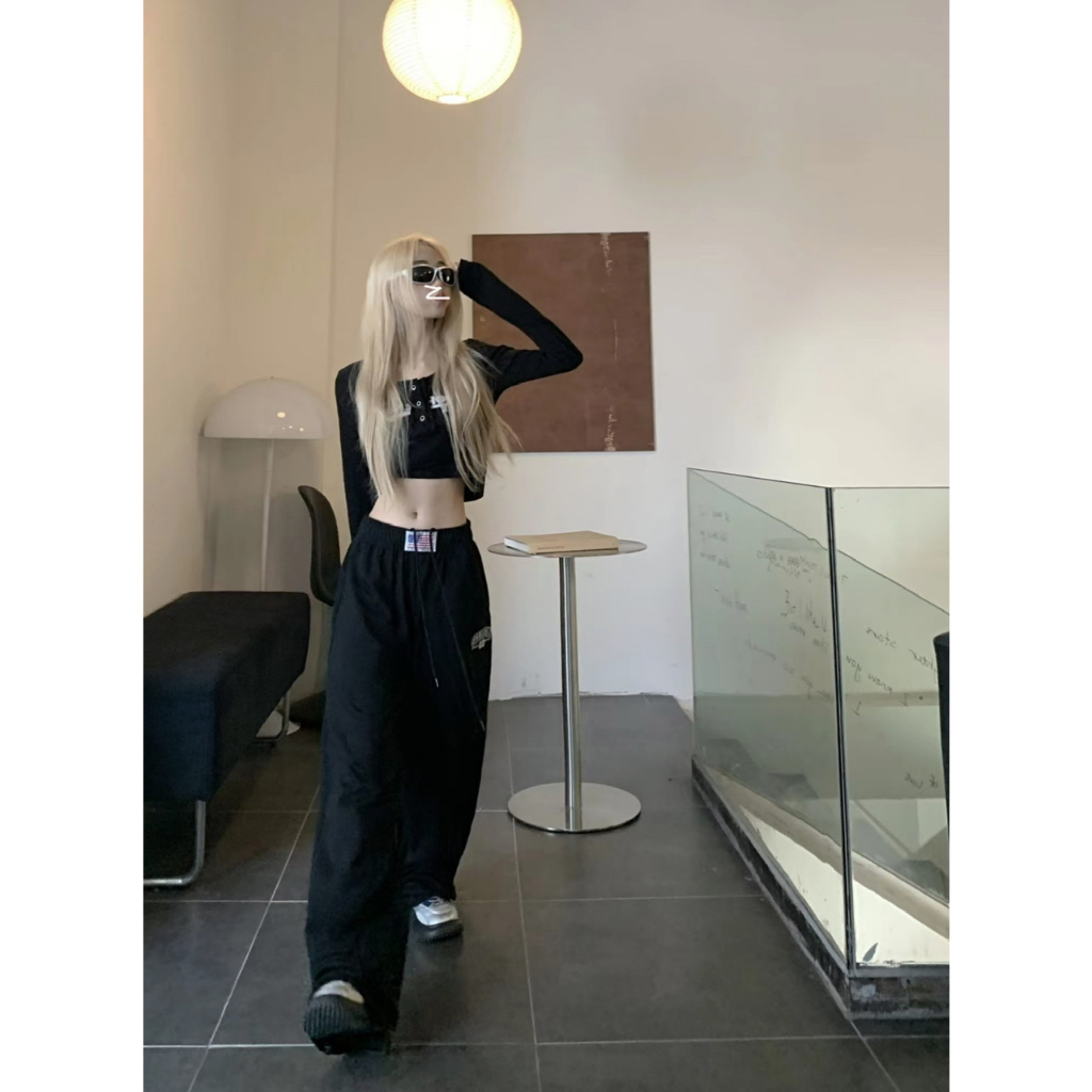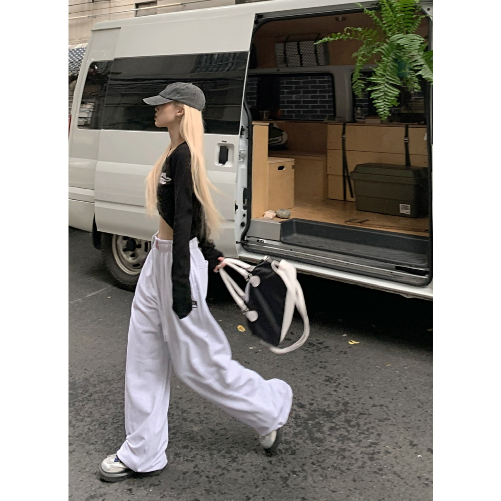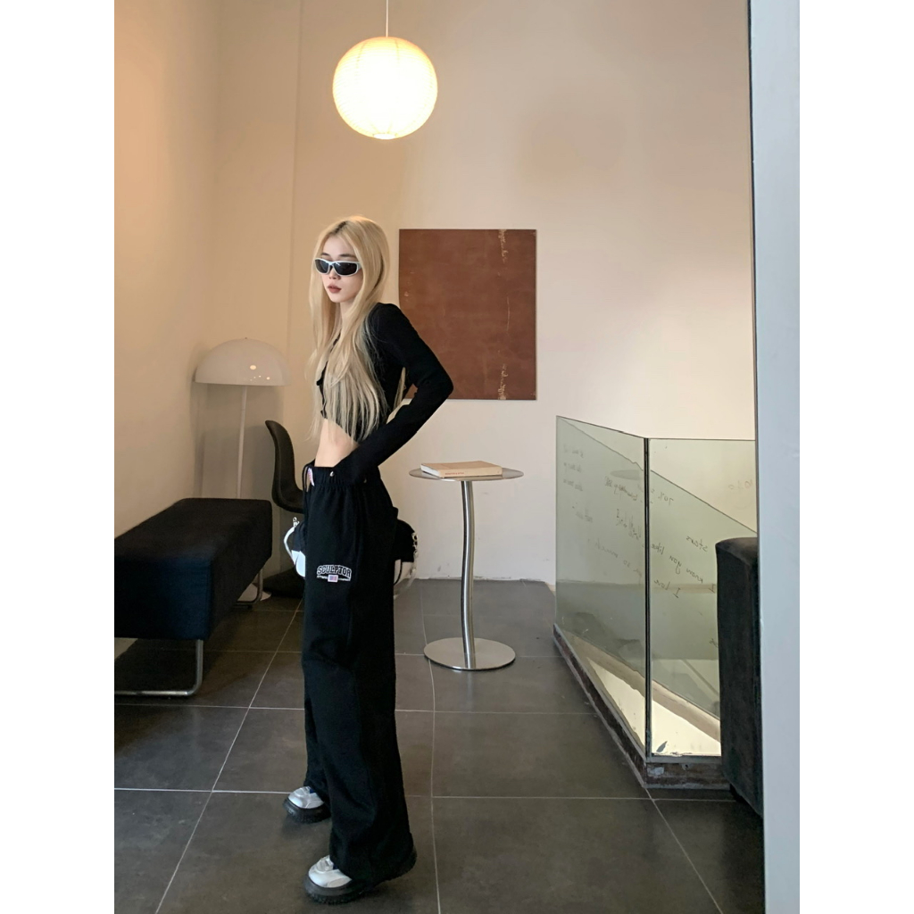 [Jazz dance letter print sports wide-leg pants]กางเกงกีฬาขากว้างพิมพ์ลายตัวอักษรสไตล์นักเต้นแจ๊สสไตล์เกาหลี