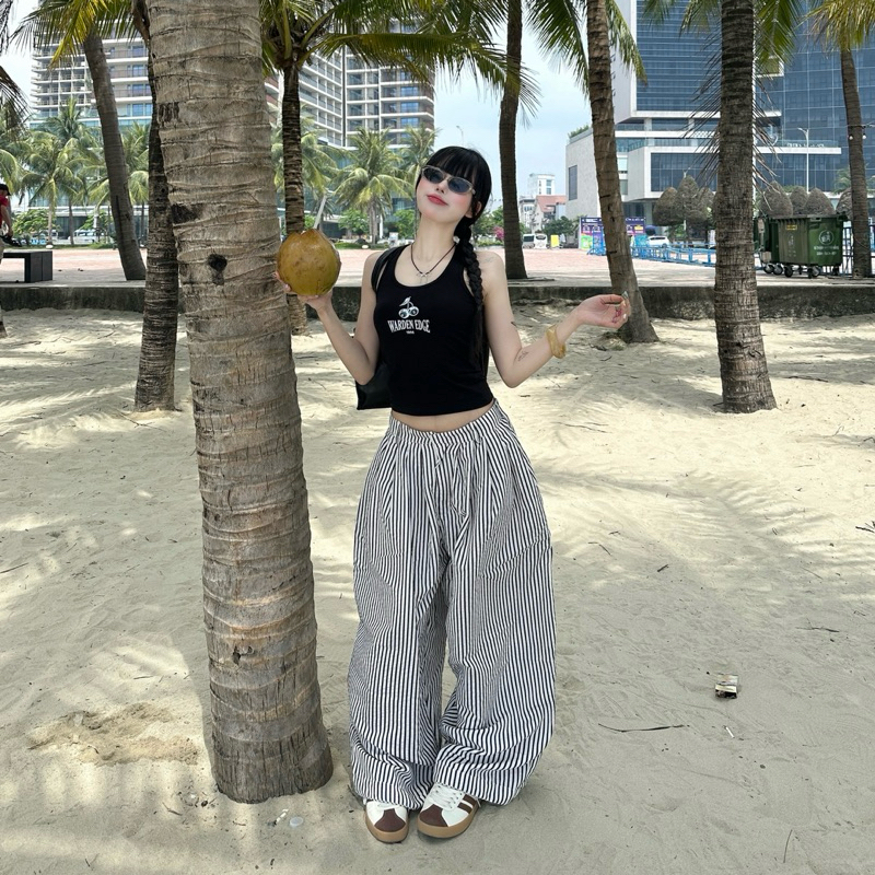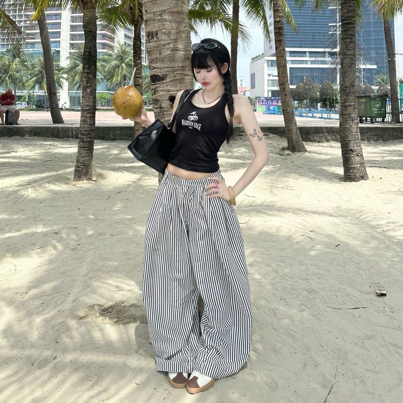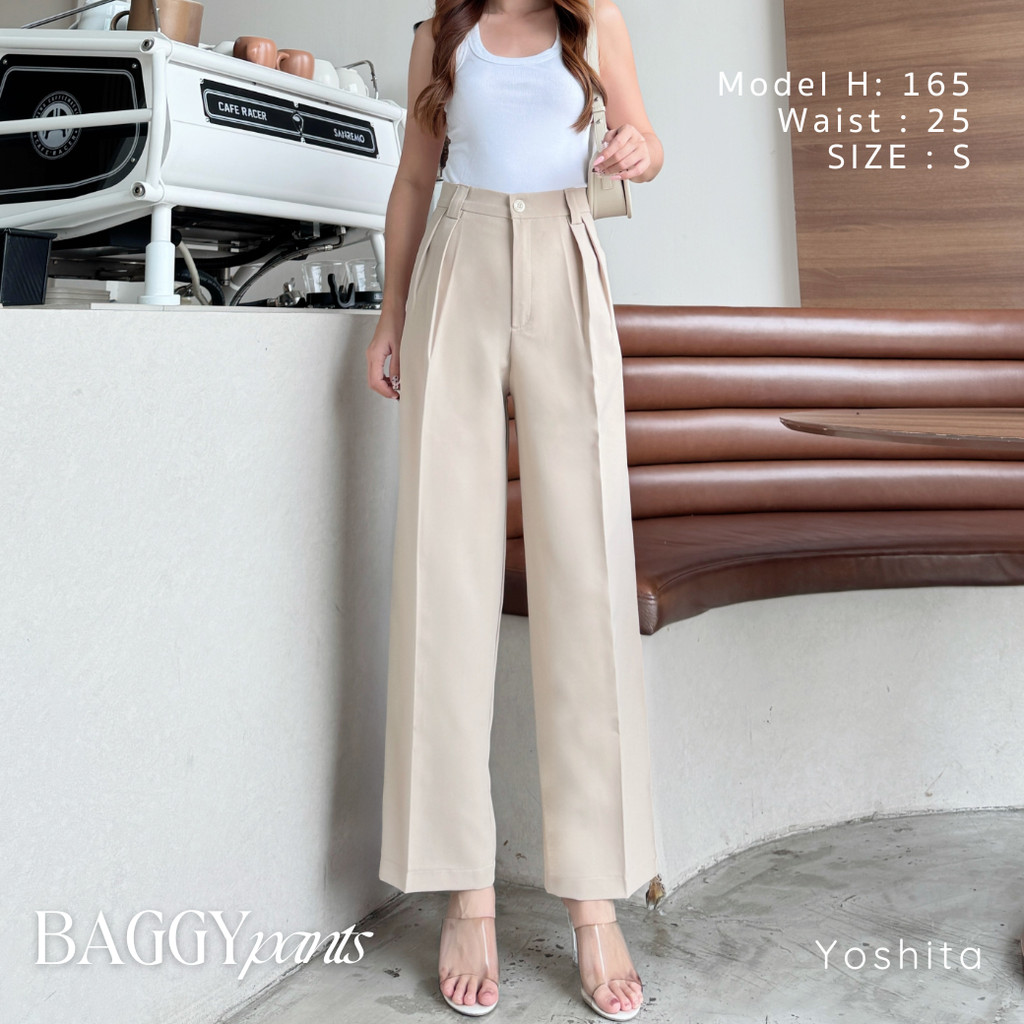[S-3XL] YOSHITA – กางเกงกระบอกใหญ่เอวสูง ผ้าทิ้งตัว รุ่น BAGGY PANTS
